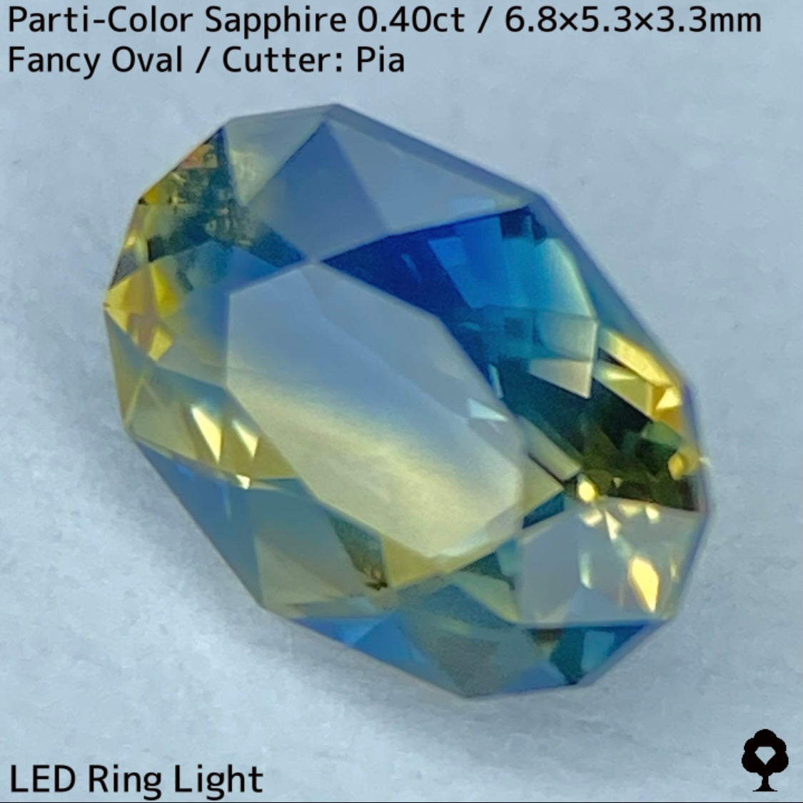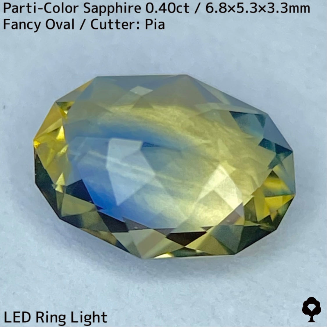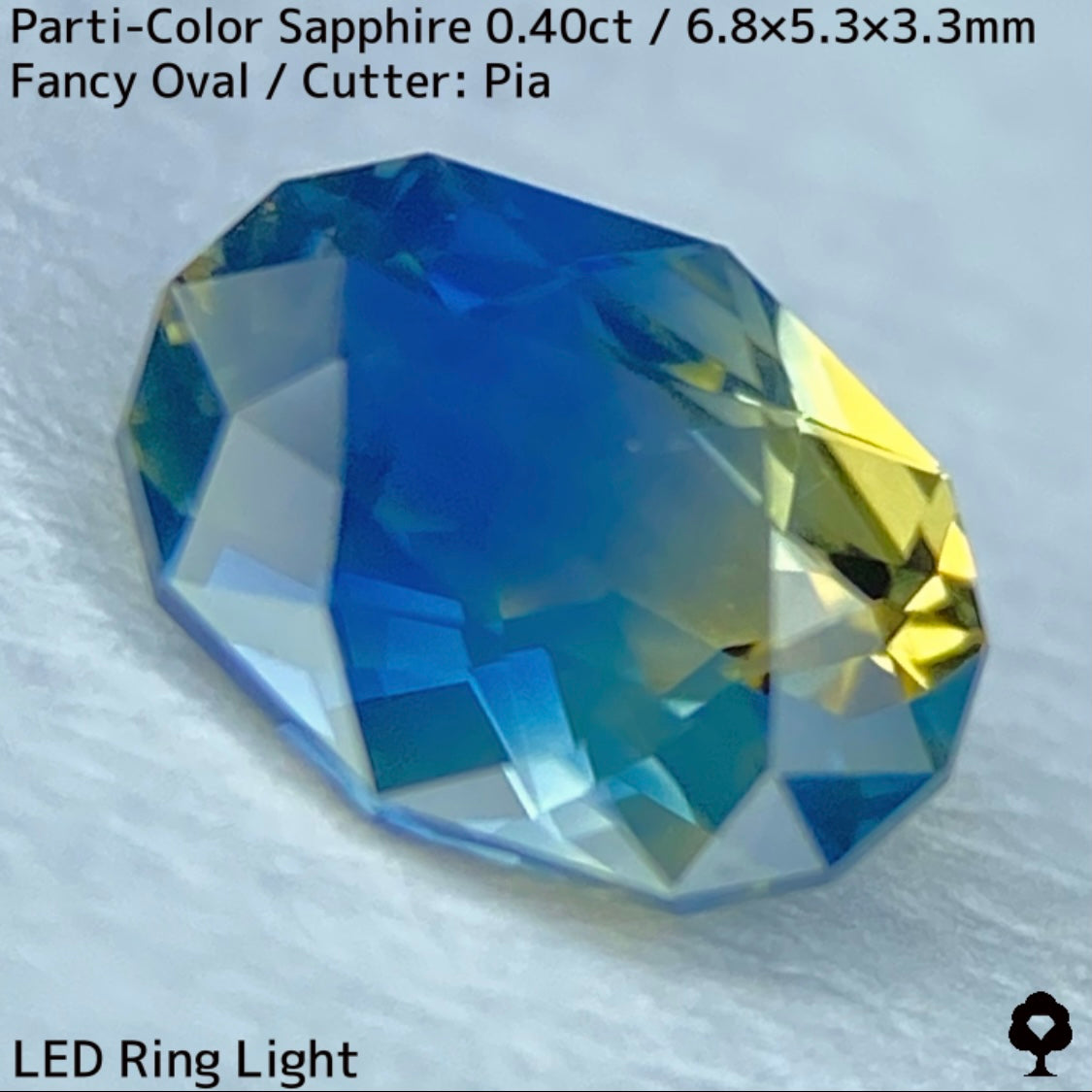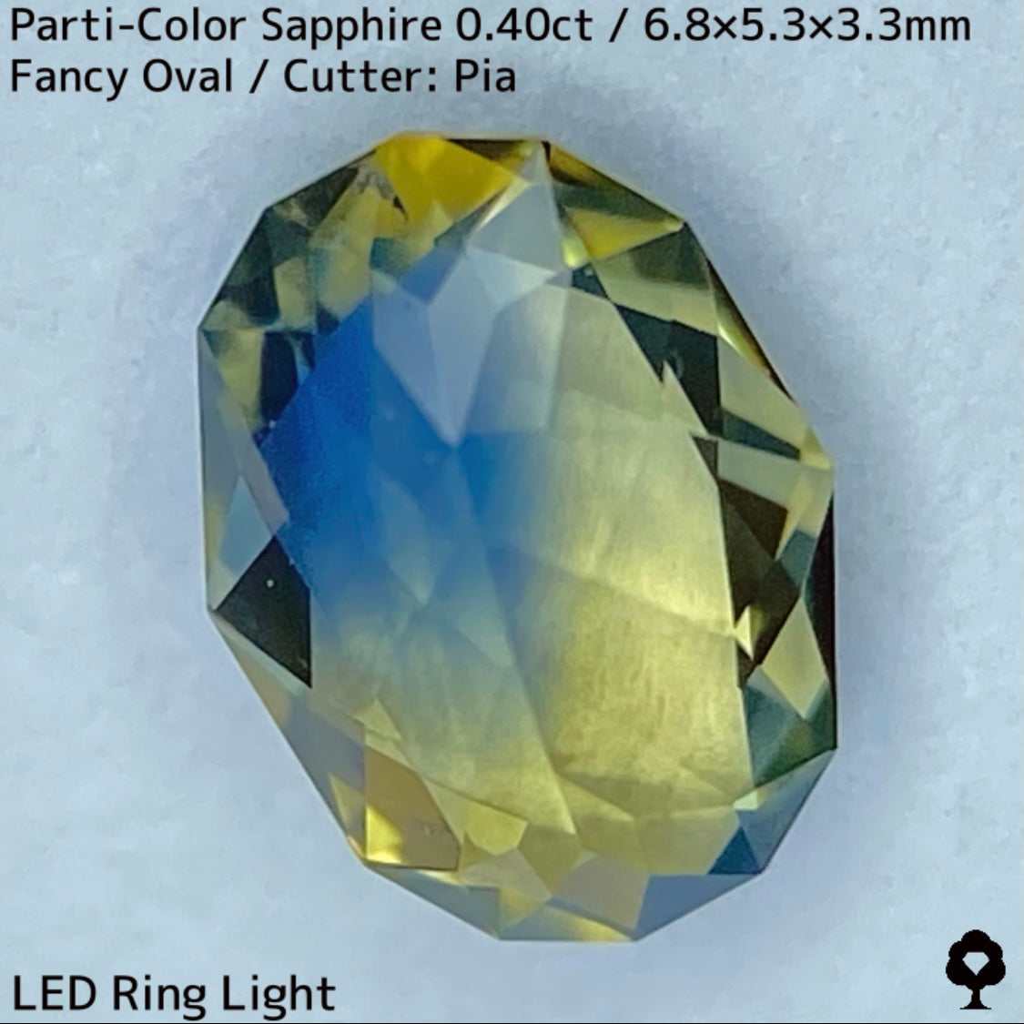 カンチャナブリー産パーティカラーサファイア0.40ct★鮮やかなイエローにシルキーブルーの色だまり