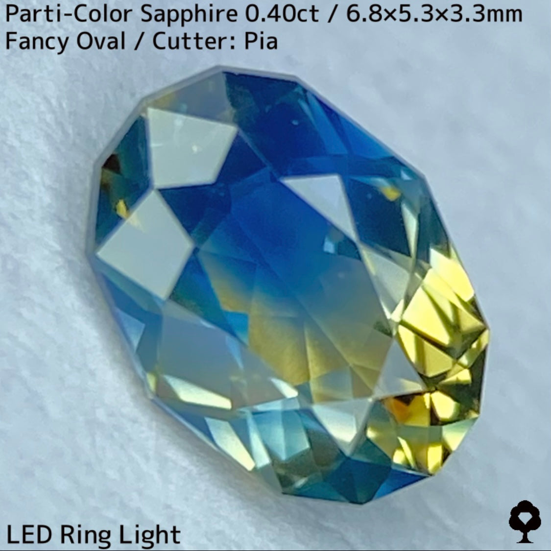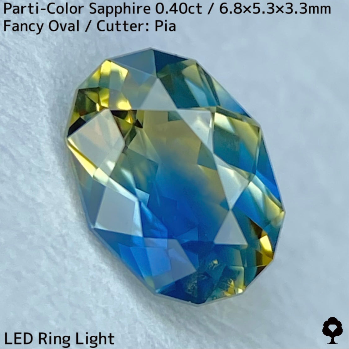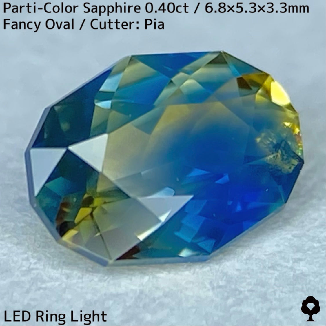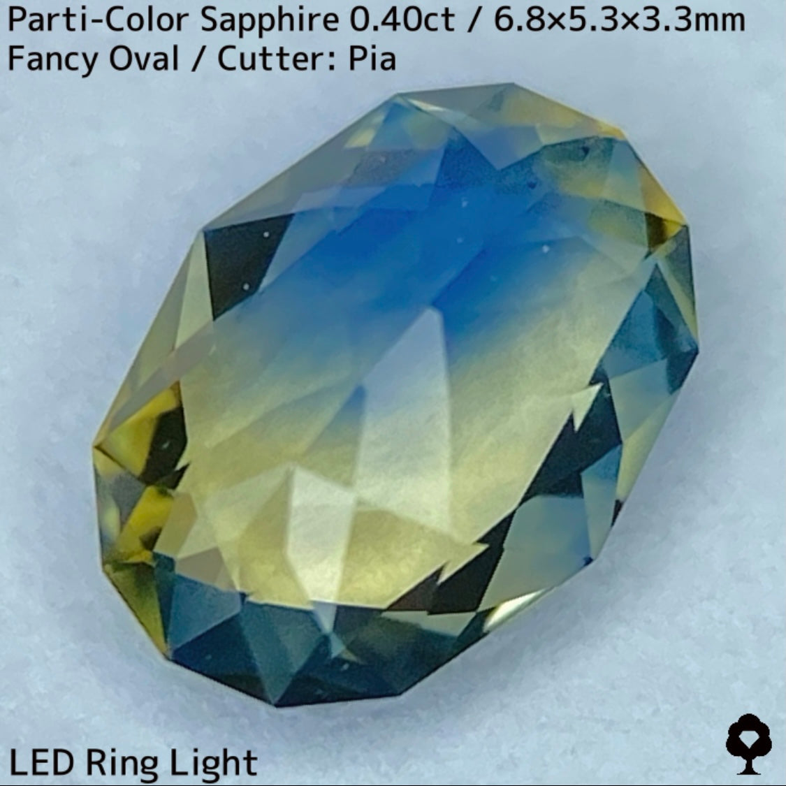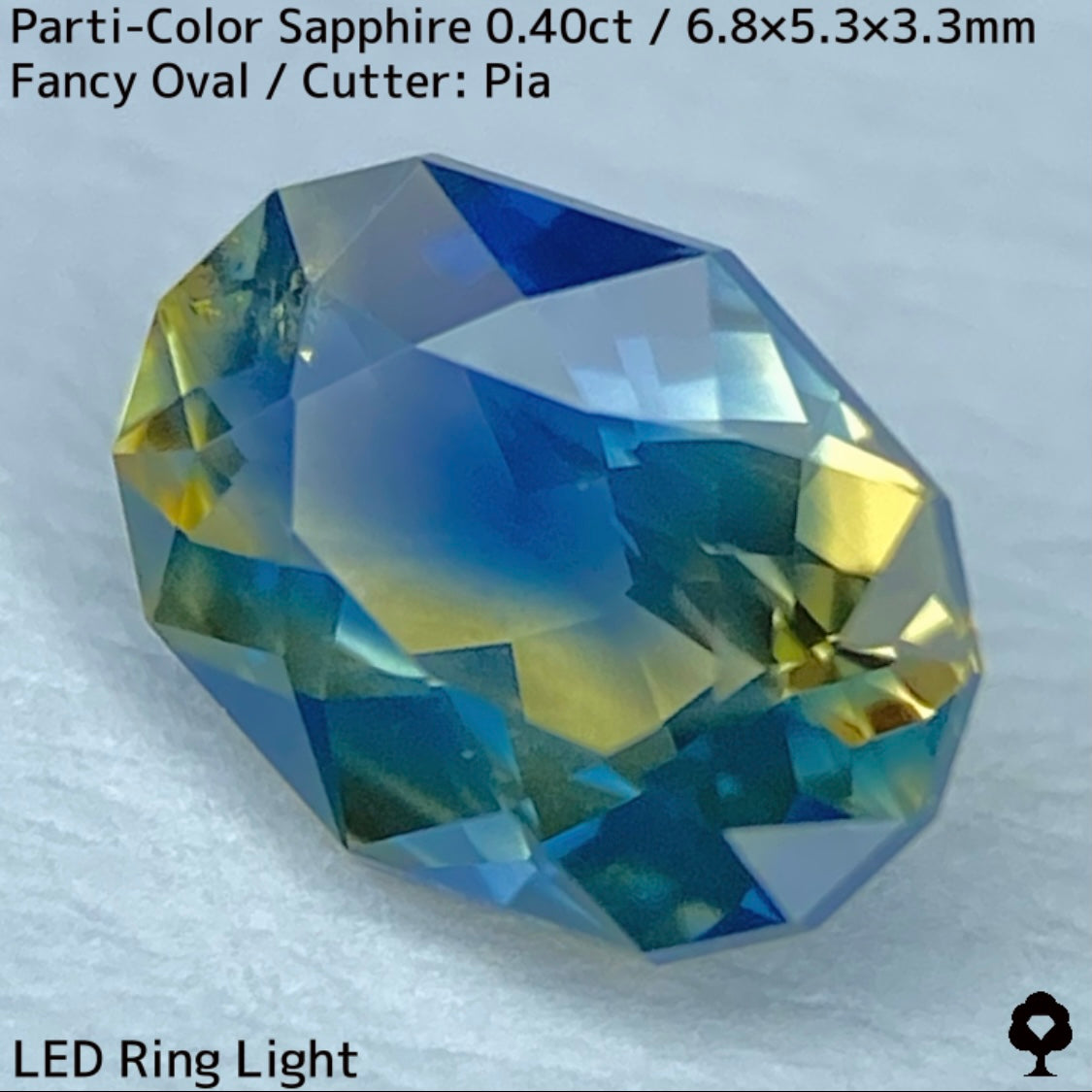 カンチャナブリー産パーティカラーサファイア0.40ct★鮮やかなイエローにシルキーブルーの色だまり