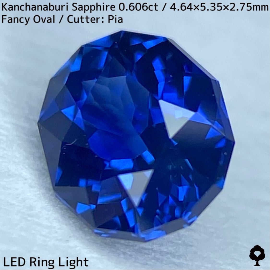 内包物の無い美しい結晶で、輪郭を縁取ったファンシーオーバルに仕上げられ鮮やかなブルーの煌めきが止まりません。