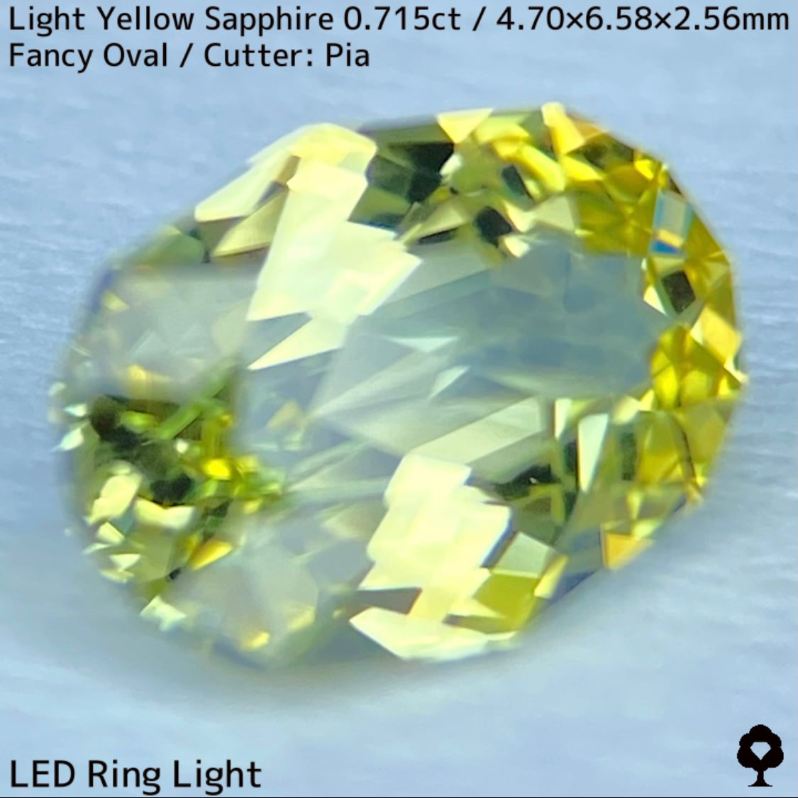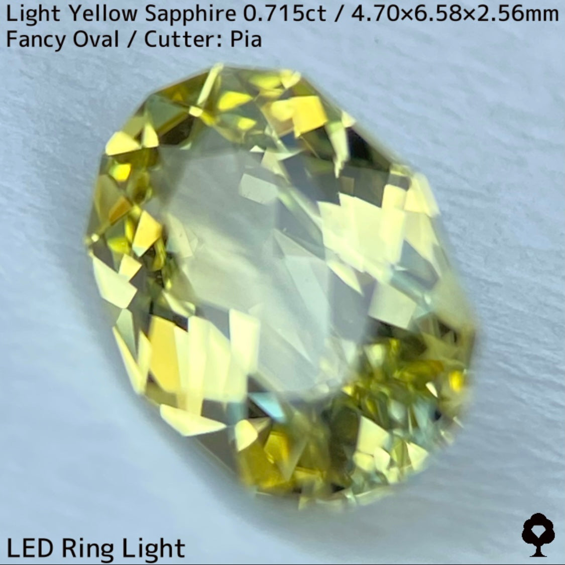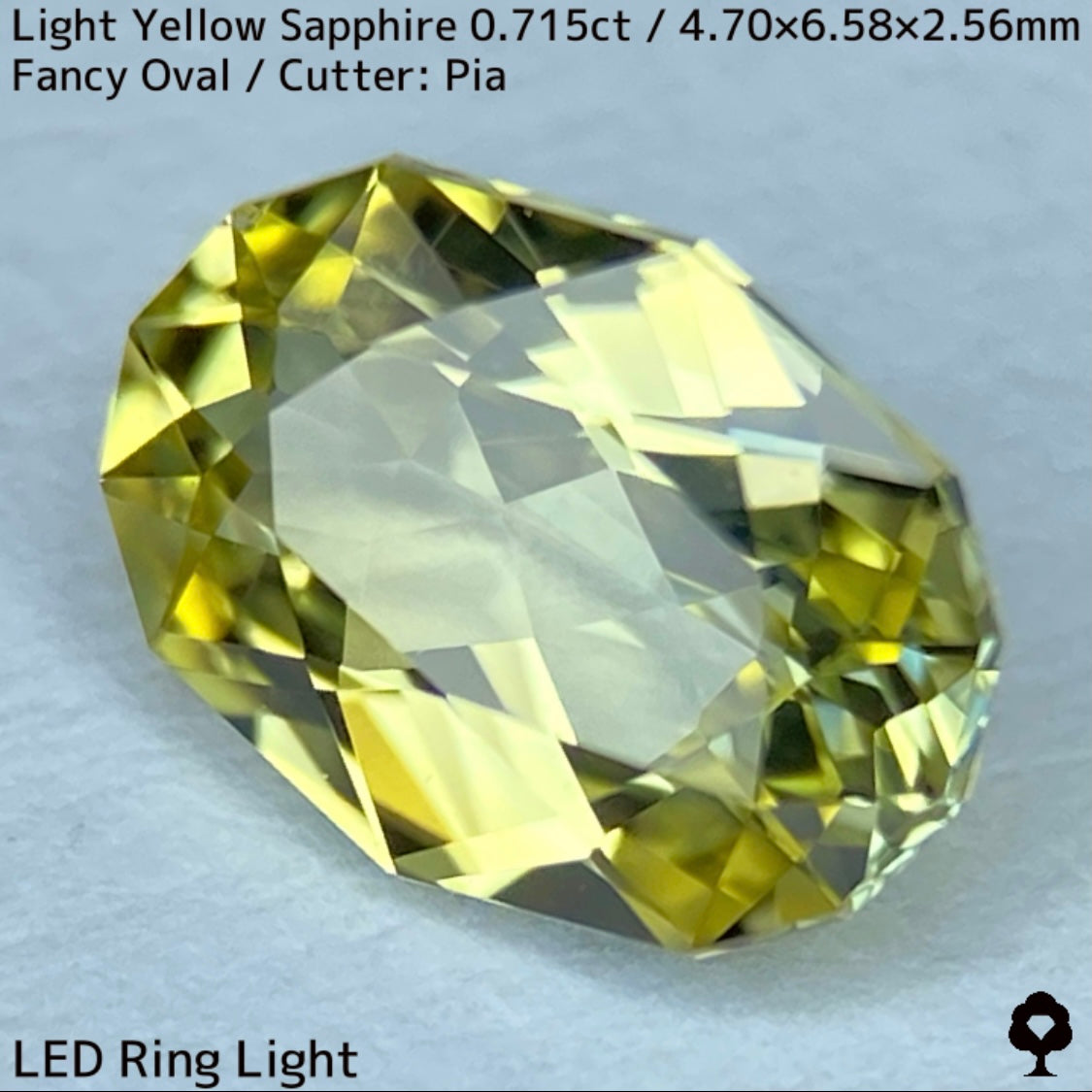 明るく爽やかなイエローにうっすらとブルーの色だまりがあることによって、ほんのりグリーンがかったレモンイエローが美しいサファイアです。