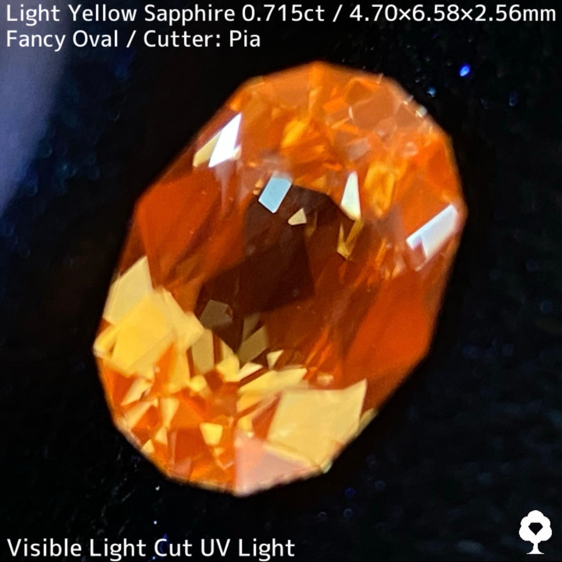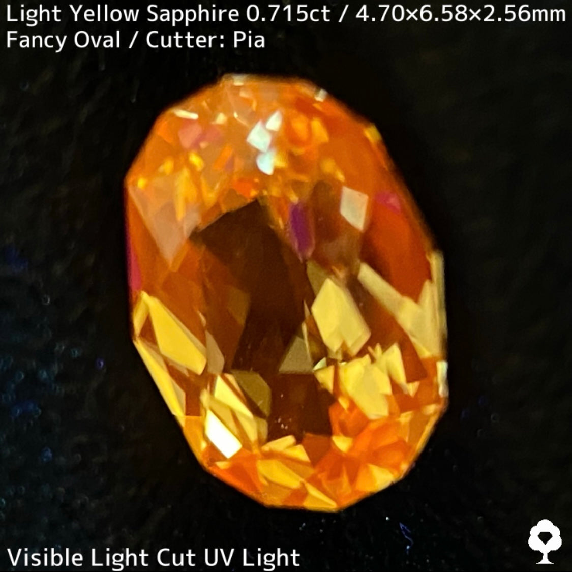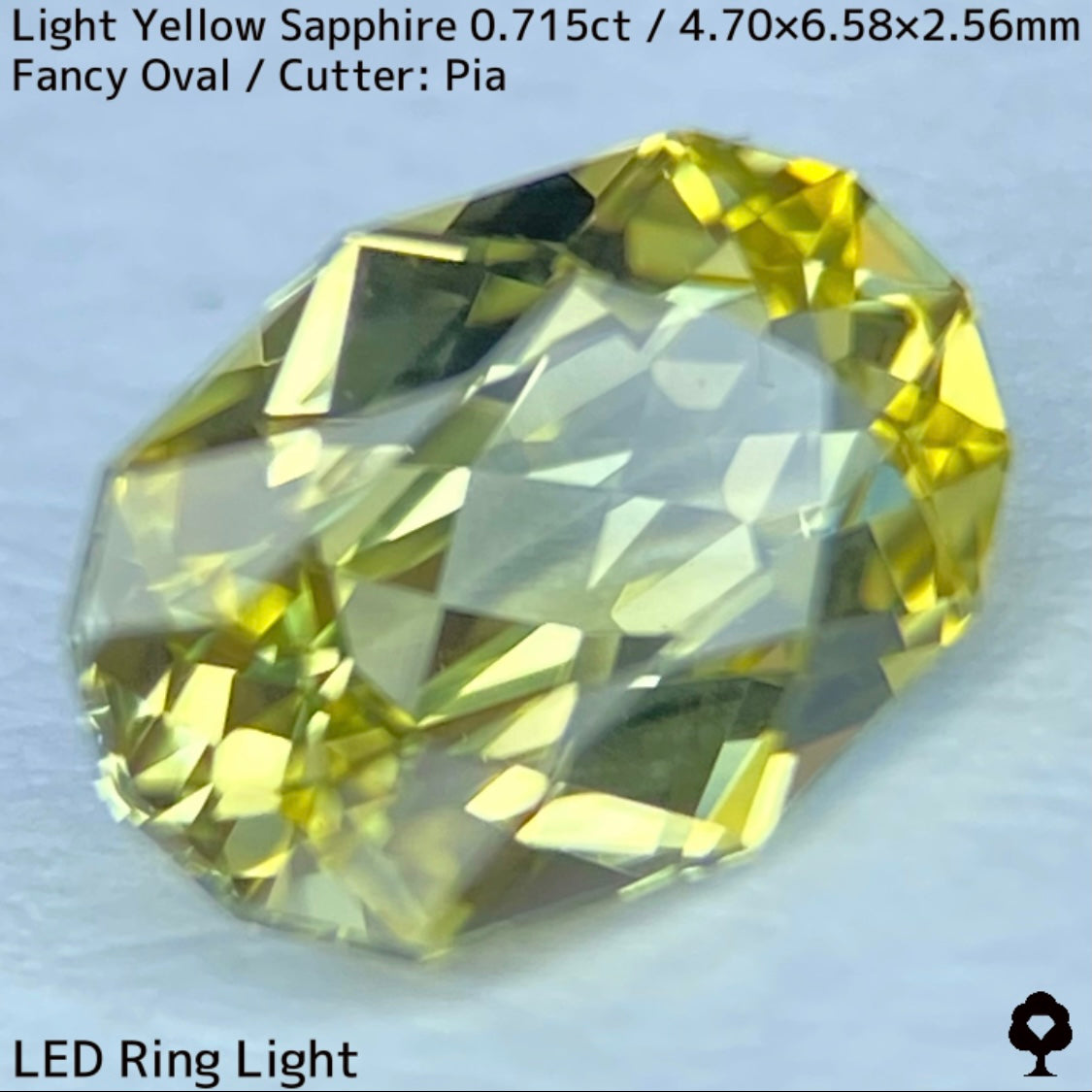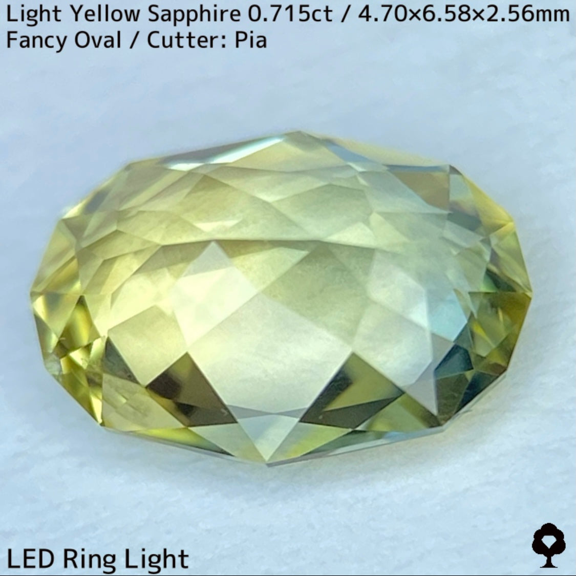 明るく爽やかなイエローにうっすらとブルーの色だまりがあることによって、ほんのりグリーンがかったレモンイエローが美しいサファイアです。