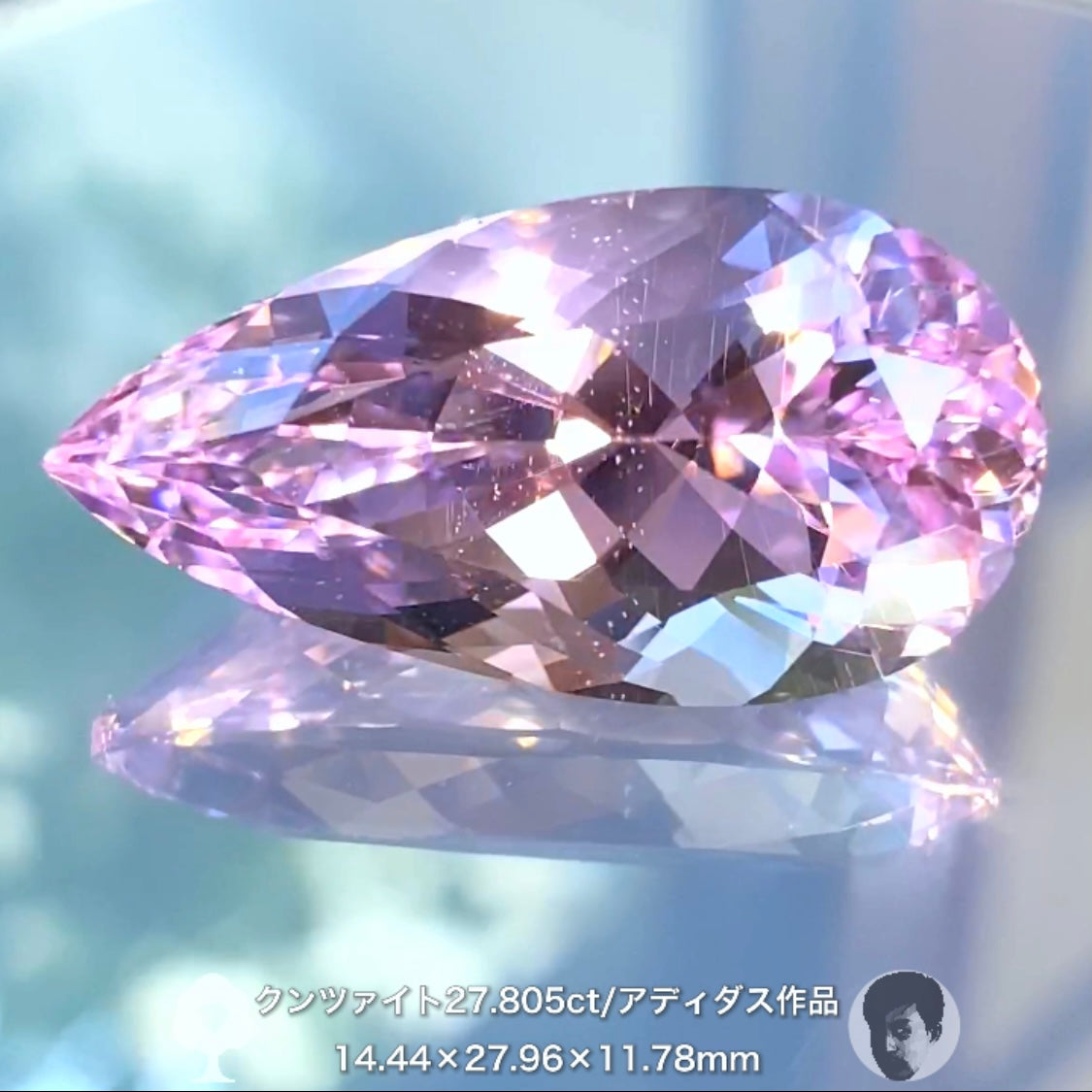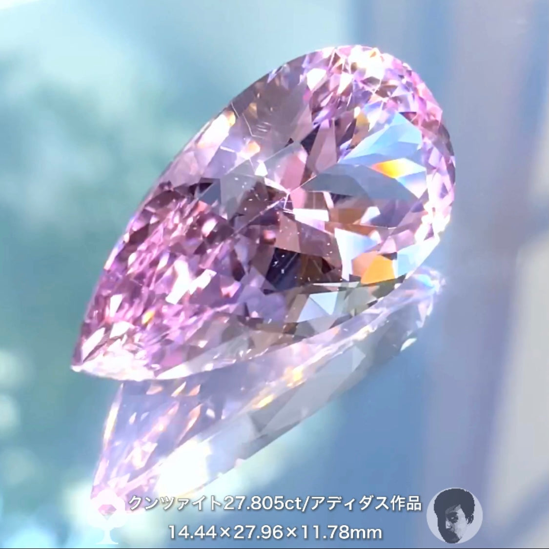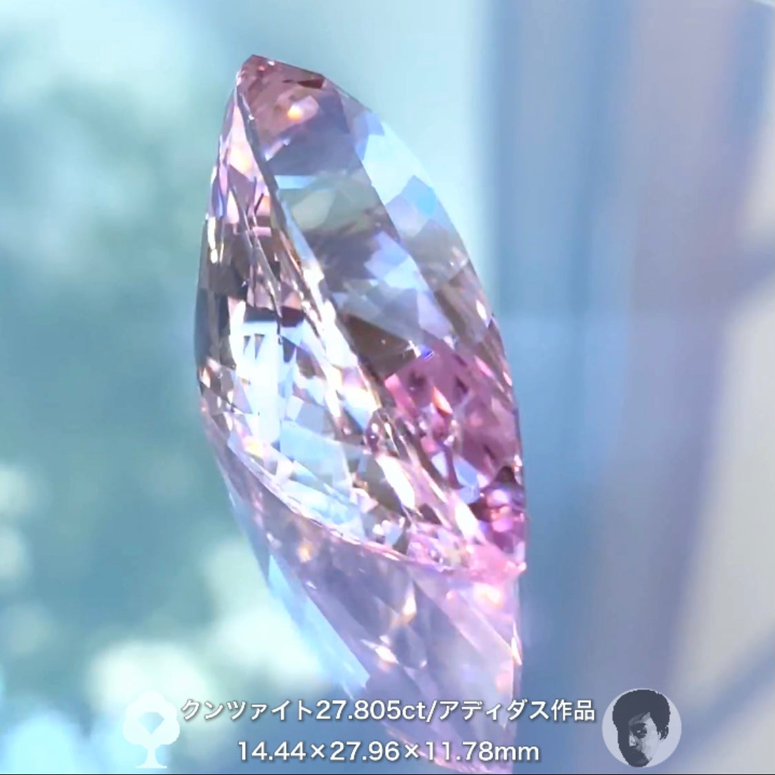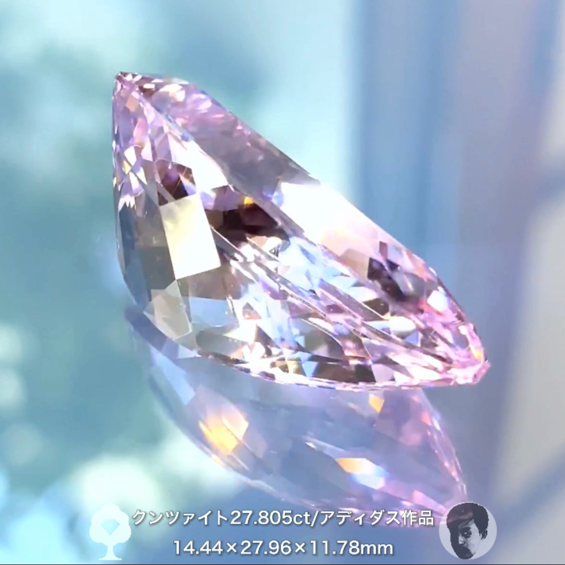こちらは大粒!27.805ctのクンツァイトで、名匠”アディダス”の作品です。