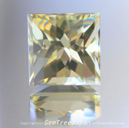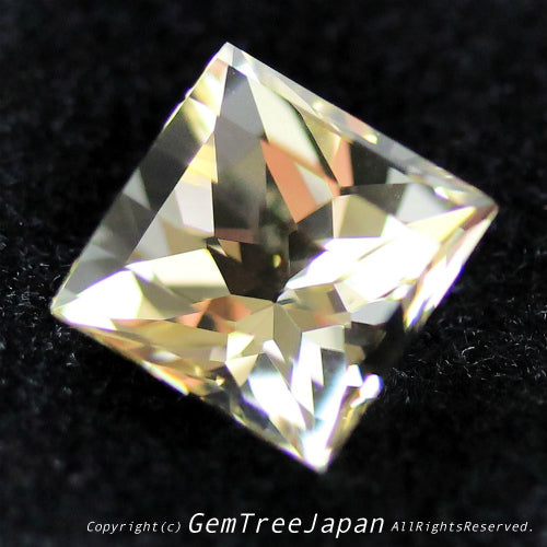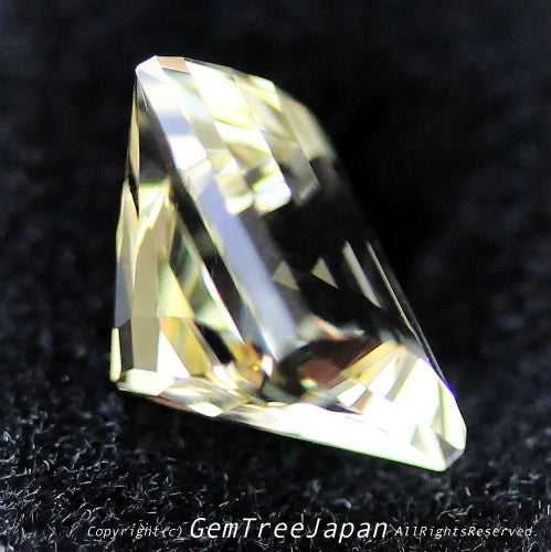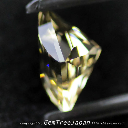 ラブラドライトの美しく透明度の高い淡黄色が、この作品の面白さを引き立てています。こちらはあえて縦にステップが並ぶような角度で見ていただくと、独特のカットによる煌めきをより楽しめるかと思われます。