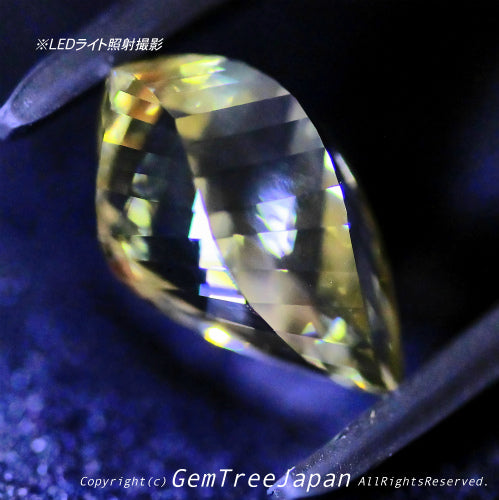 シャキッとクリアなシャンパンゴールドの美色とテリ。カットの繊細さによるものか、ファイアのような煌めきも見える、クォリティの高い石質です。