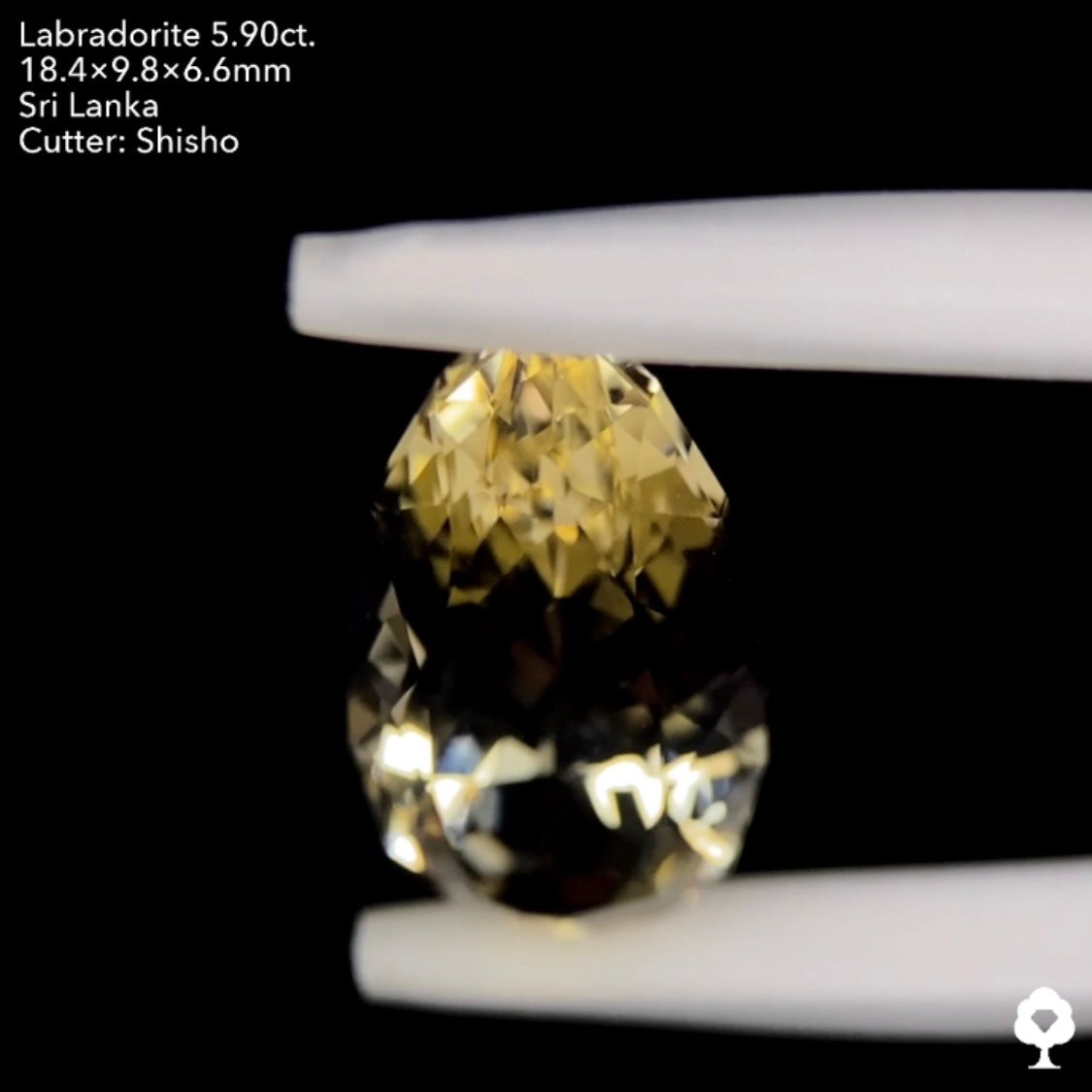 【SOLD OUT】圧倒的な存在感と細やかな煌めきを放つロングファンシーペアシェイプ★ラブラドライト5.90ct. 師匠作品★お問合せ特別価格★