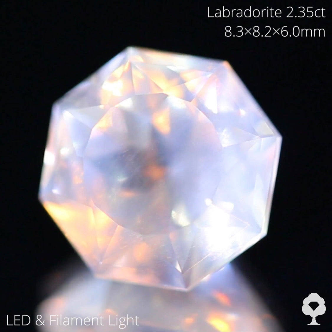 ゴールデンラブラドライト特有のふわっとした印象の内包物は、ルース全体に均一に広がり、まるで朧月のような絶妙な美を楽しめます。