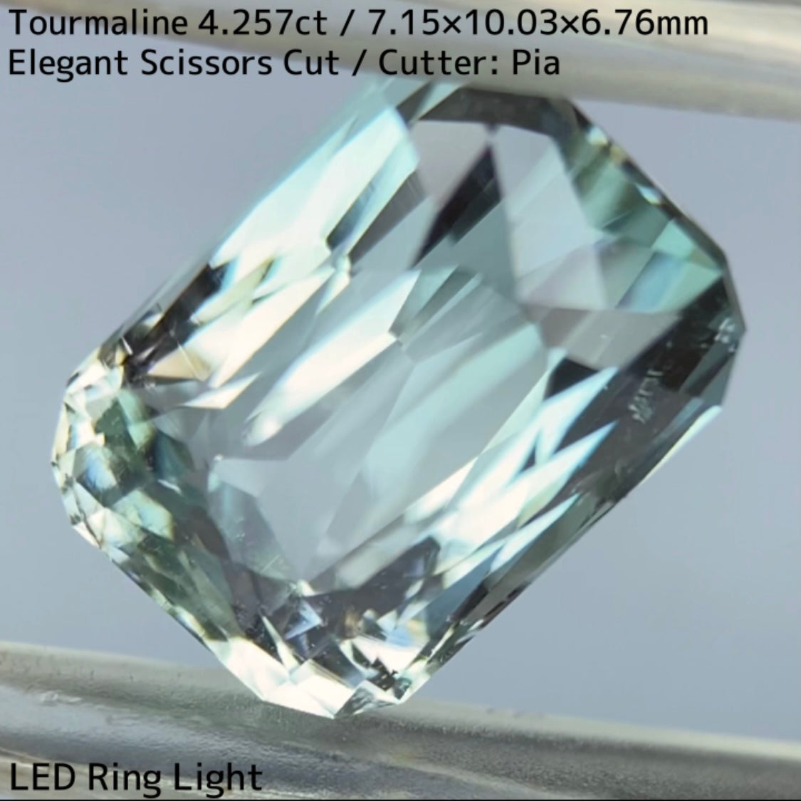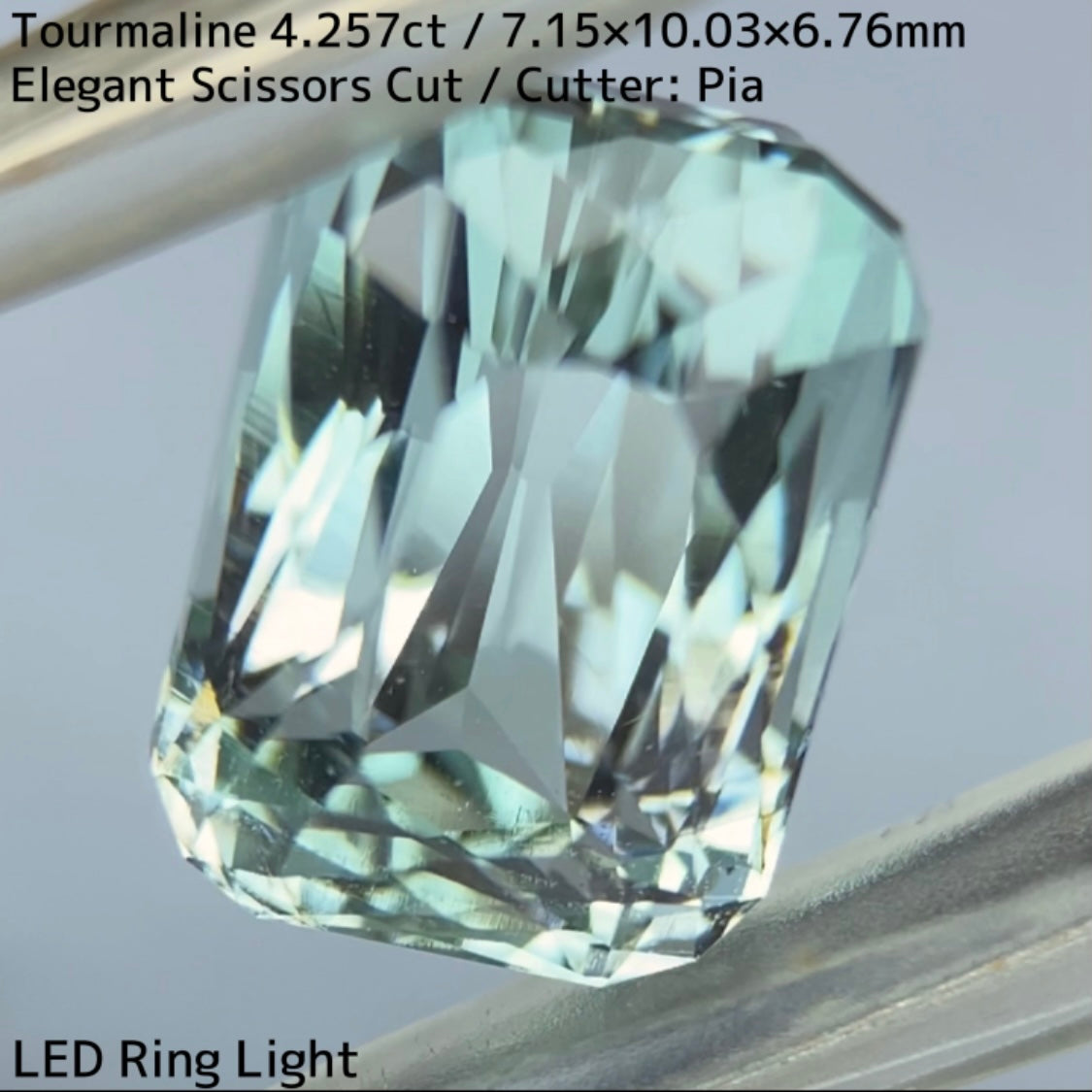 ライトミントからカラーレスへのグラデーションが美しく価値あるシザースオクタゴン★トルマリン4.257ct