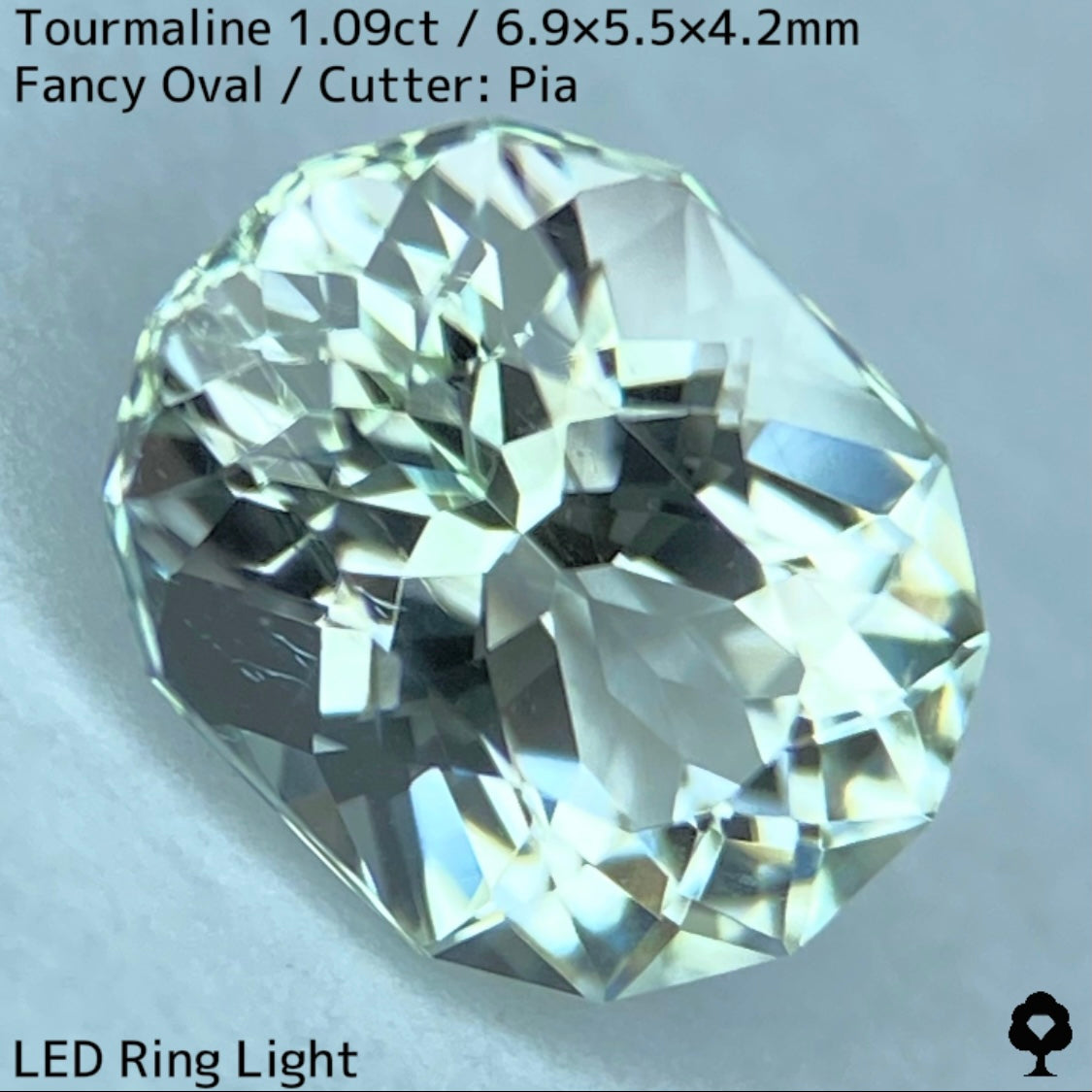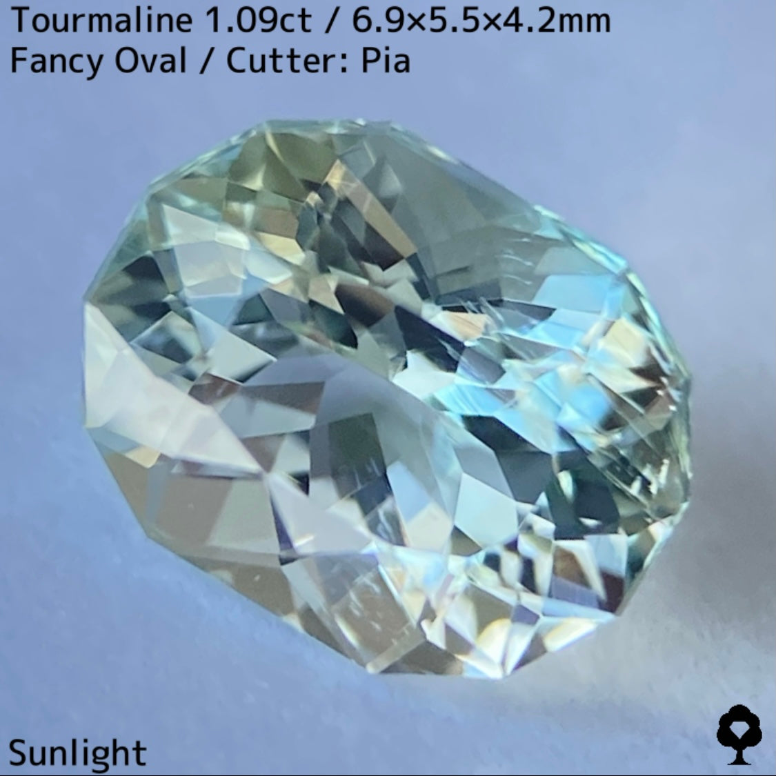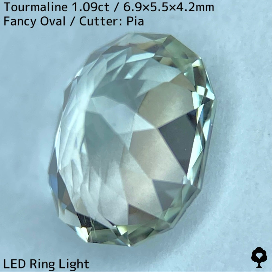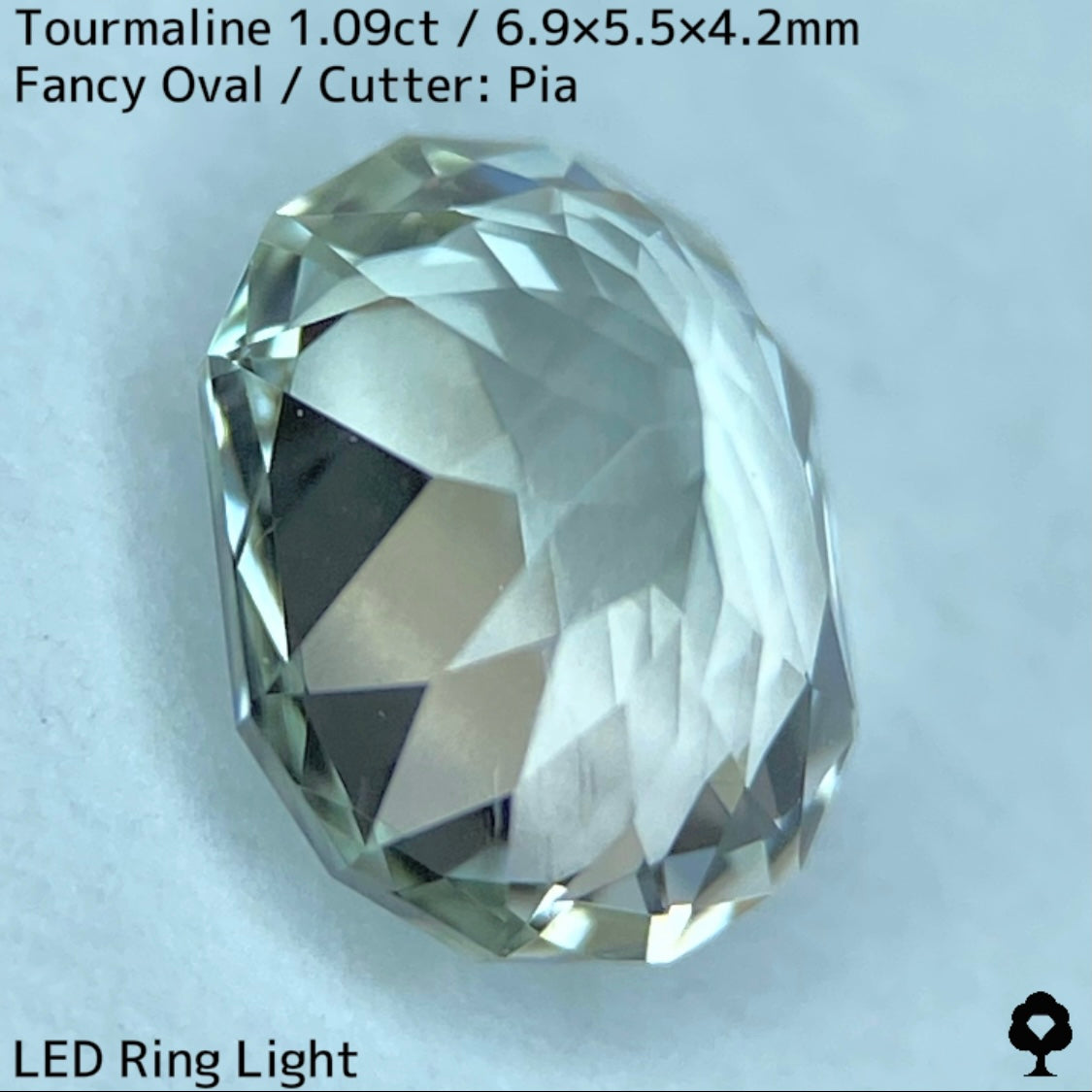 カラーレスのトルマリンはアクロアイトと呼びトルマリンの中でも価値の高いもので、ニュアンスグリーンとカラーレスの融合はライトカラー好きにとってたまらないですし、なかなかの希少さです。