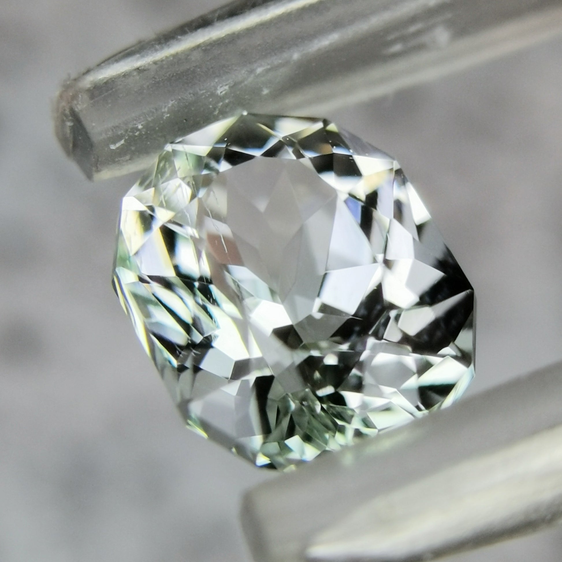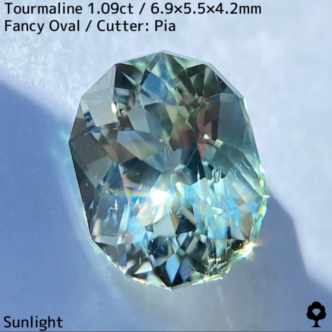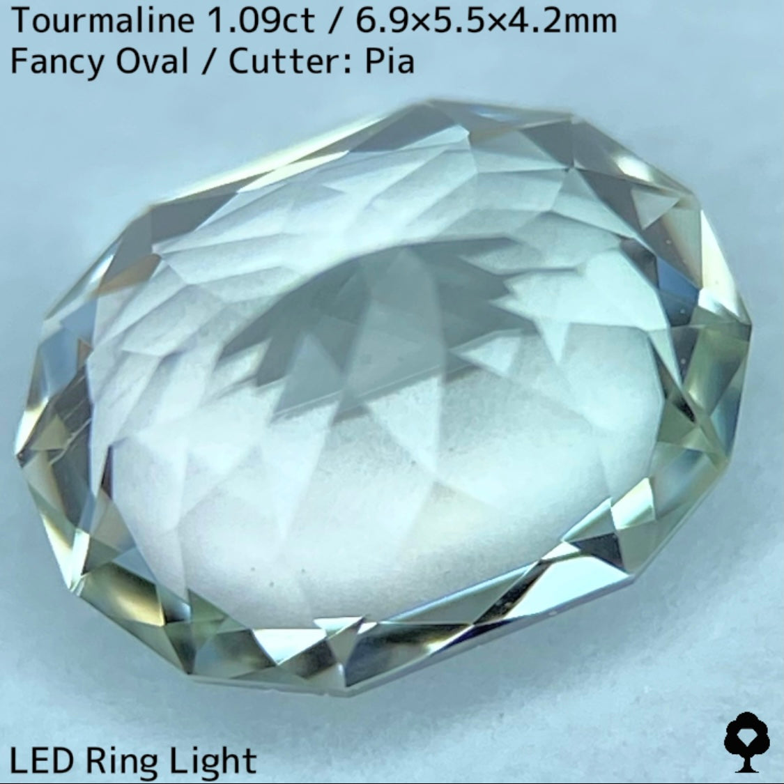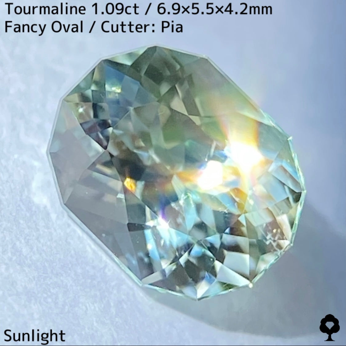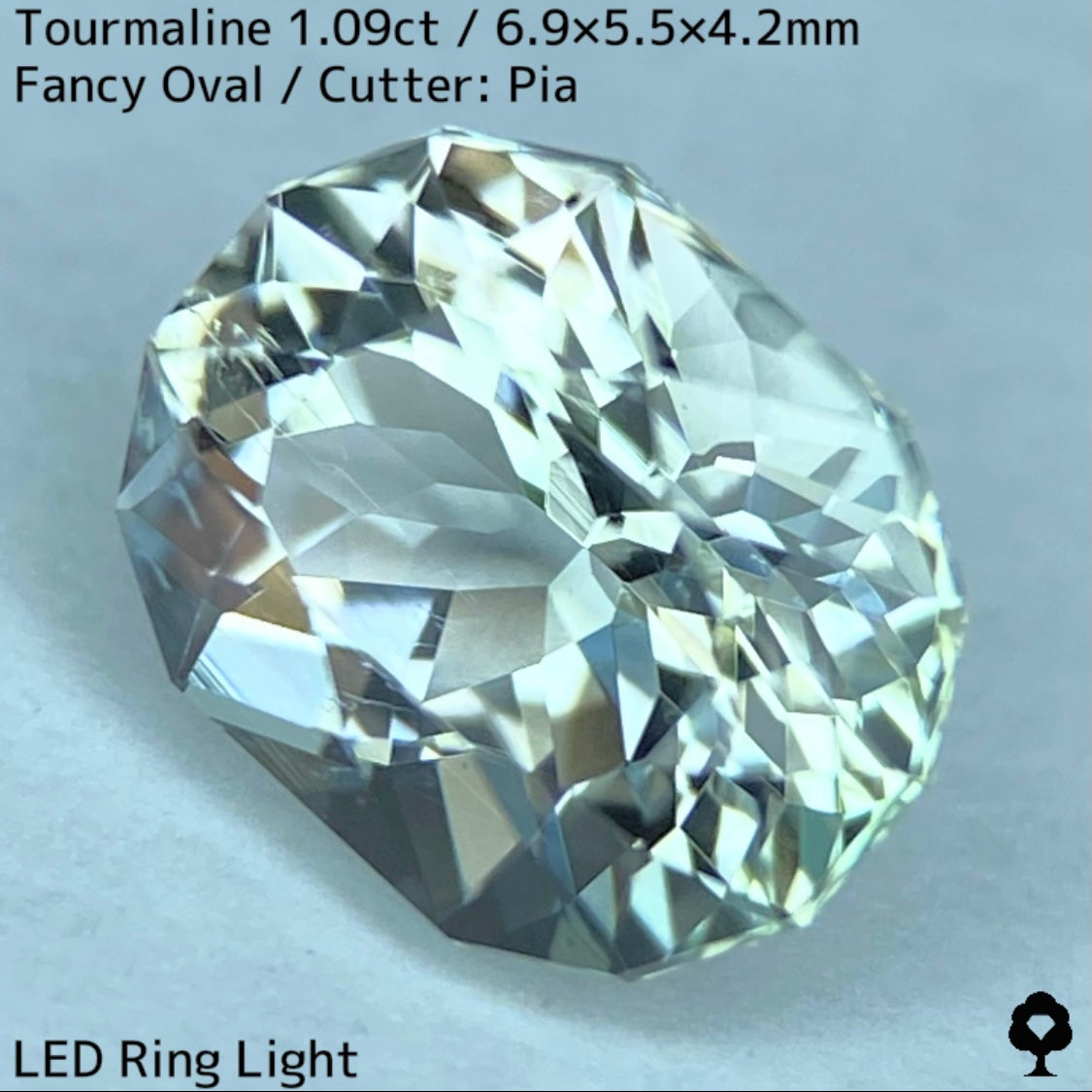 カラーレスのトルマリンはアクロアイトと呼びトルマリンの中でも価値の高いもので、ニュアンスグリーンとカラーレスの融合はライトカラー好きにとってたまらないですし、なかなかの希少さです。