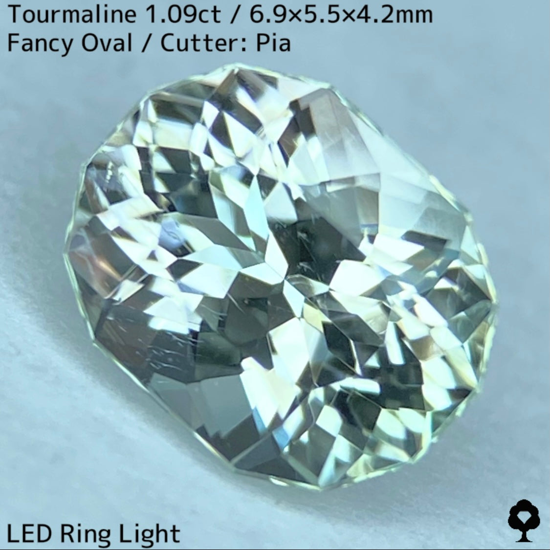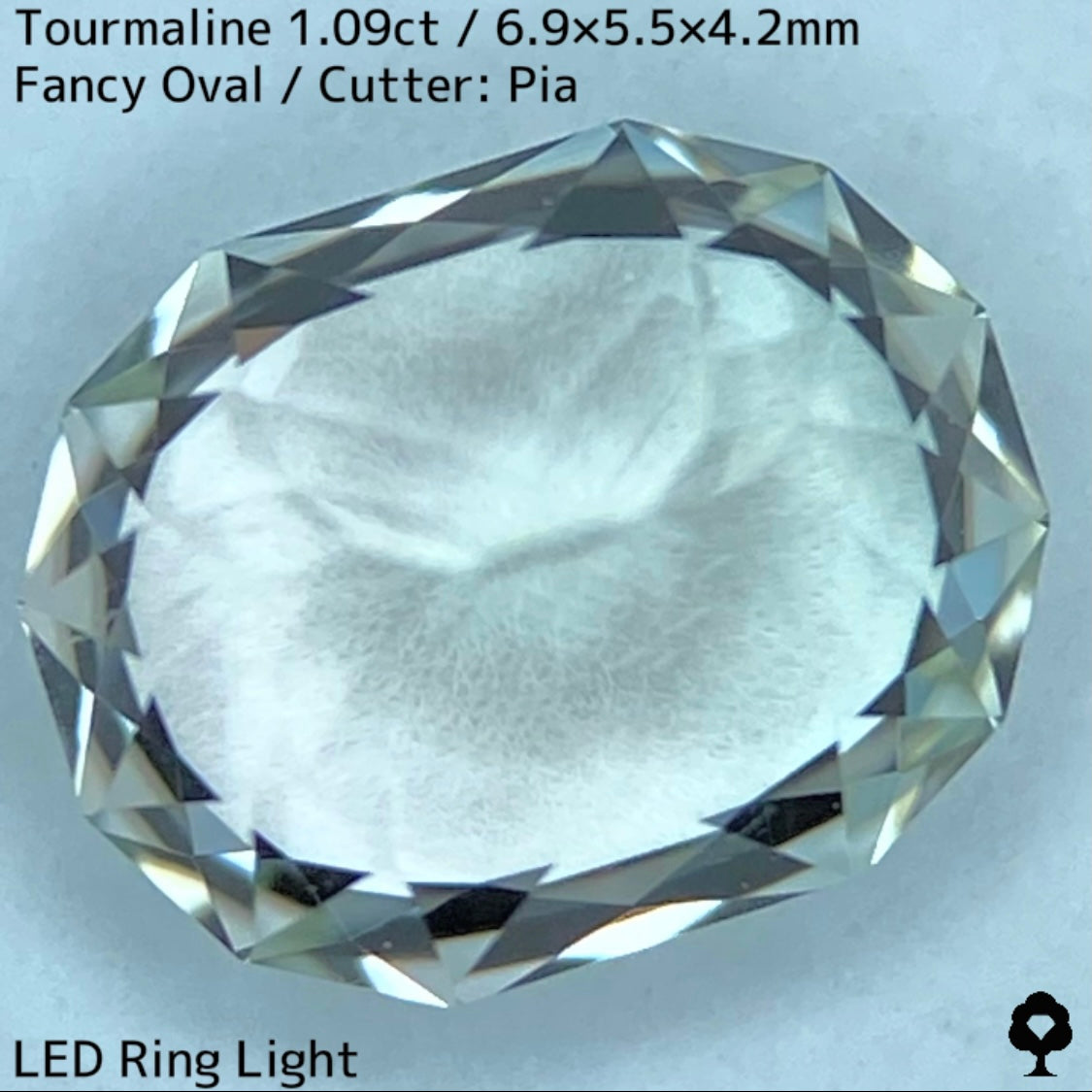 GTJメインカッターピアッちゃんによるカプセル型のファンシーオーバルに仕上げられ、煌めきは抜群です。