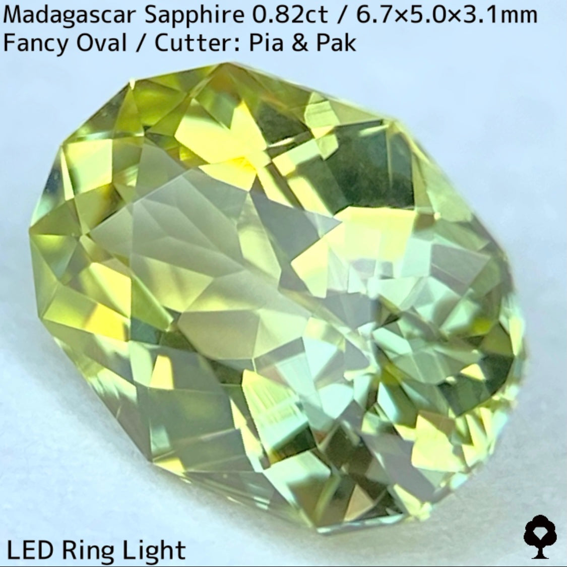 マダガスカル産サファイア0.835ct★煌めき抜群のイエローにブルーの色だまりが混ざるファイアー煌めくライトライムカラー