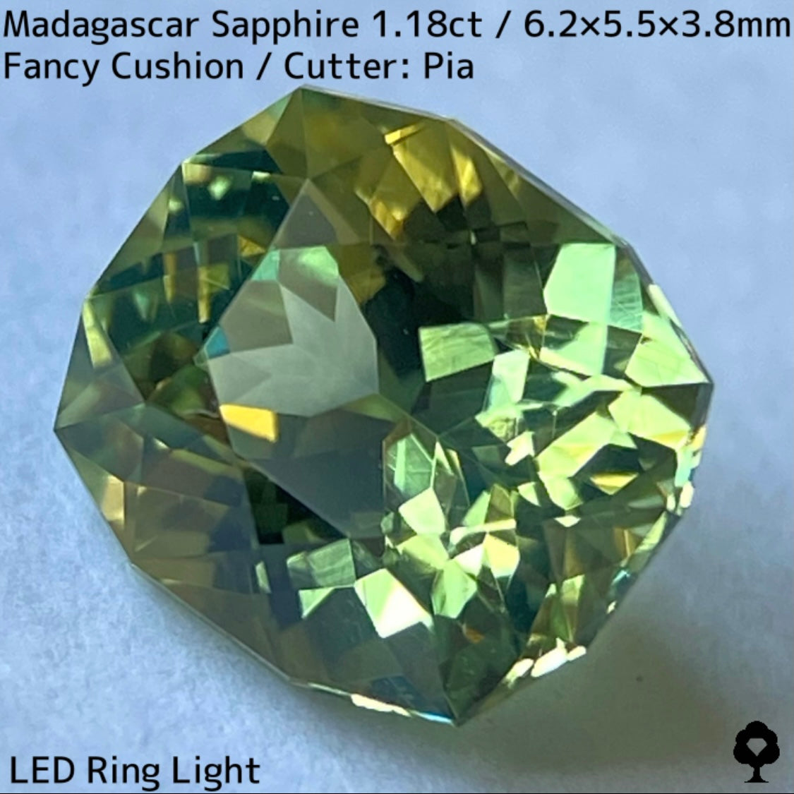 マダガスカル産サファイア1.18ct★パーティ感あるグリーンの華やかな煌めき美しいファンシークッション
