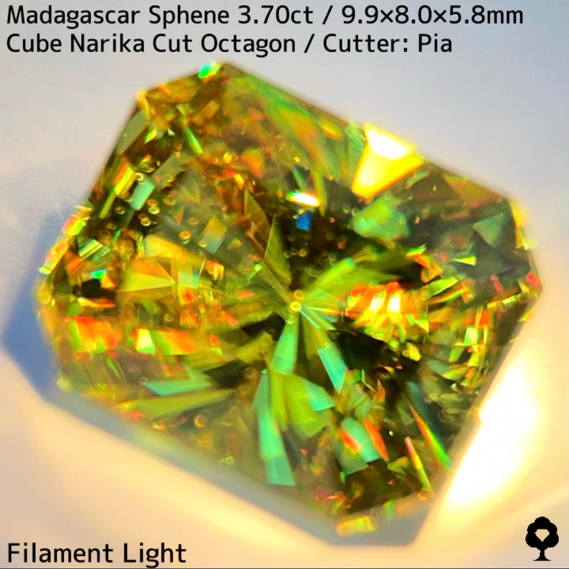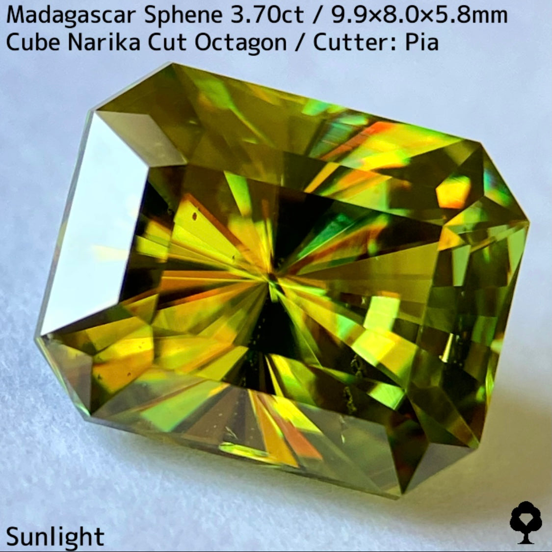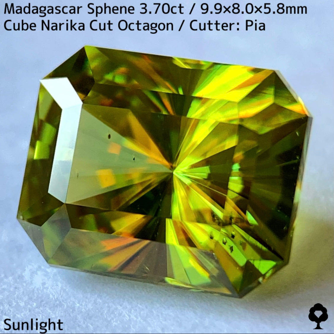 マダガスカル産スフェーン3.704ct★冴え渡るイエローイッシュグリーンのキューブナリカーオクタゴン