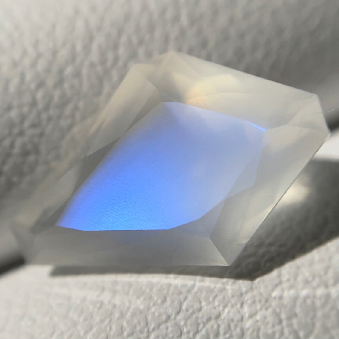 ブルーシラーと独創的カットが美しい&楽しい★ムーンストーン3.83ctレイ作品
