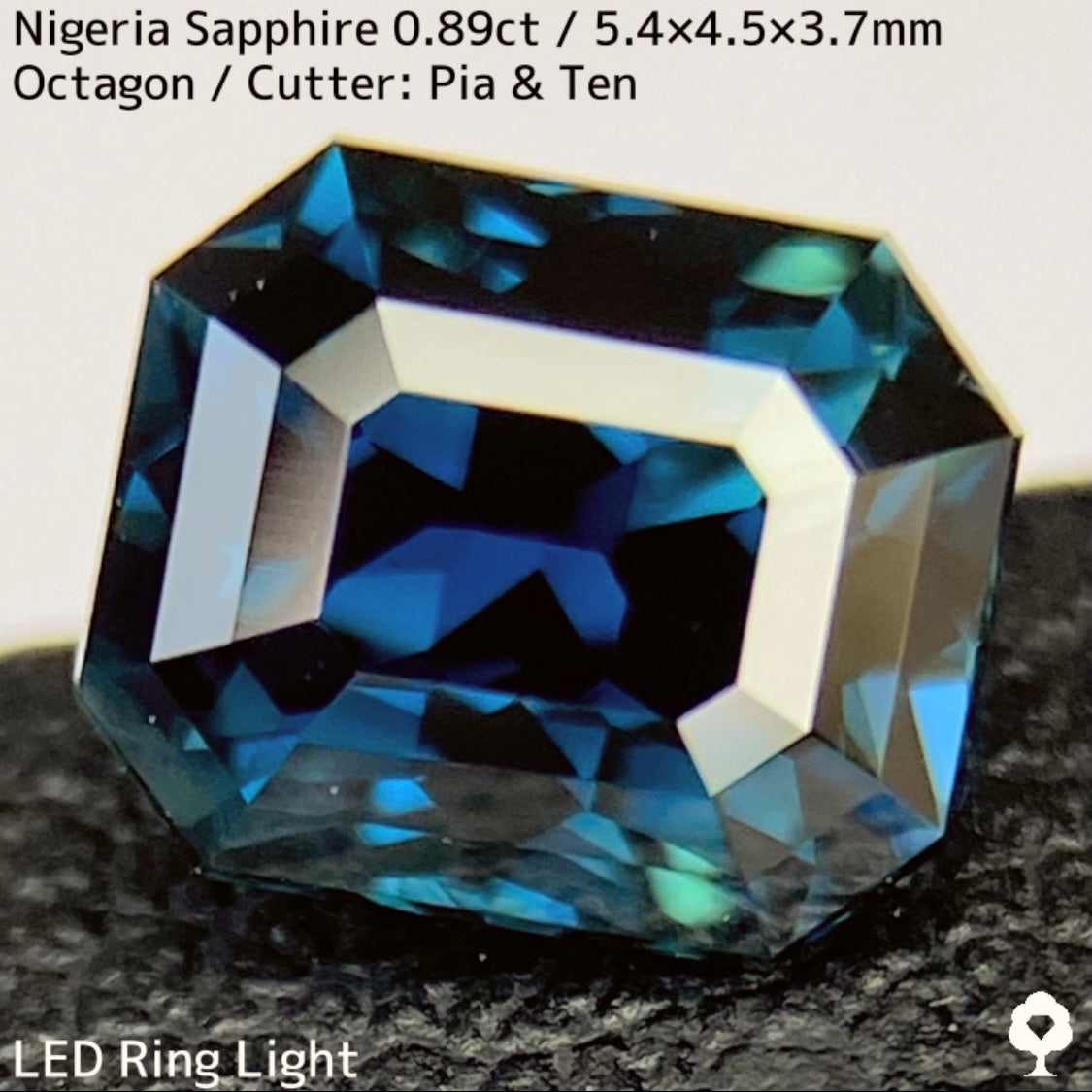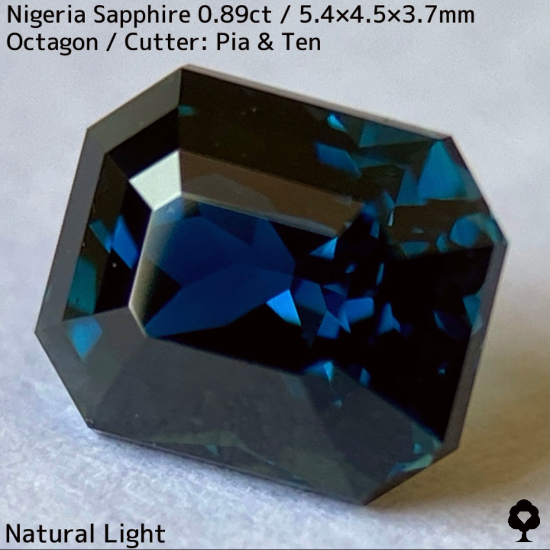 深いインクブルーとグリーンが混ざり合うディープインディゴカラーのナイジェリア産サファイアで、ディープカラーからティール系の煌めきを放つ、目立った内包物の無い美しい結晶の一石です。