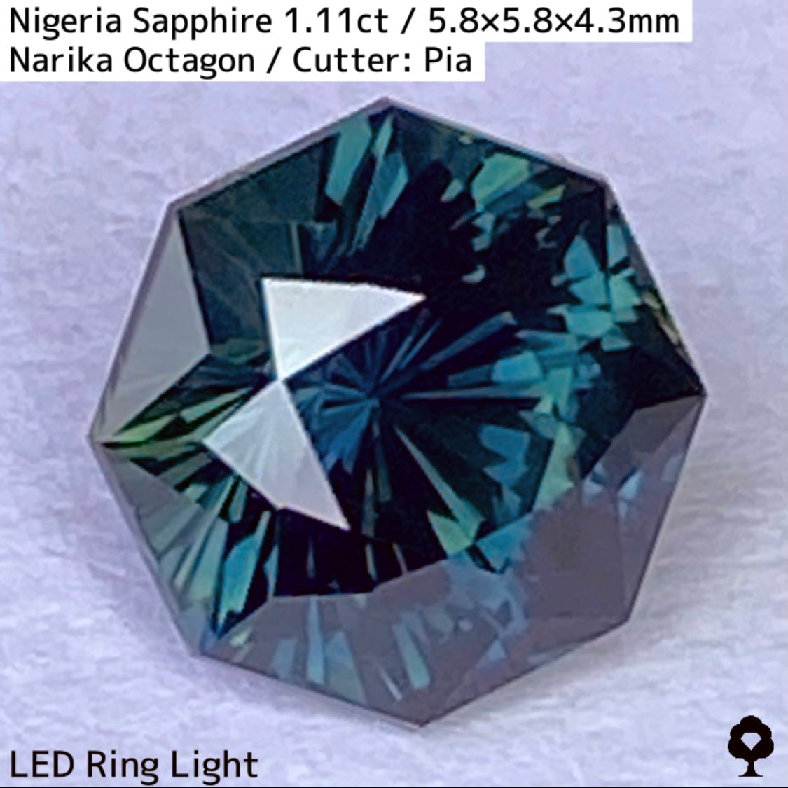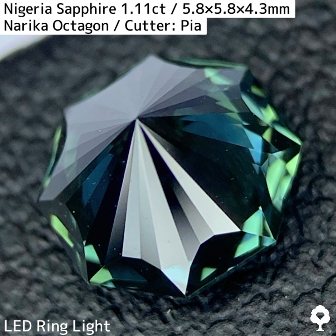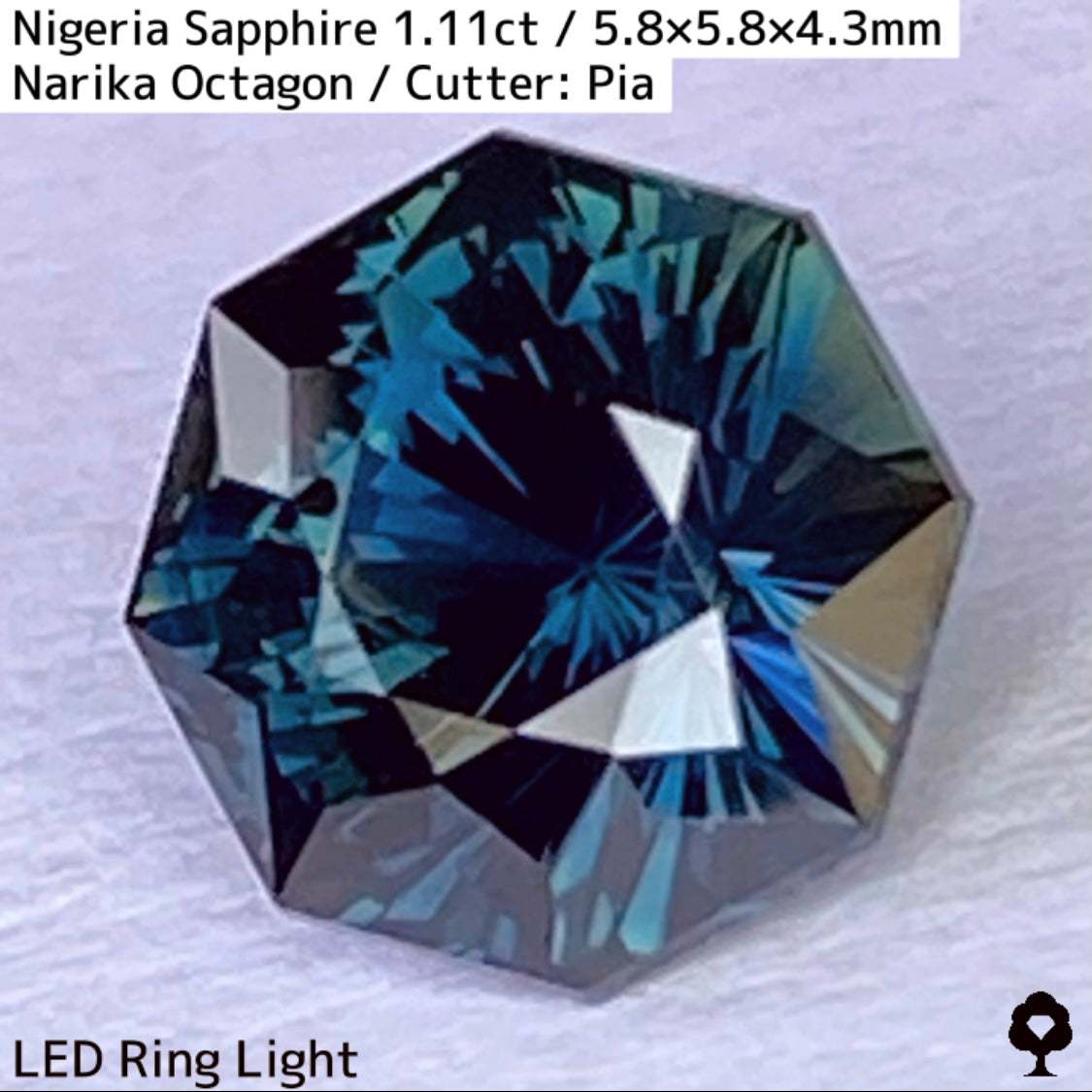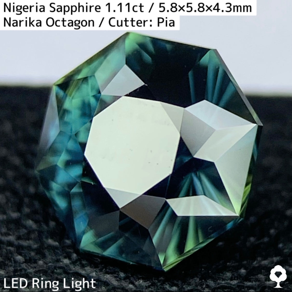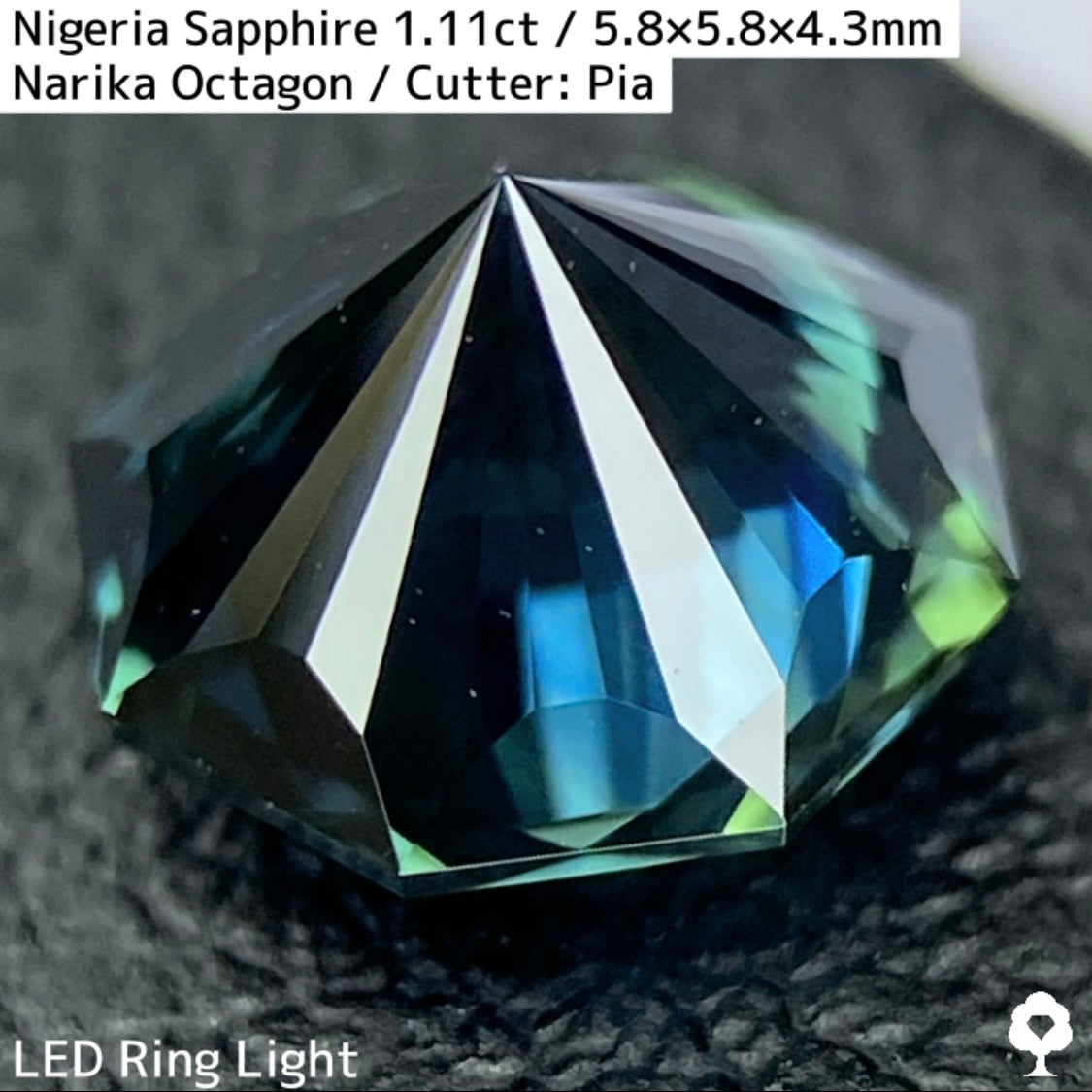 ナイジェリア産サファイア1.11ct★ダークブルーイッシュグリーンからインディゴの鋭い秒針のような煌めき放つ