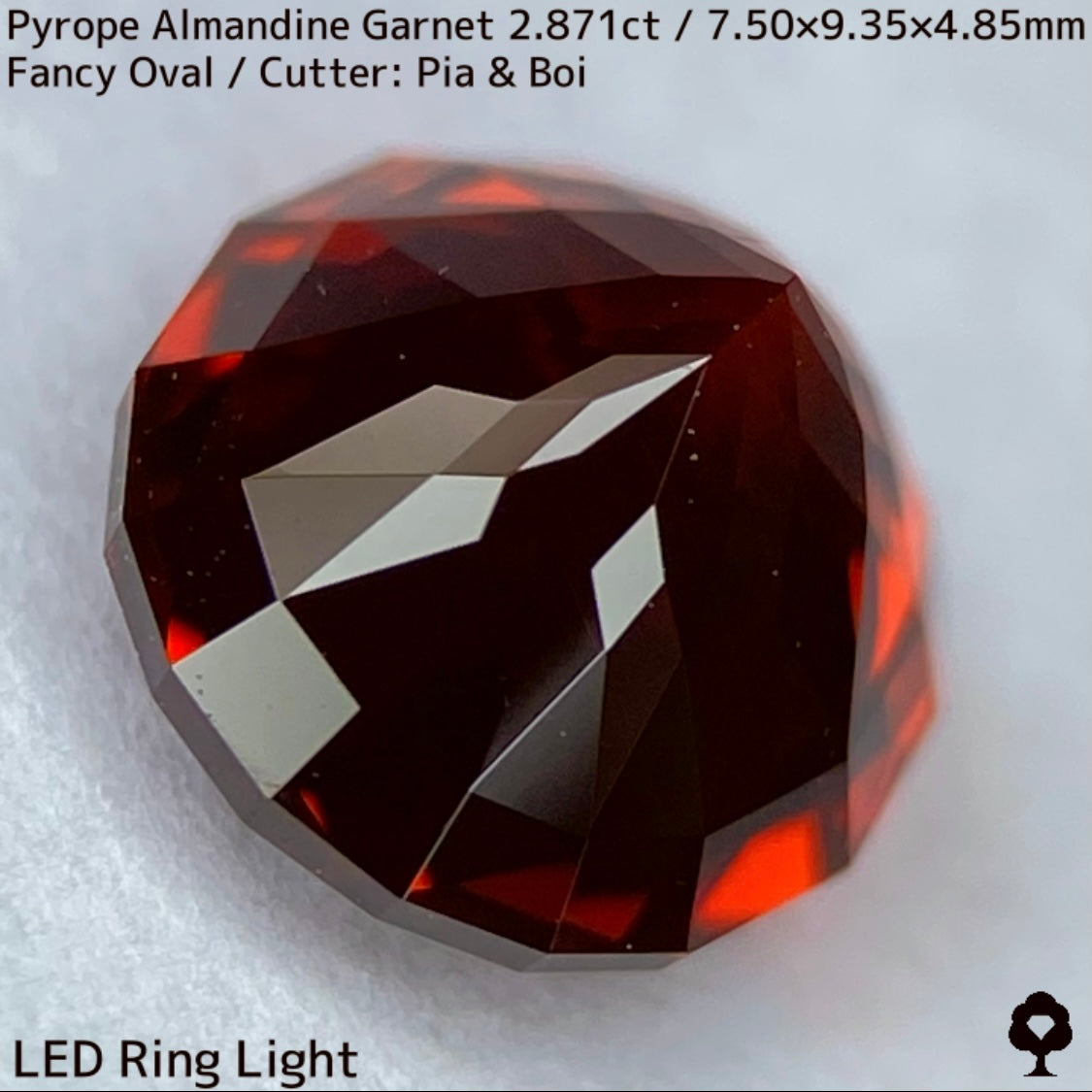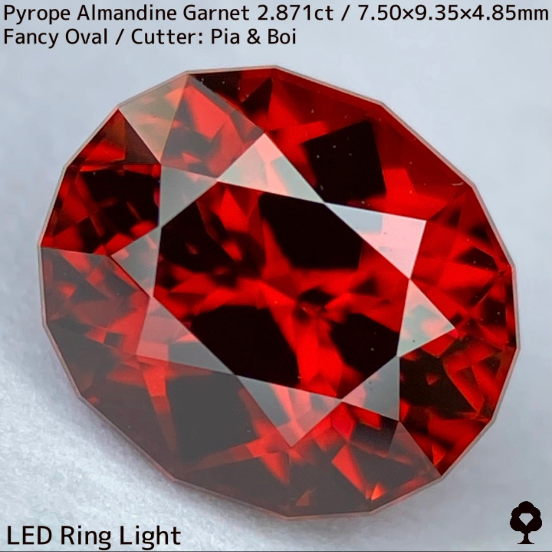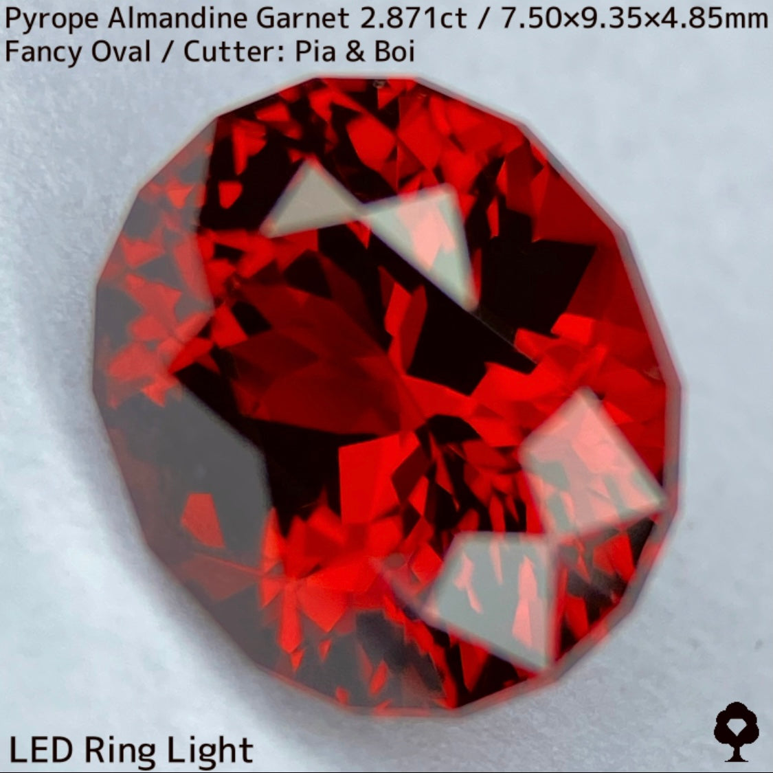 Liveでのご紹介でもカナリ赤に感じられた方が多かった、光源によっては限りなく赤に近くみ見えるけれども、シッカリとオレンジを感じられるパイロープアルマンディンガーネットです。