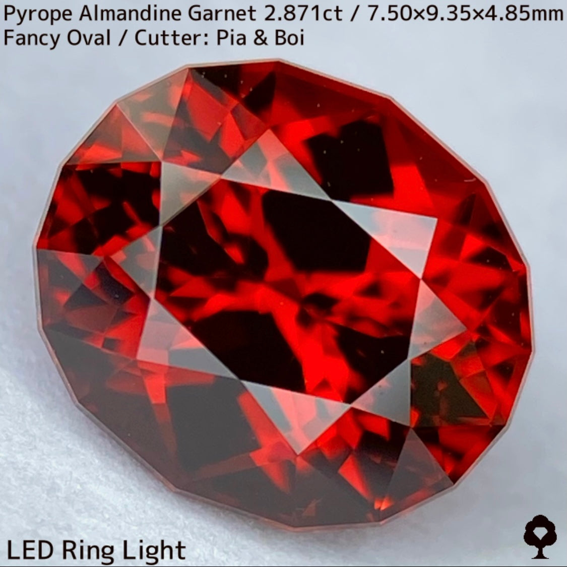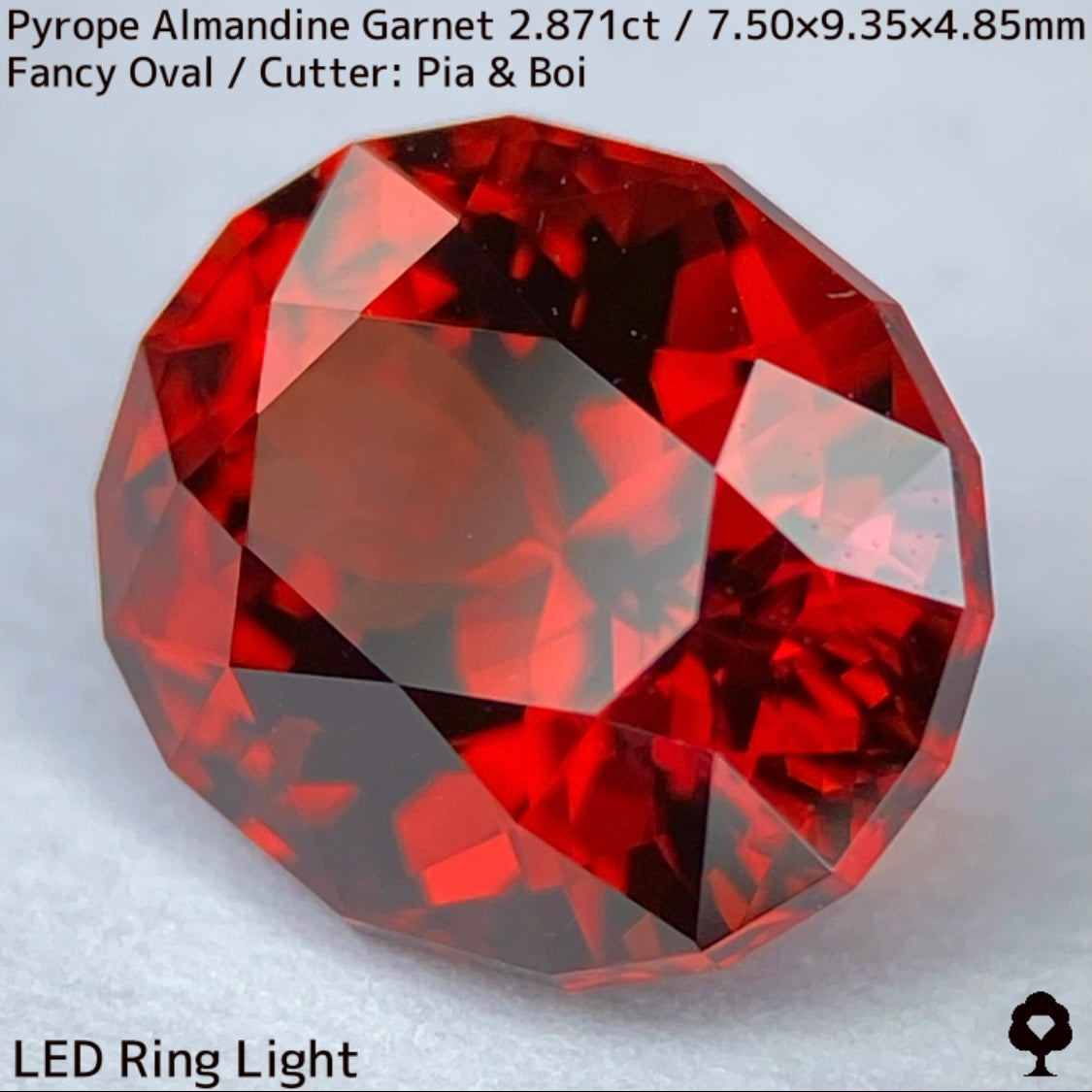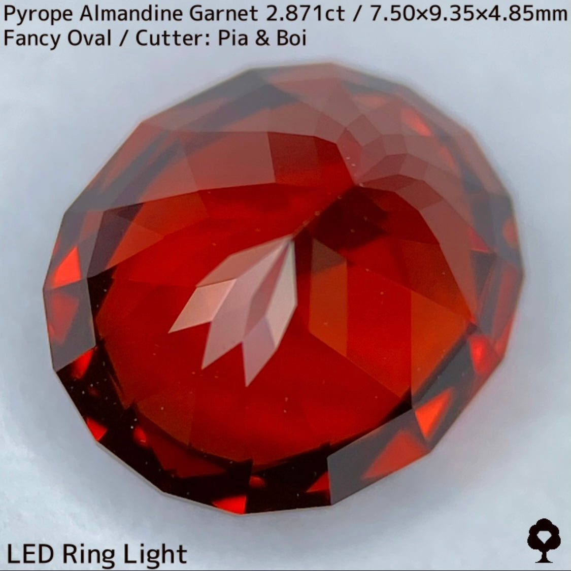 Liveでのご紹介でもカナリ赤に感じられた方が多かった、光源によっては限りなく赤に近くみ見えるけれども、シッカリとオレンジを感じられるパイロープアルマンディンガーネットです。