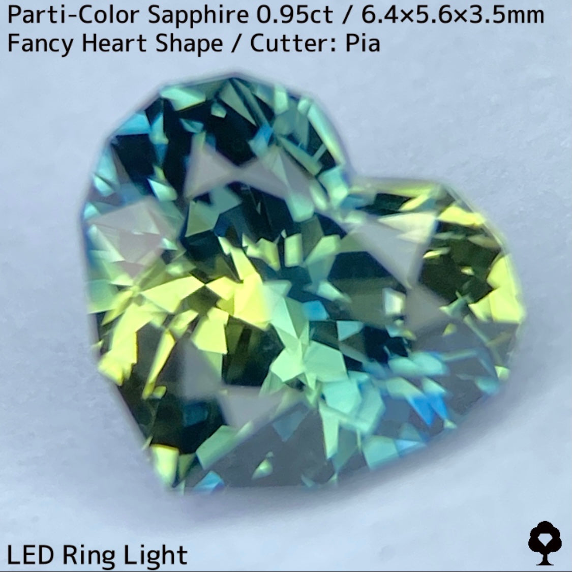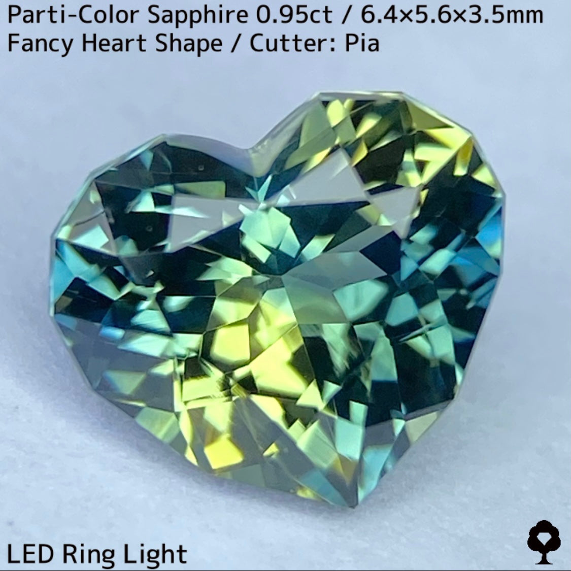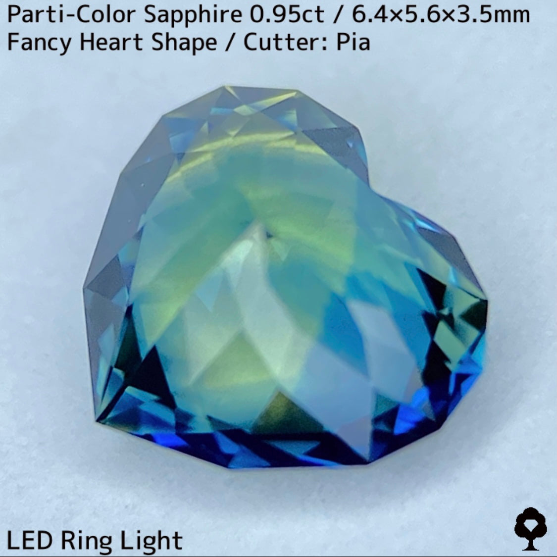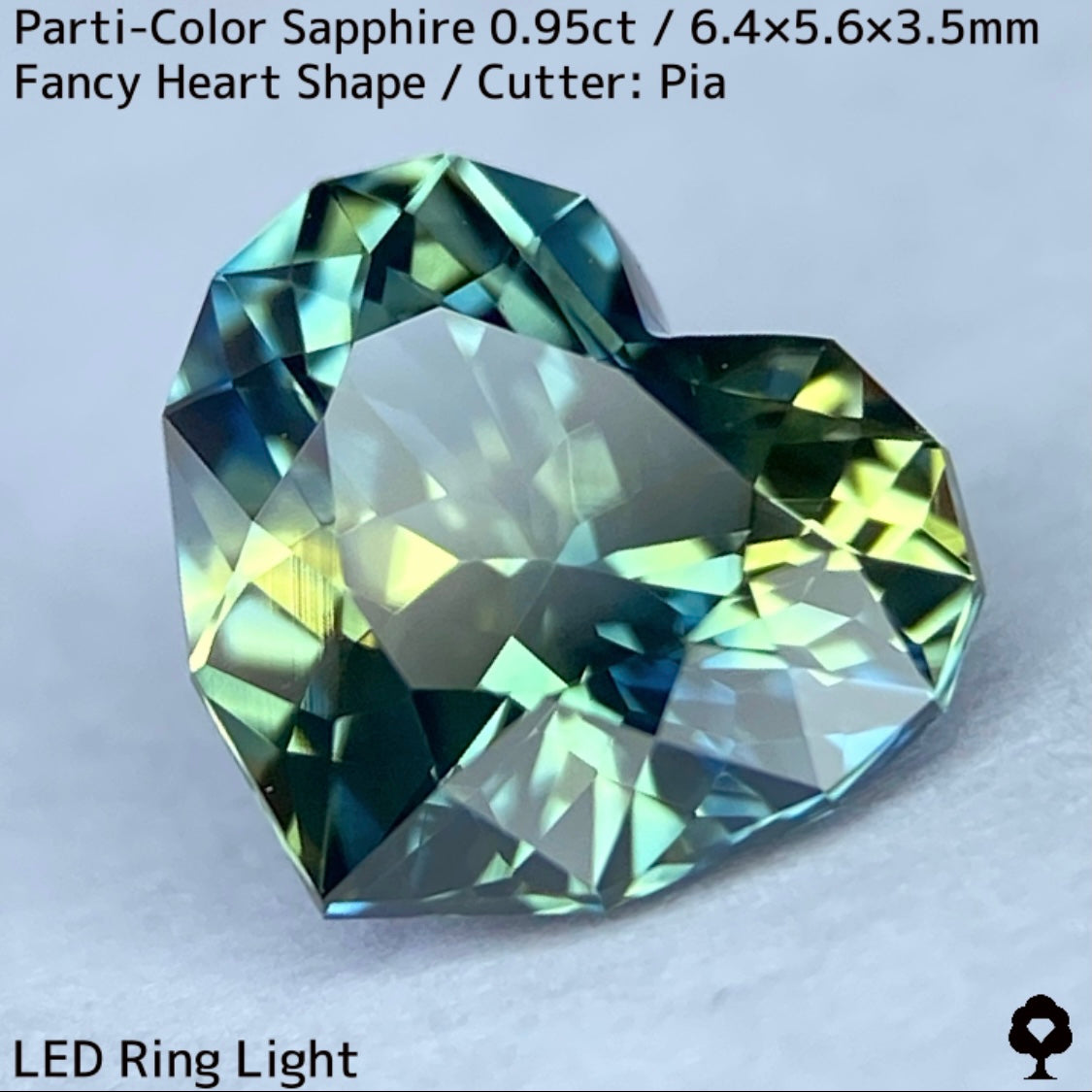 パーティカラーサファイア0.95ct★イエローからパープル感じるブルーまでのカラフルなパーティ感美しいレアファンシーハート