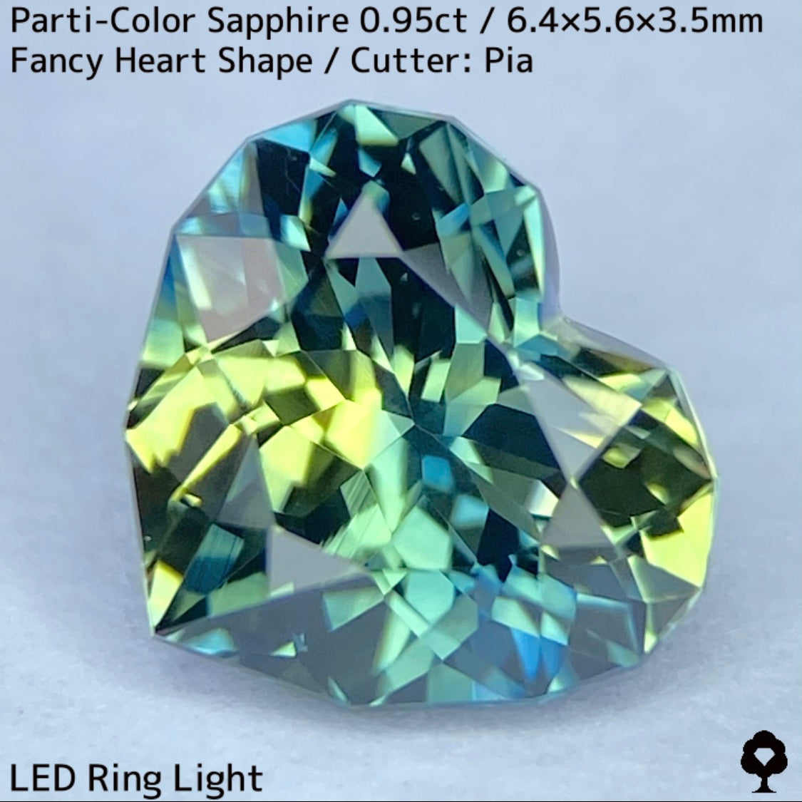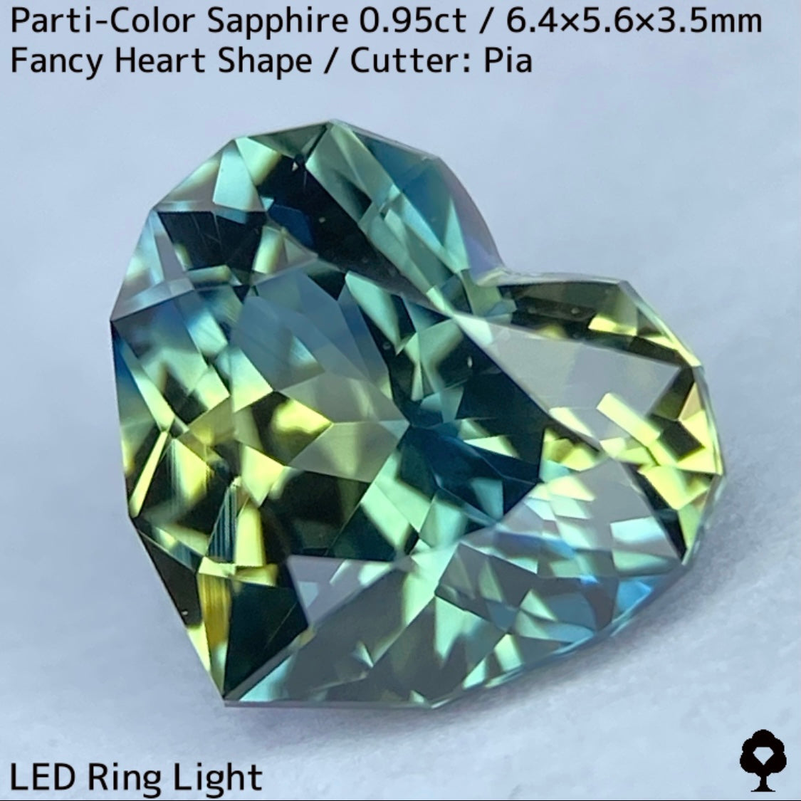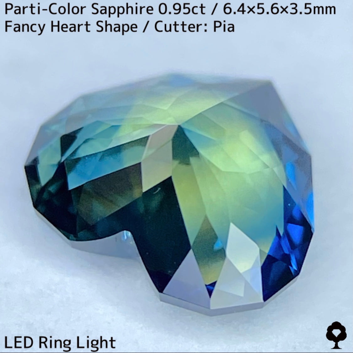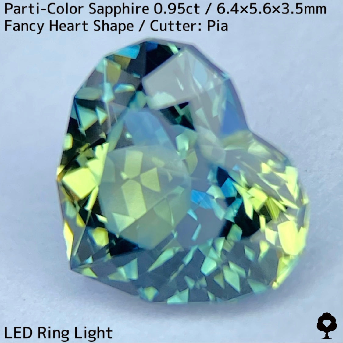 パーティカラーサファイア0.95ct★イエローからパープル感じるブルーまでのカラフルなパーティ感美しいレアファンシーハート