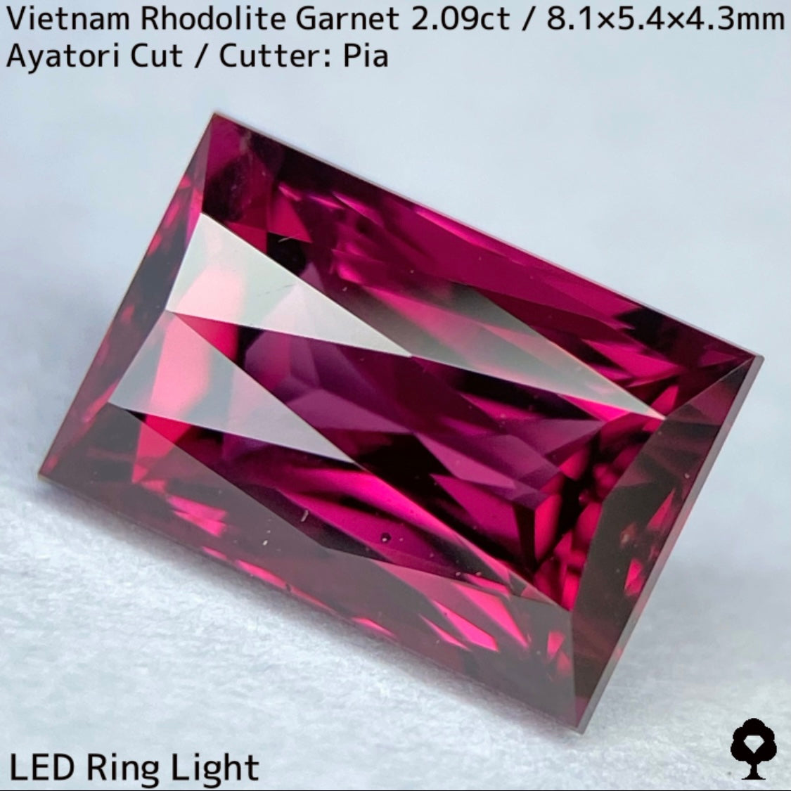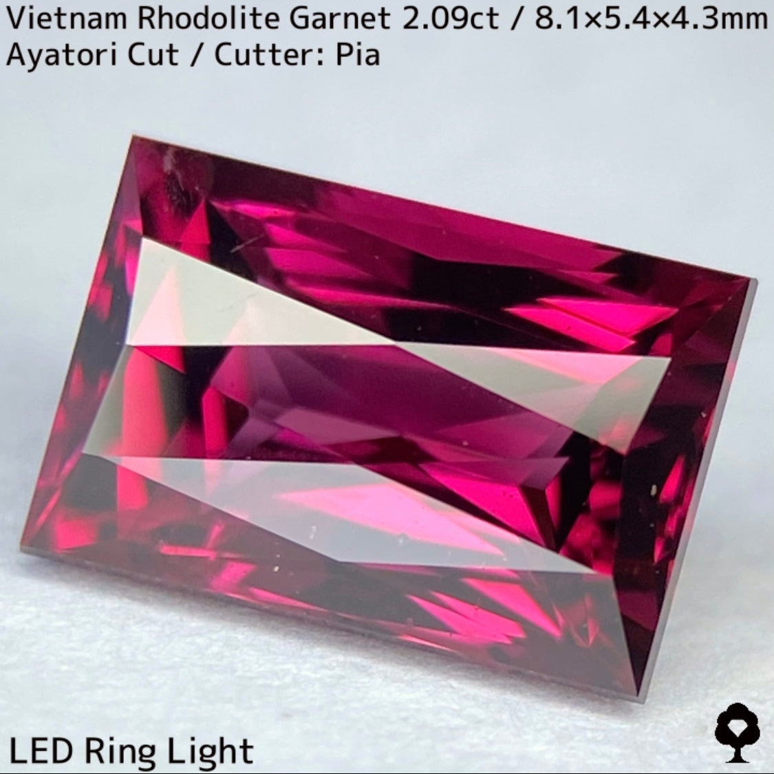 ベトナム産ロードライトガーネット2.09ct★シザースの極みアヤトリカットに仕上げたベトナム産らしいオレンジーな美色薔薇色