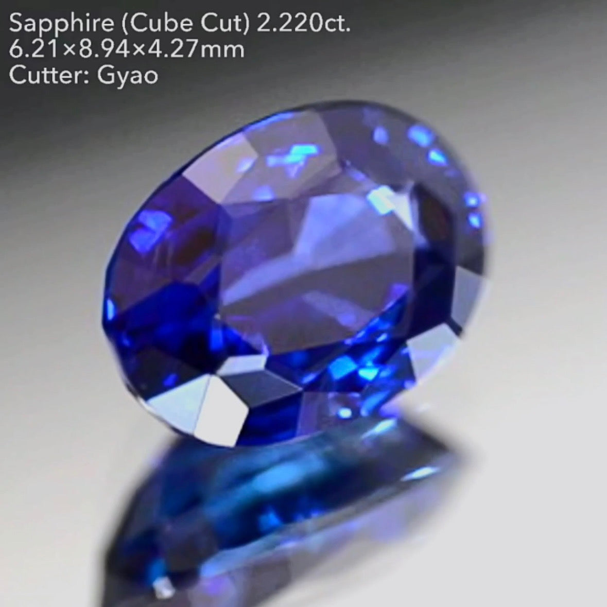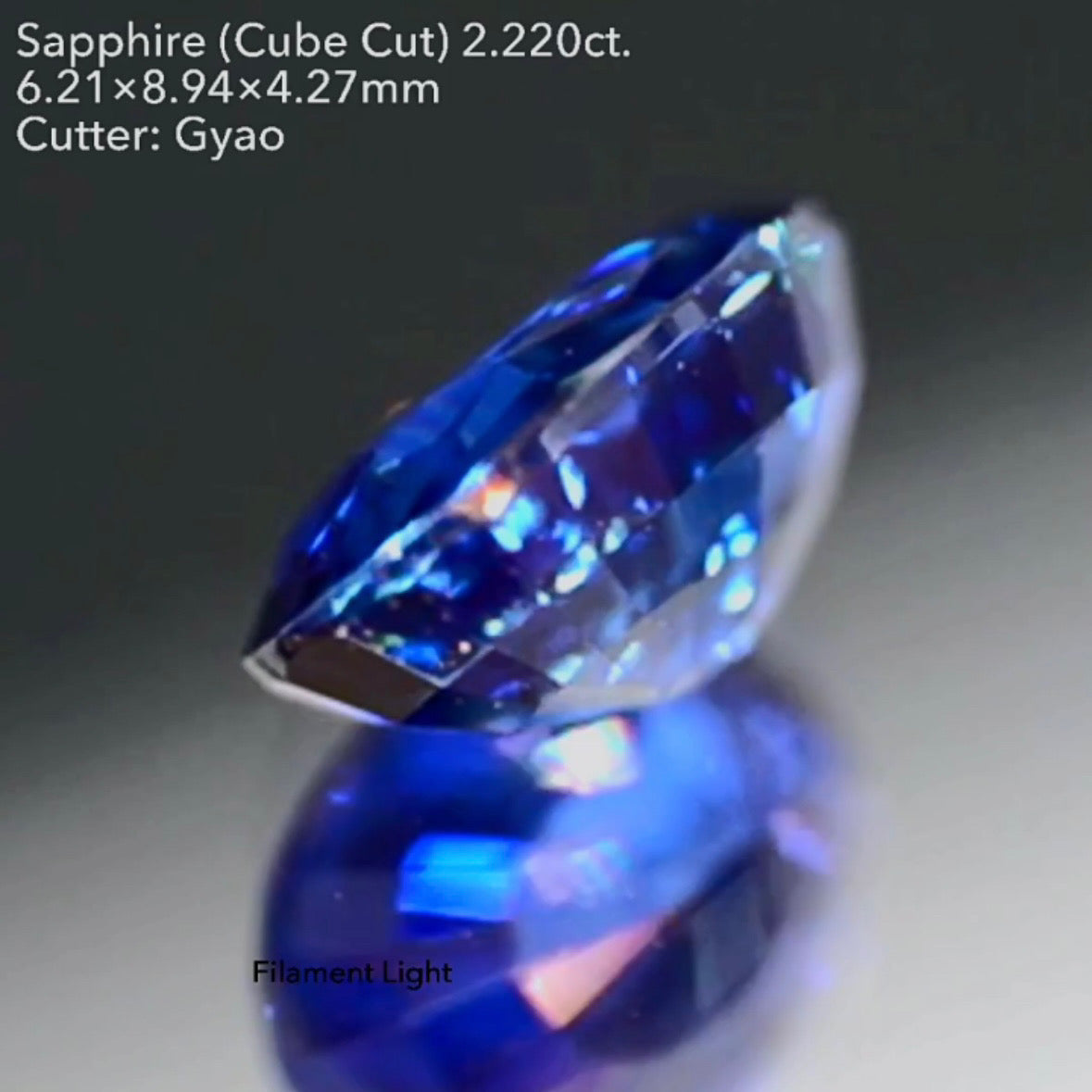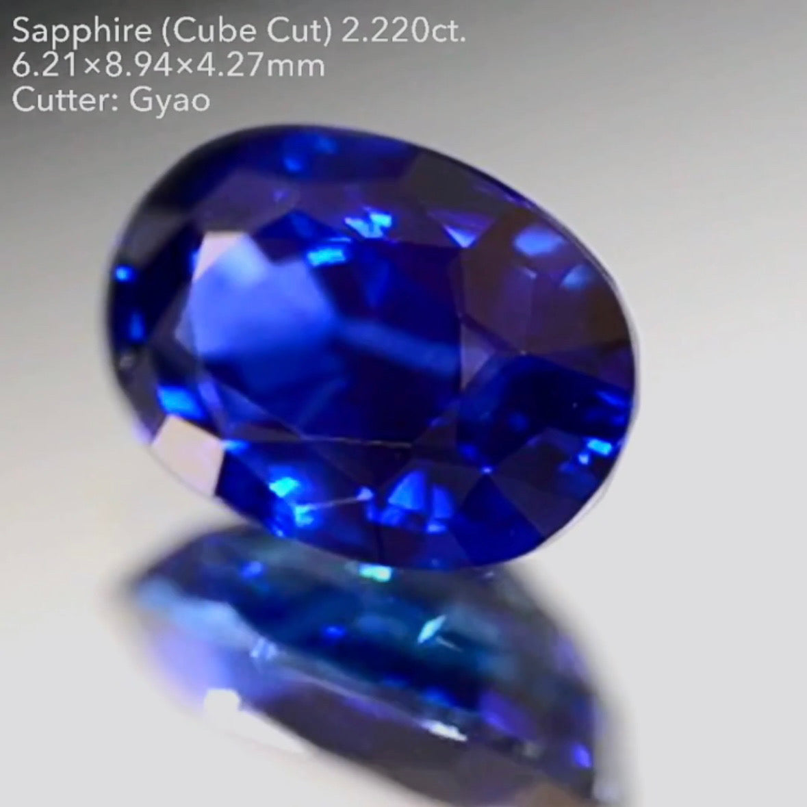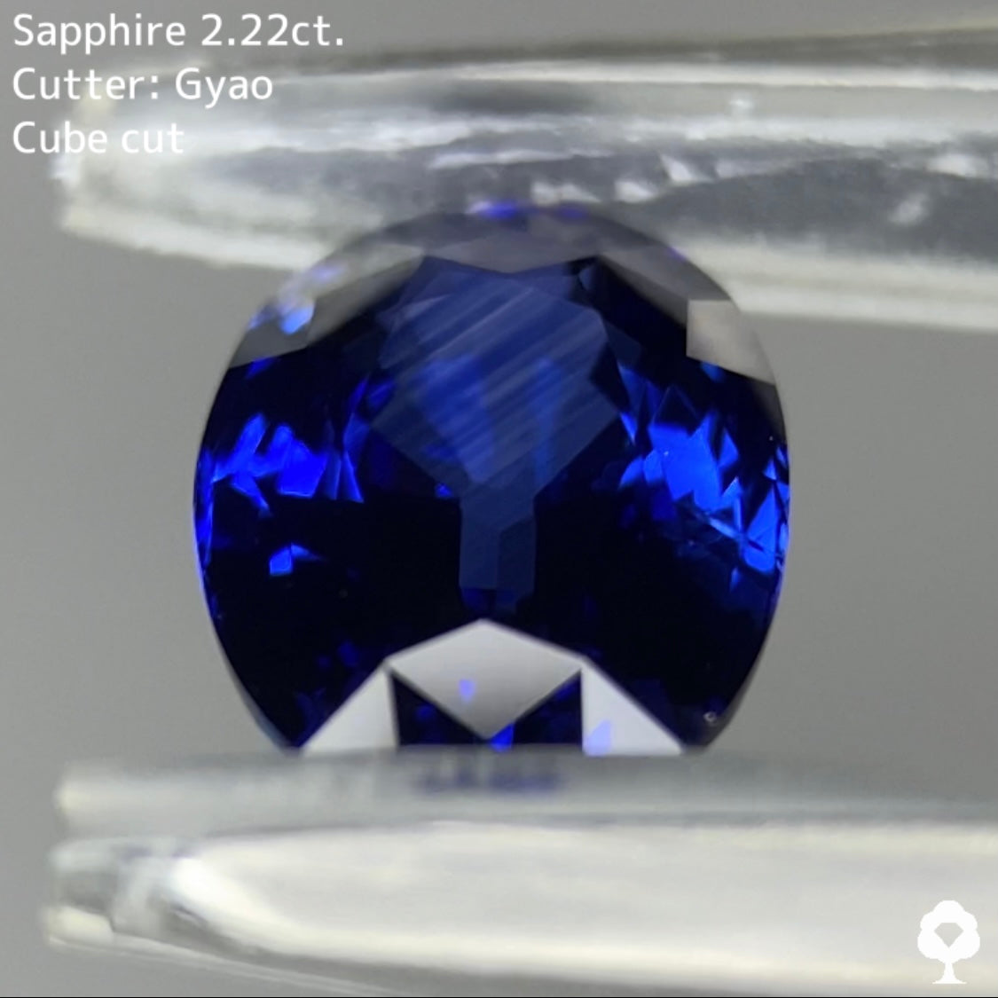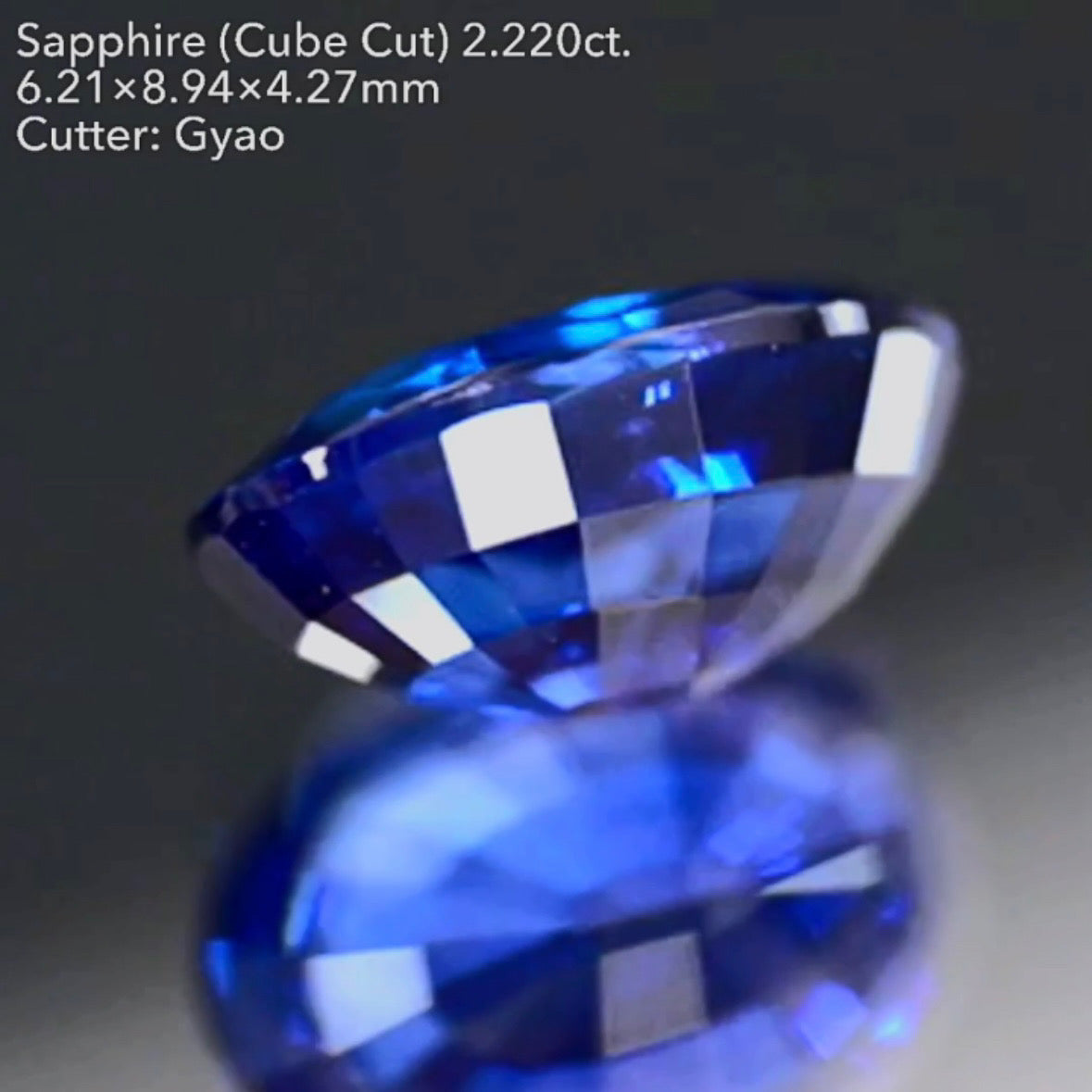 ロイヤルにインクブルーが混ざった濃厚美色に縁取りキューブカット★サファイア 2.220ct【Cube cut】