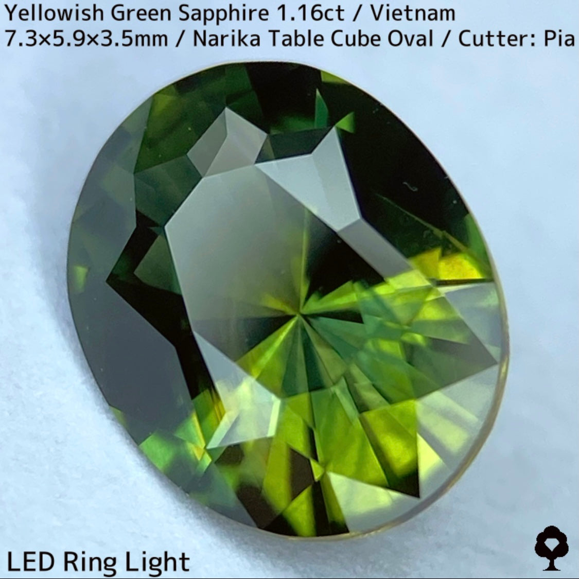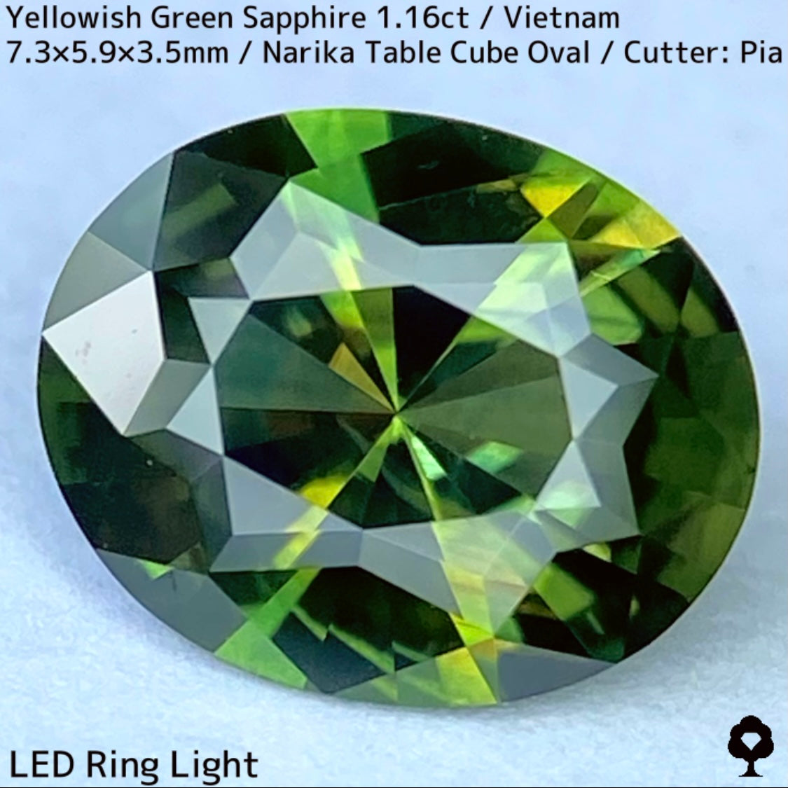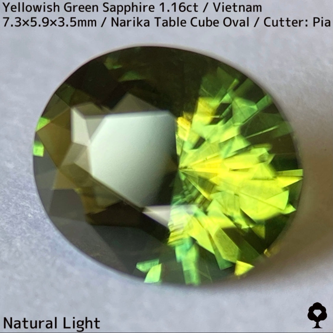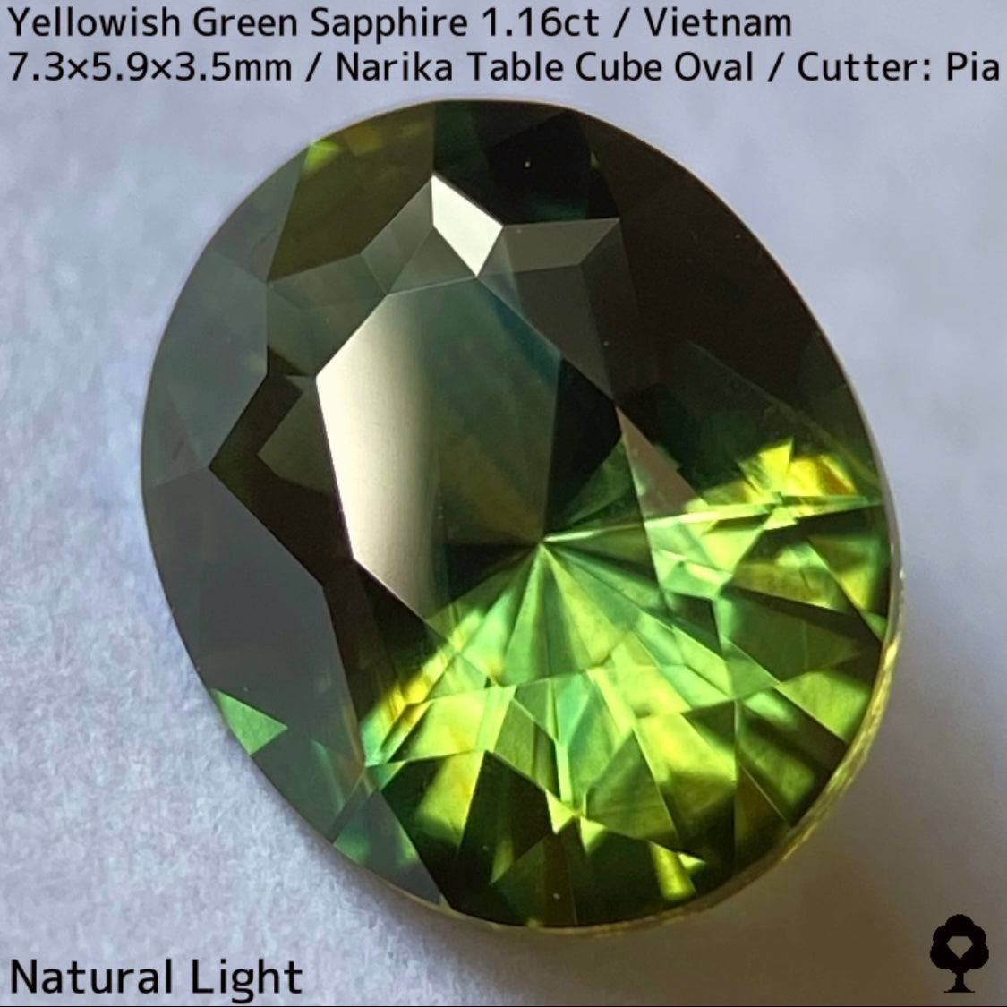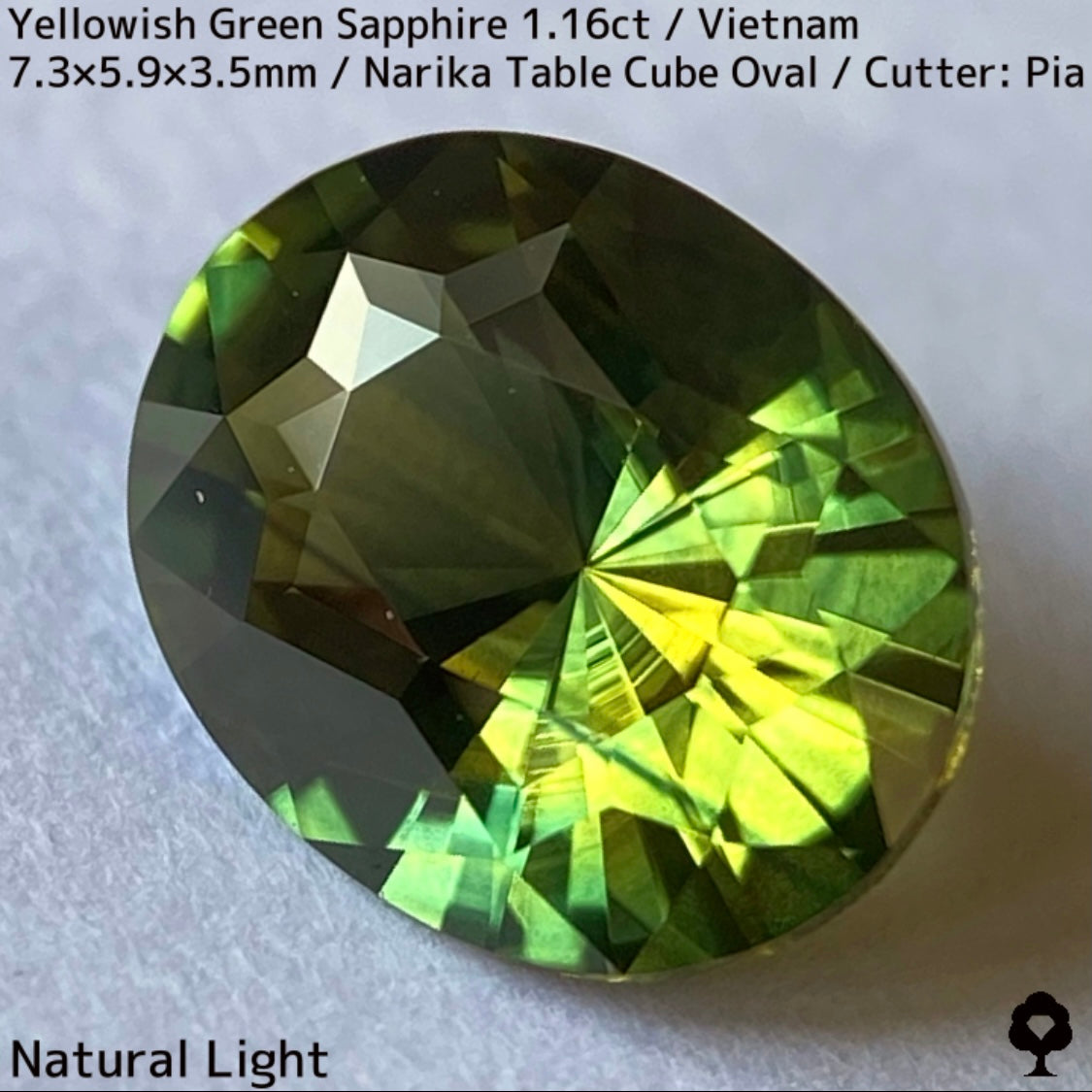 【ご当選者さま専用】ベトナム産イエローイッシュグリーンサファイア1.16ct★ベトナム南部産出の黄色と緑のパーティ感あるナリカーカット