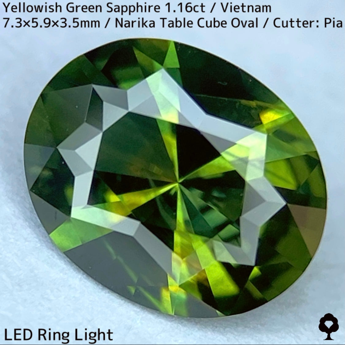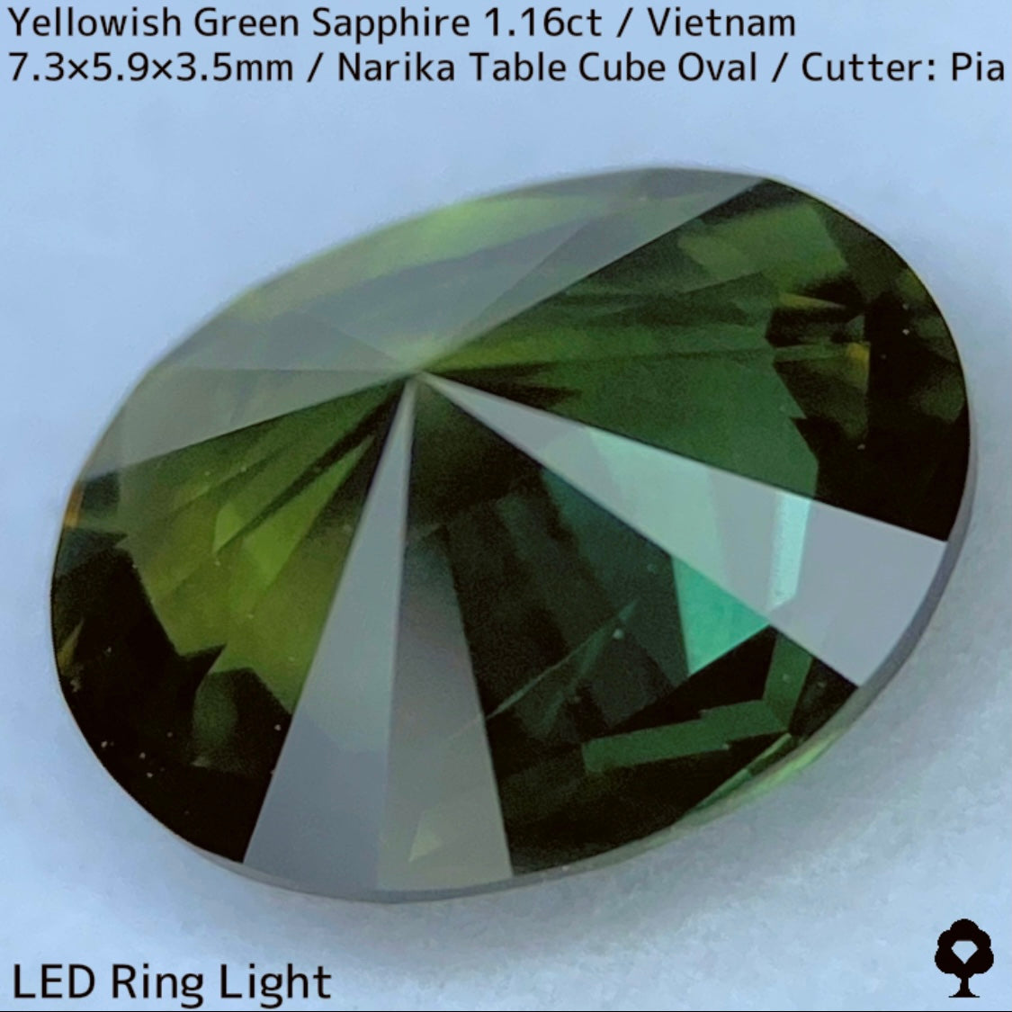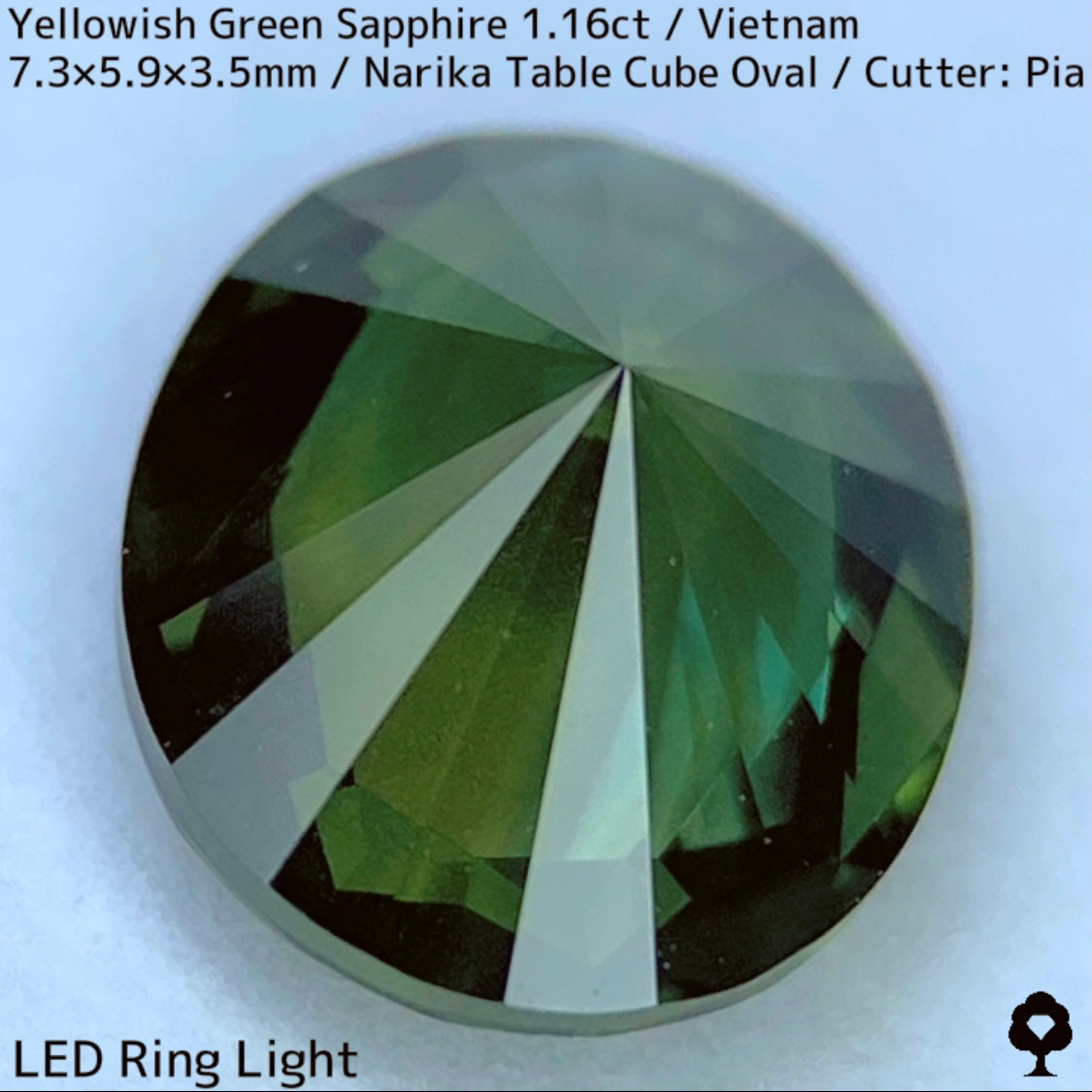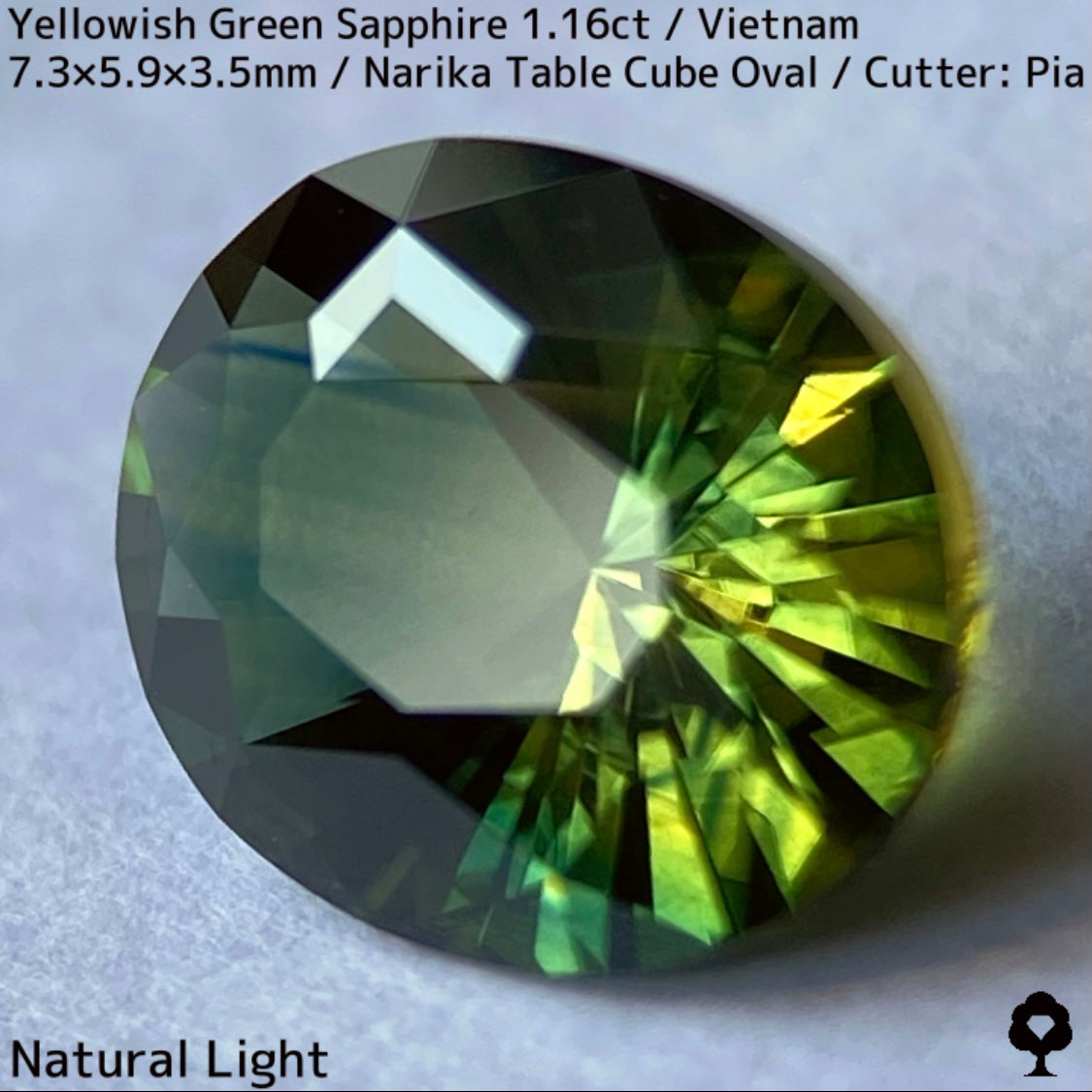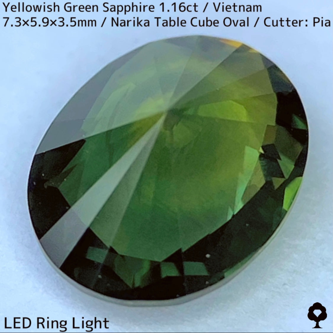 【ご当選者さま専用】ベトナム産イエローイッシュグリーンサファイア1.16ct★ベトナム南部産出の黄色と緑のパーティ感あるナリカーカット