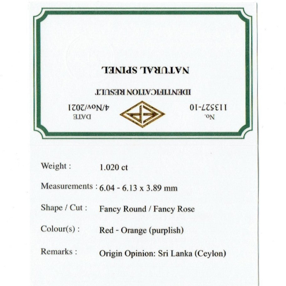 複雑で個性的な美色「パープリッシュレッドオレンジ」スピネル1.020ct💎ピアッちゃん作品