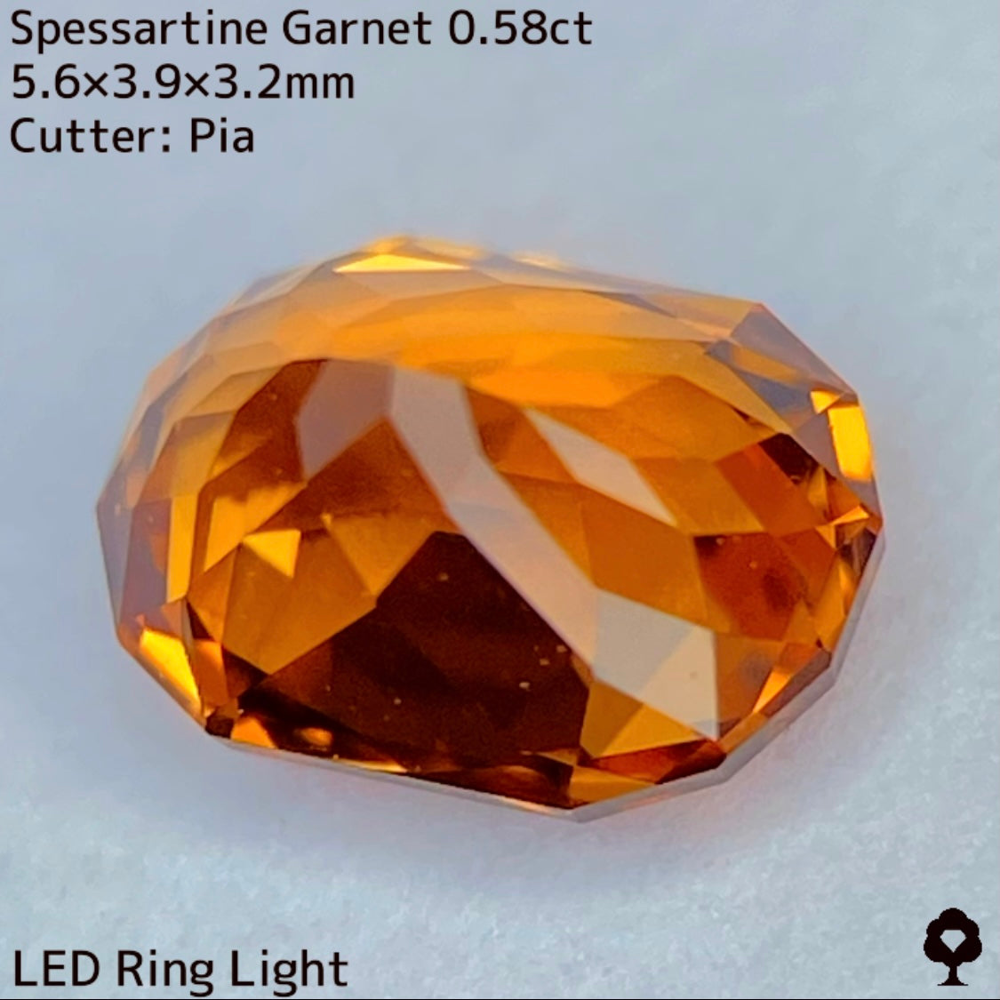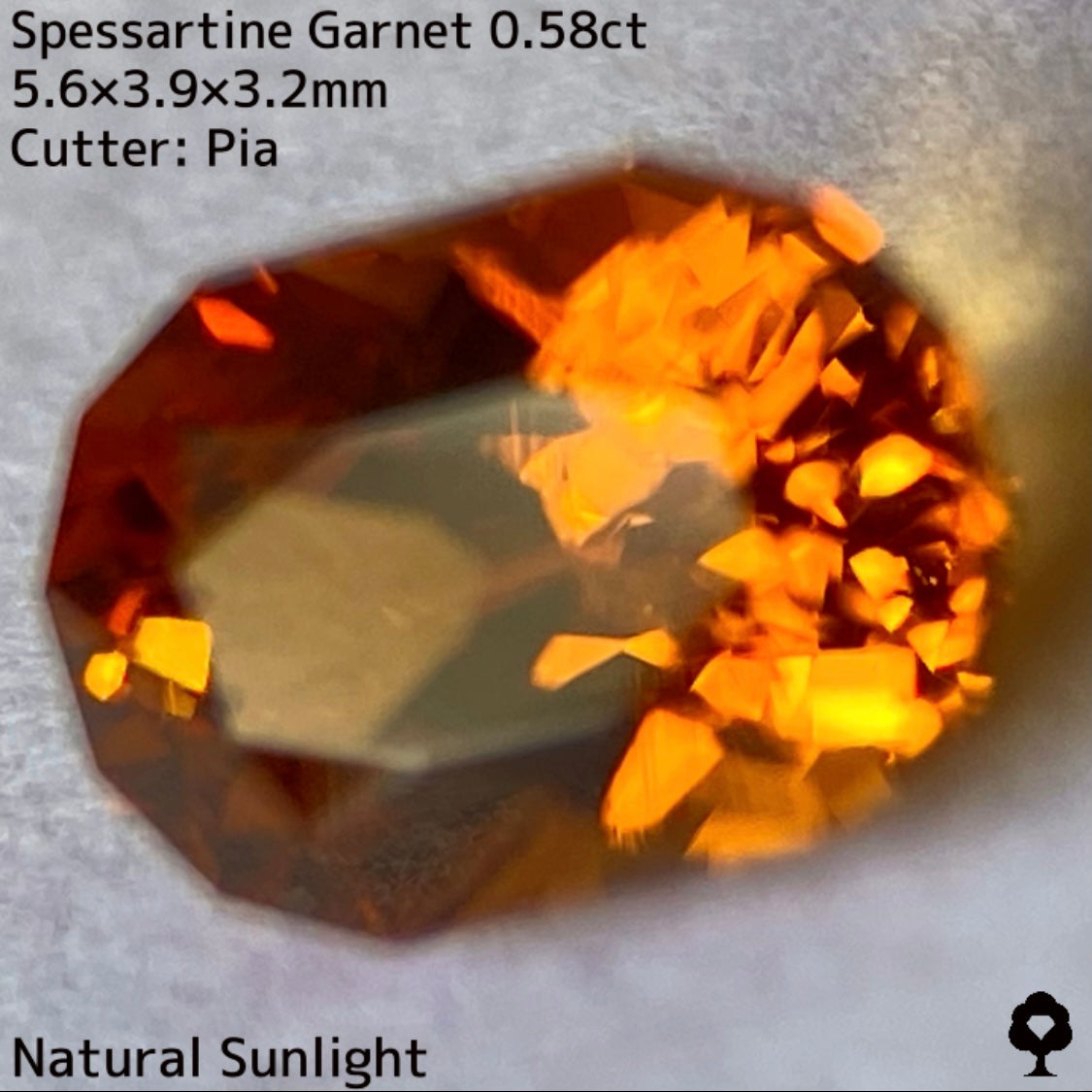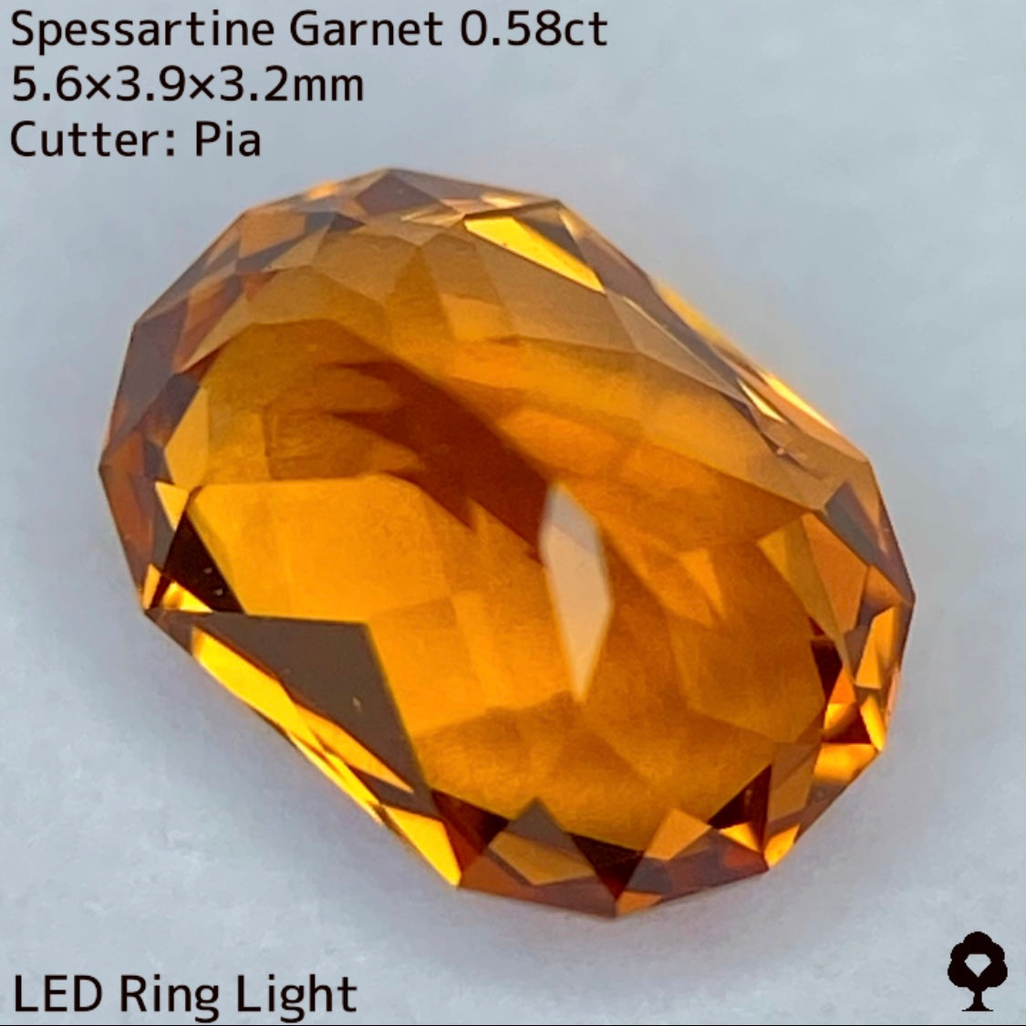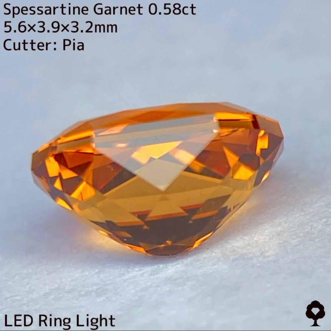 ガーネットの中でも内包物の入りやすいスペサタイトガーネットですが、こちらの作品は目立つ内包物の無い美しい結晶で、冴えのある彩度の高いオレンジ色が元気を与えてくれる、高品質な一石です。