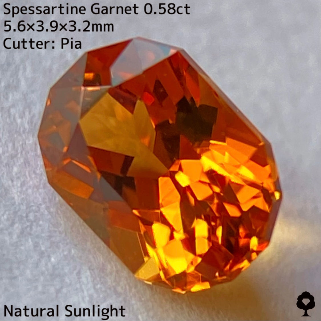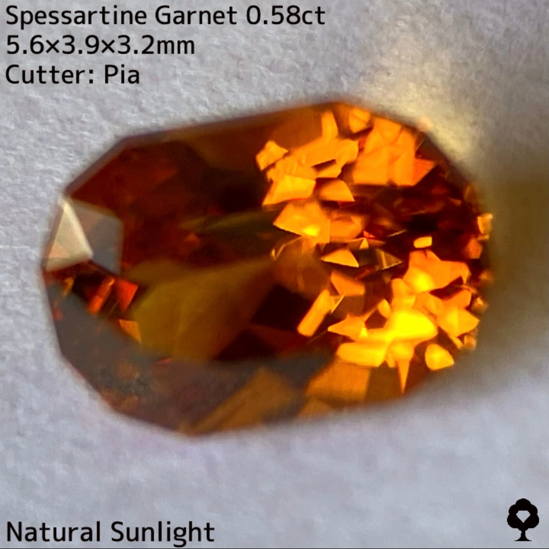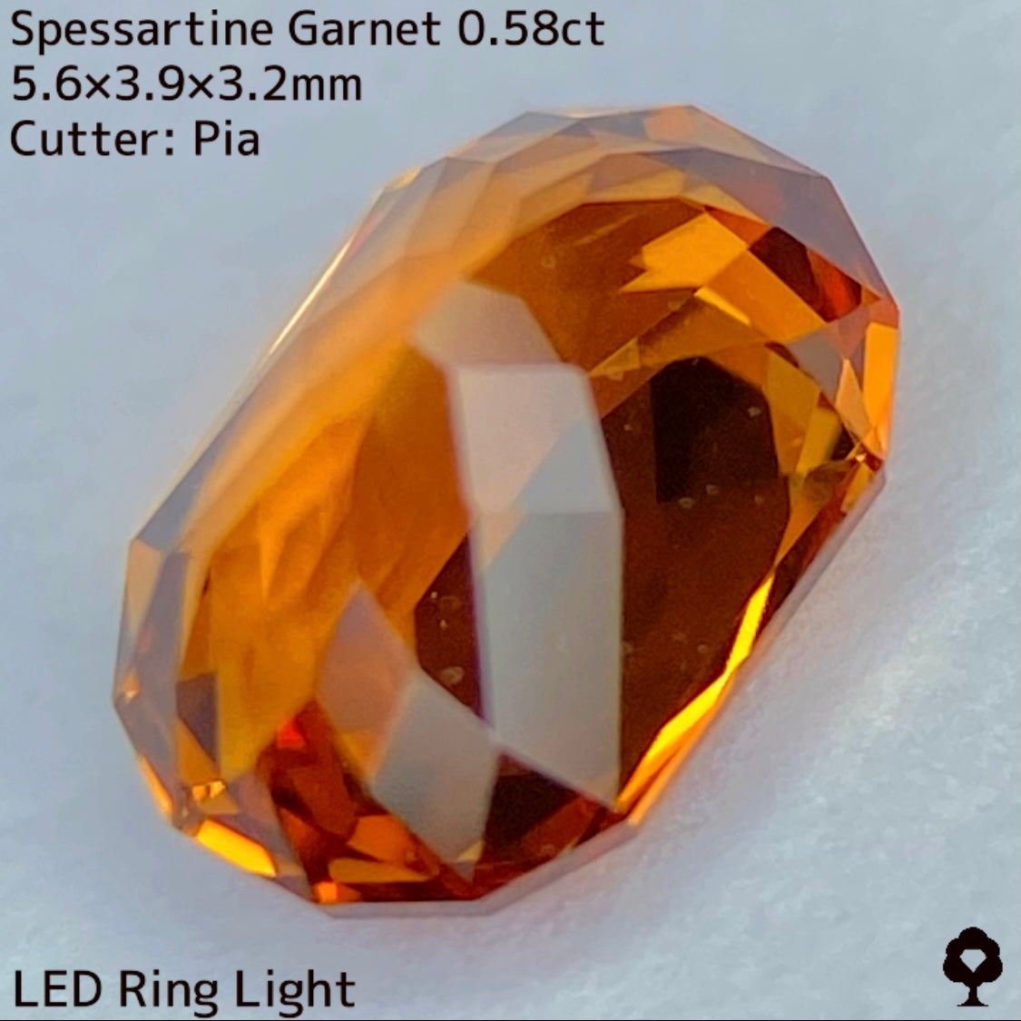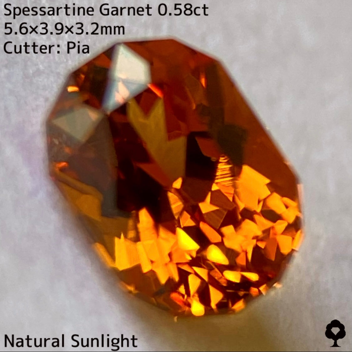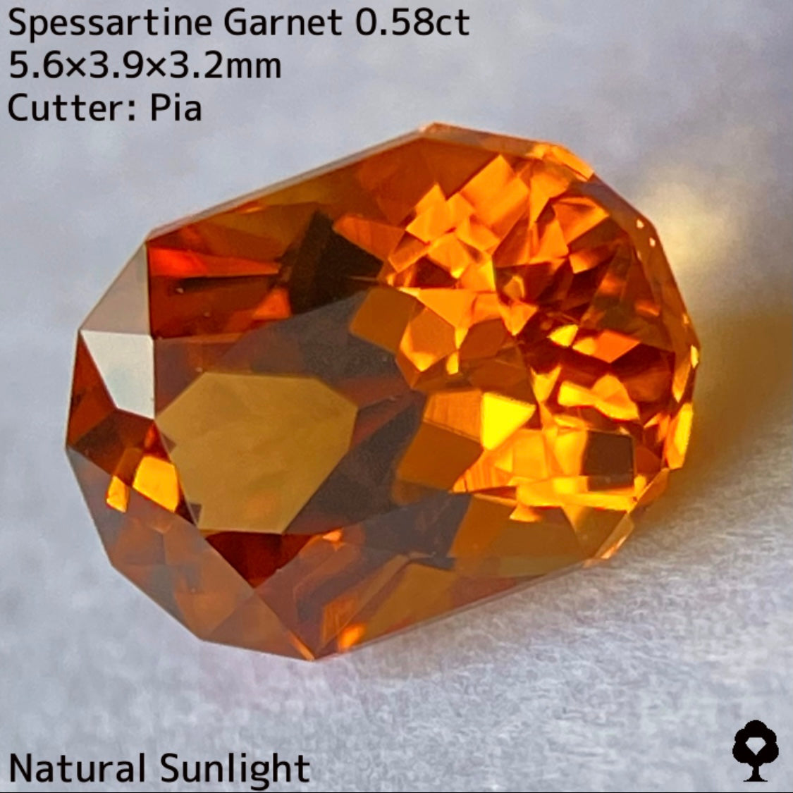 ガーネットの中でも内包物の入りやすいスペサタイトガーネットですが、こちらの作品は目立つ内包物の無い美しい結晶で、冴えのある彩度の高いオレンジ色が元気を与えてくれる、高品質な一石です。
