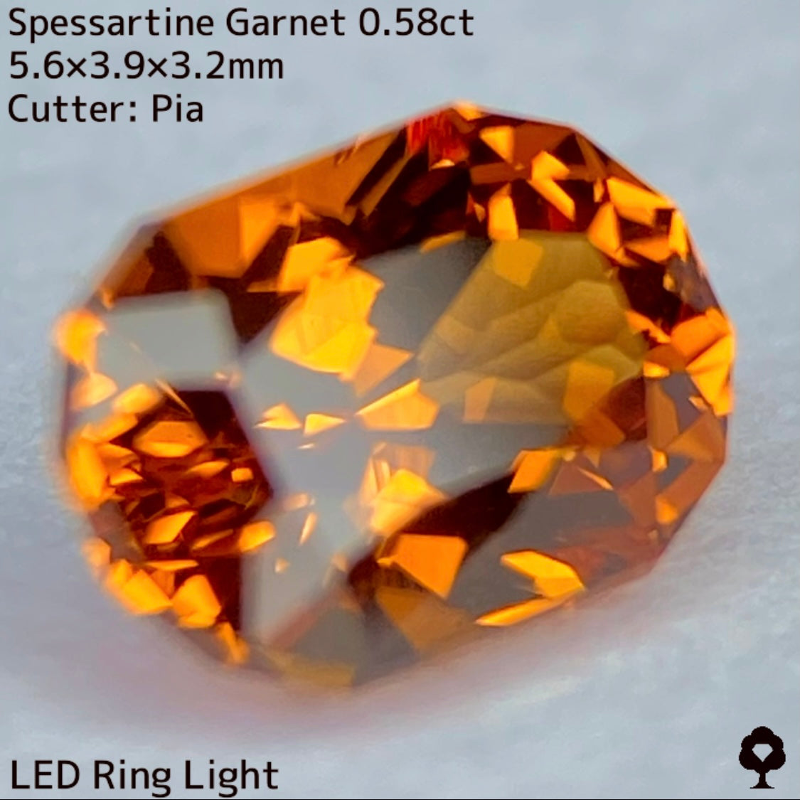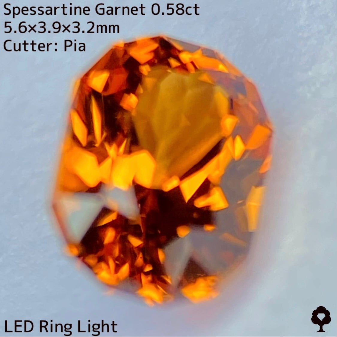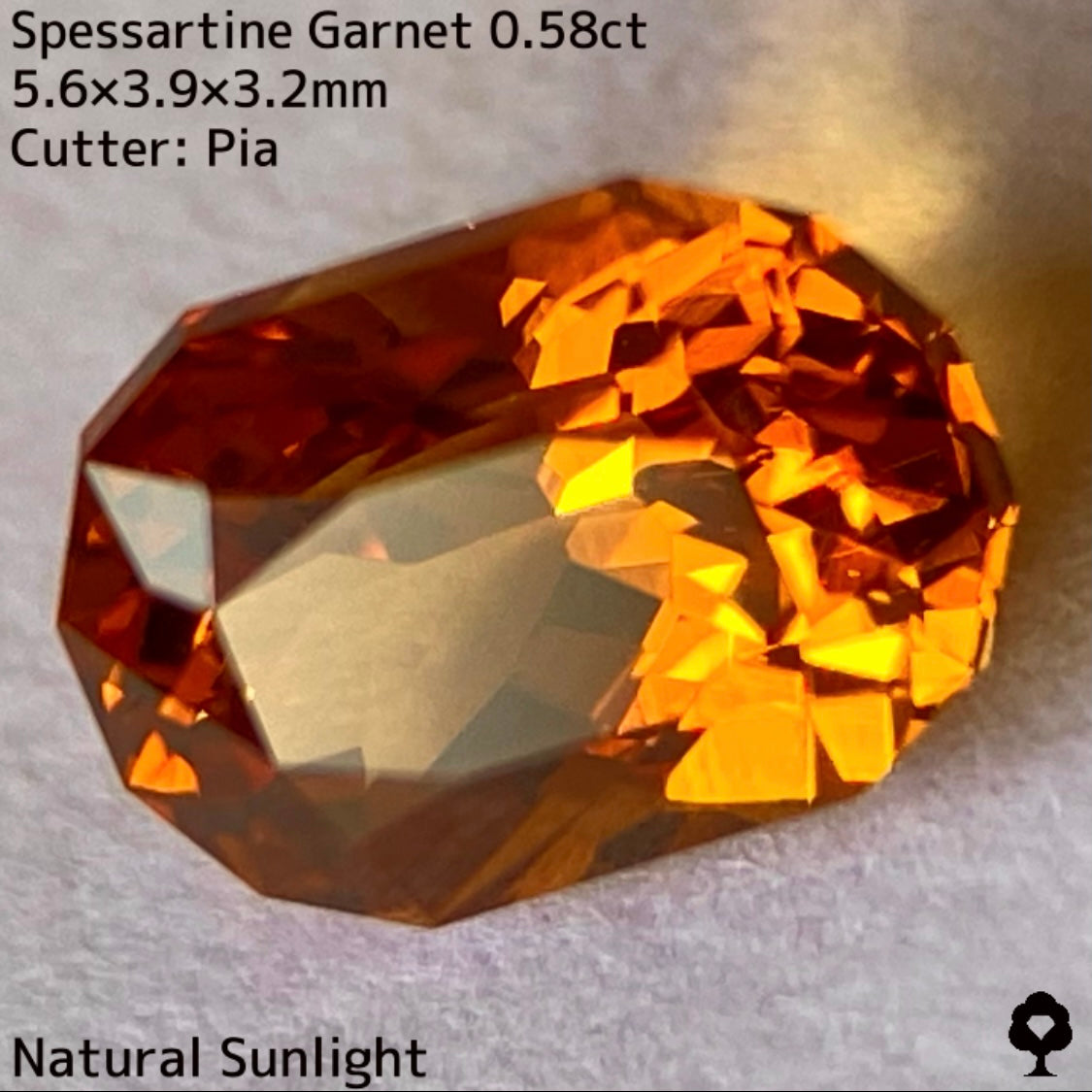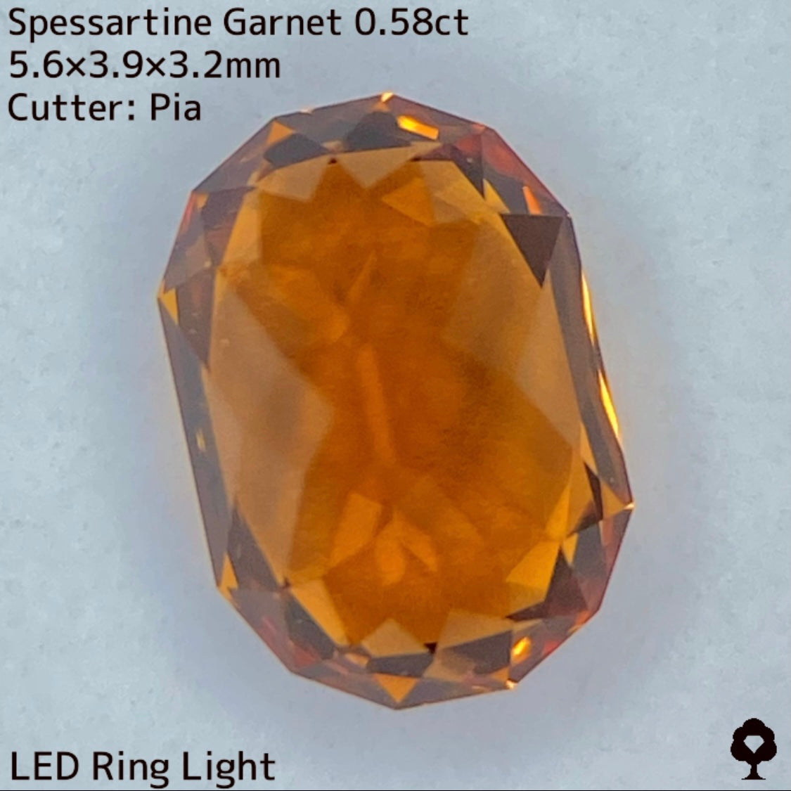 ガーネットの中でも内包物の入りやすいスペサタイトガーネットですが、こちらの作品は目立つ内包物の無い美しい結晶で、冴えのある彩度の高いオレンジ色が元気を与えてくれる、高品質な一石です。