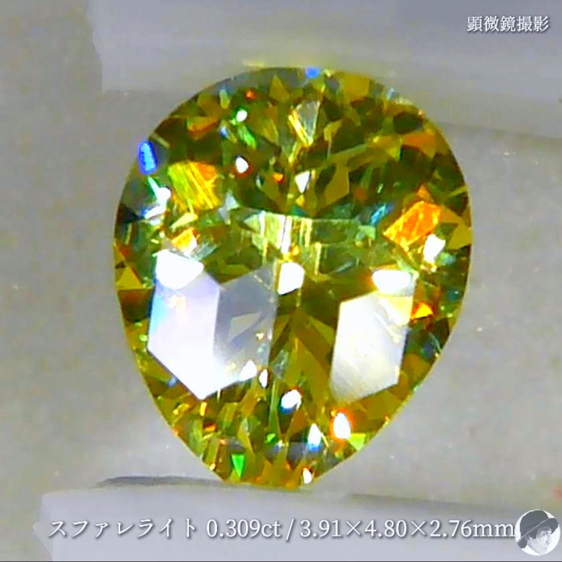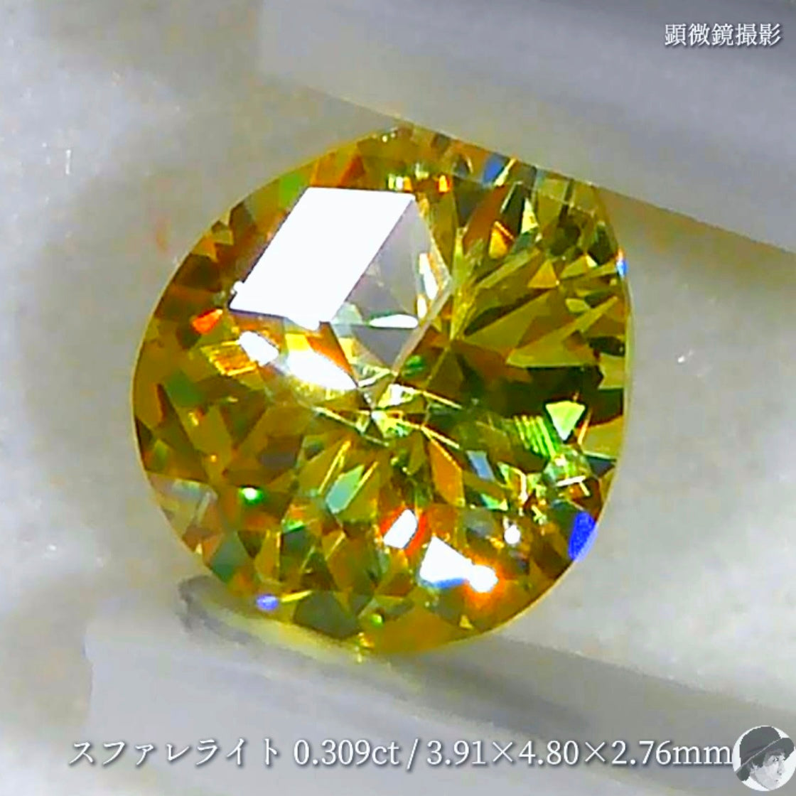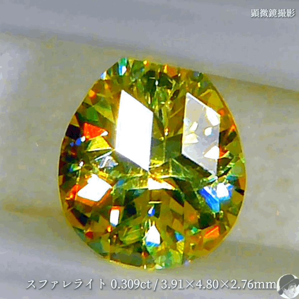 スファレライトの特性を発揮したカラフルな輝きは強い光を必要とせず、ルースケース越しにも眩ゆいほどです。