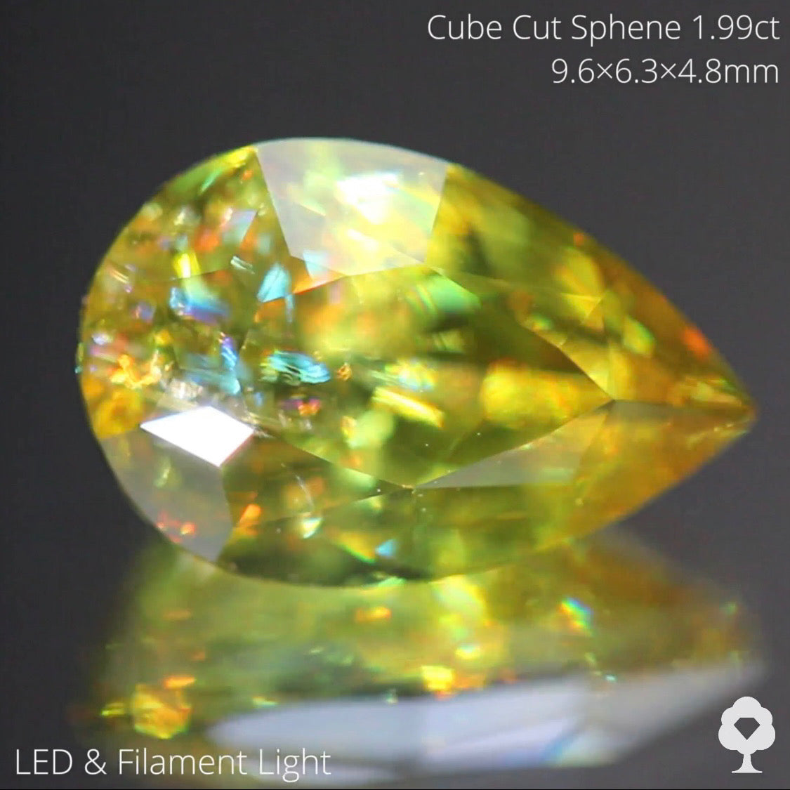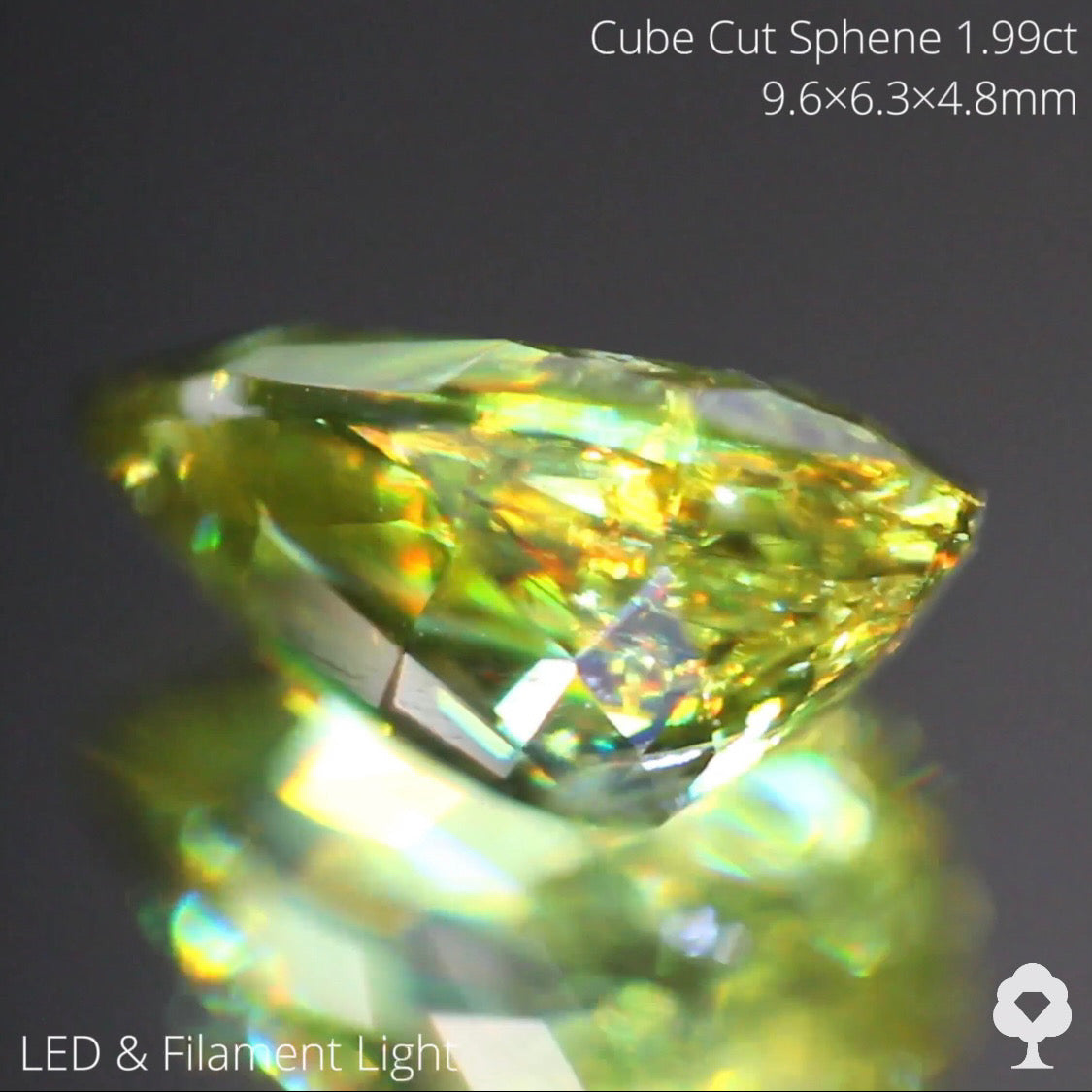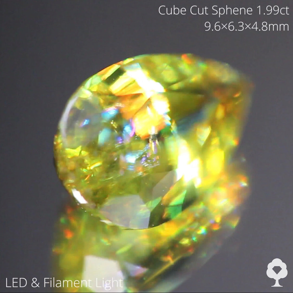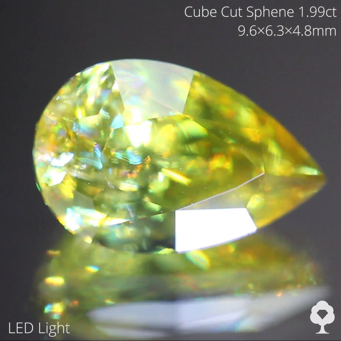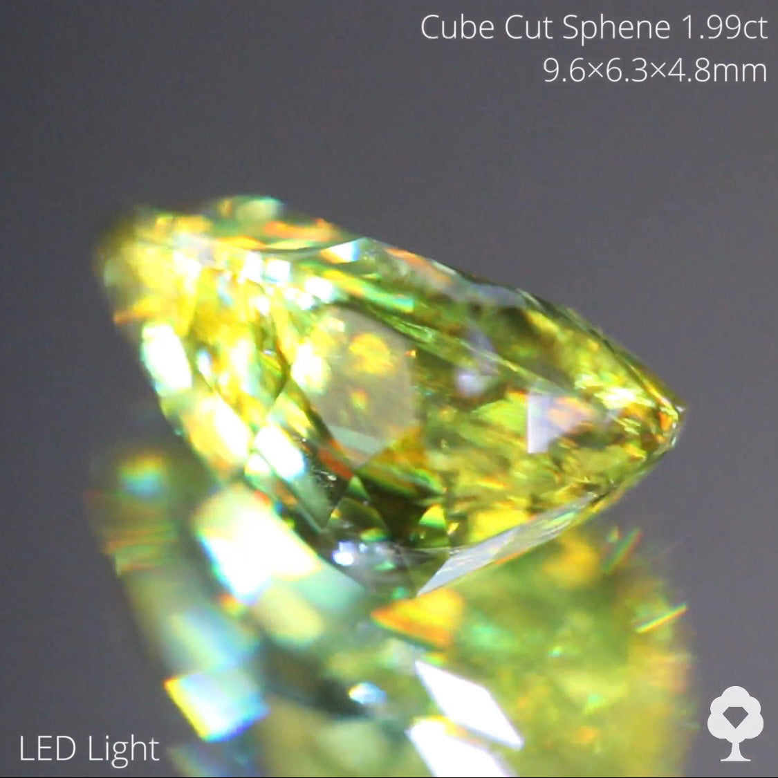 【SOLD OUT】★GTJ本店特別価格★【変則キューブカット】と美しすぎる虹インクルのギラギラスフェーン★スフェーン1.99ct ゲオちゃん作品ルース