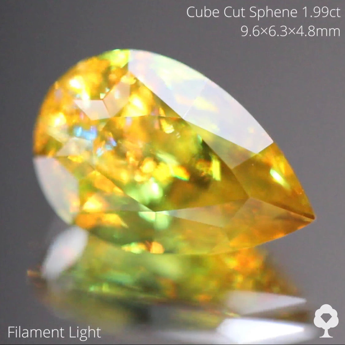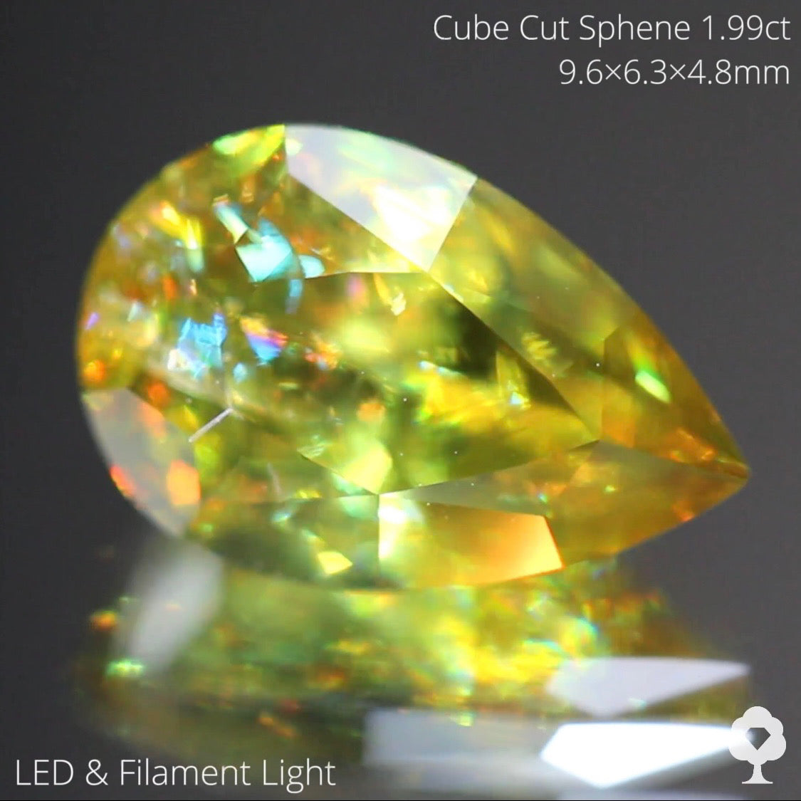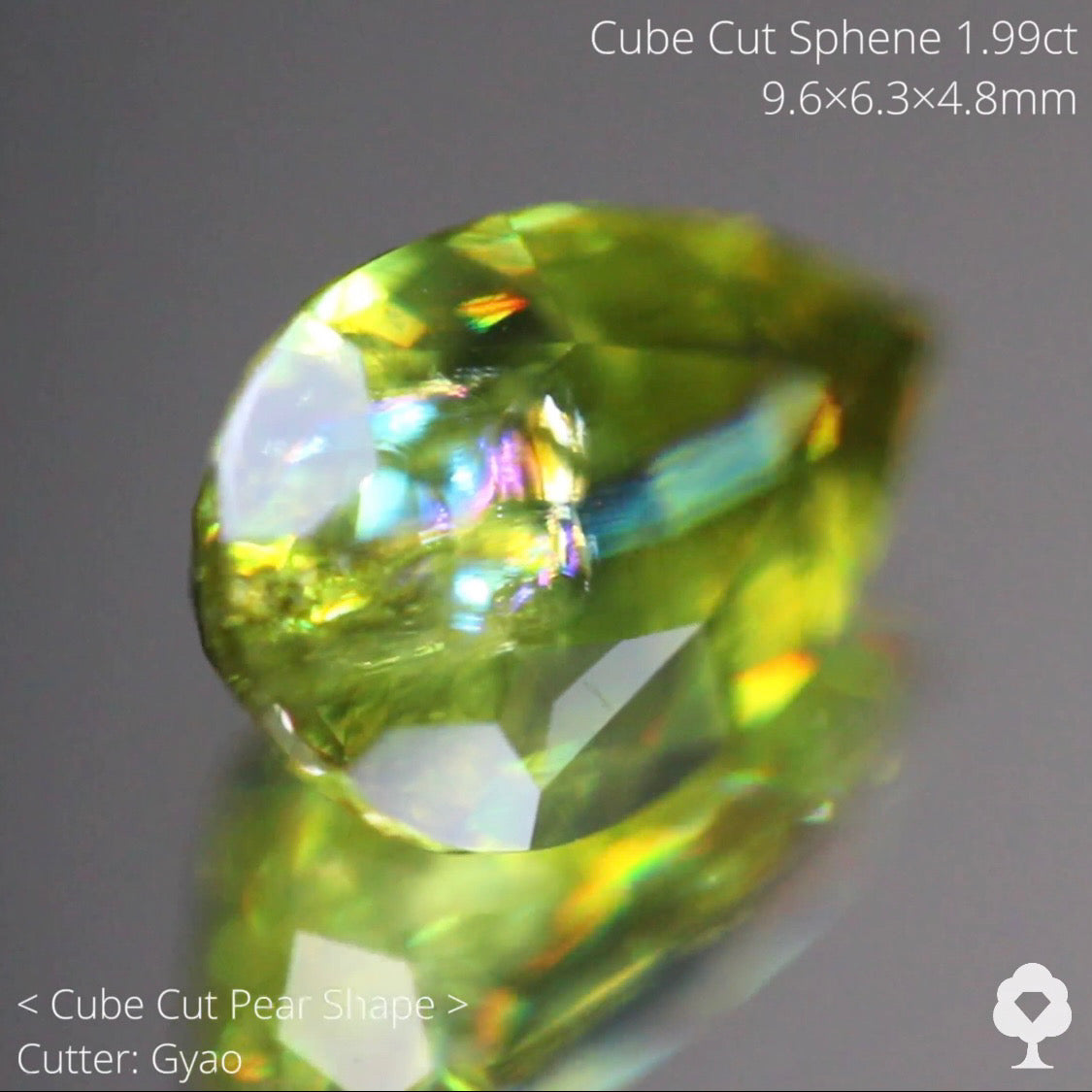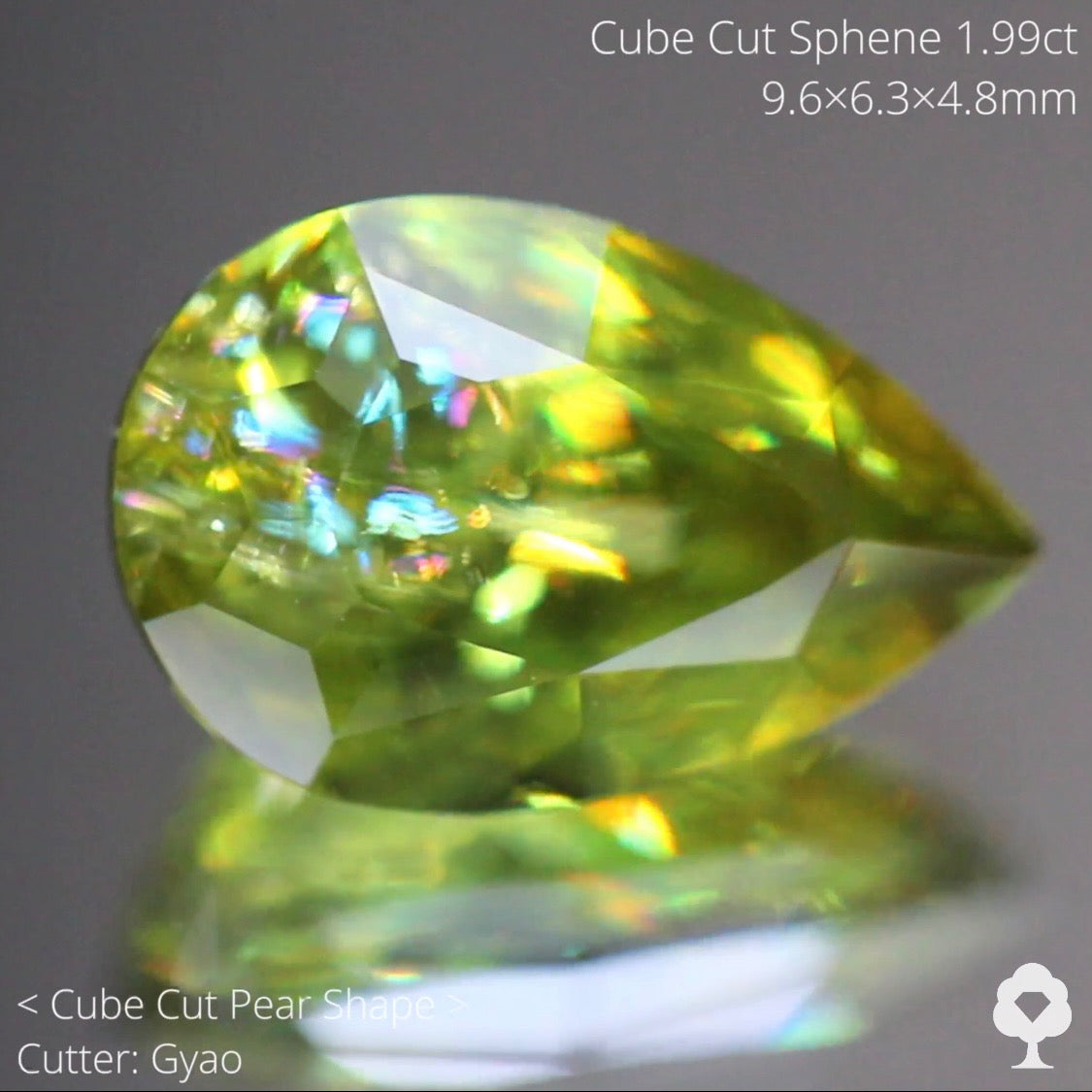 【SOLD OUT】★GTJ本店特別価格★【変則キューブカット】と美しすぎる虹インクルのギラギラスフェーン★スフェーン1.99ct ゲオちゃん作品ルース