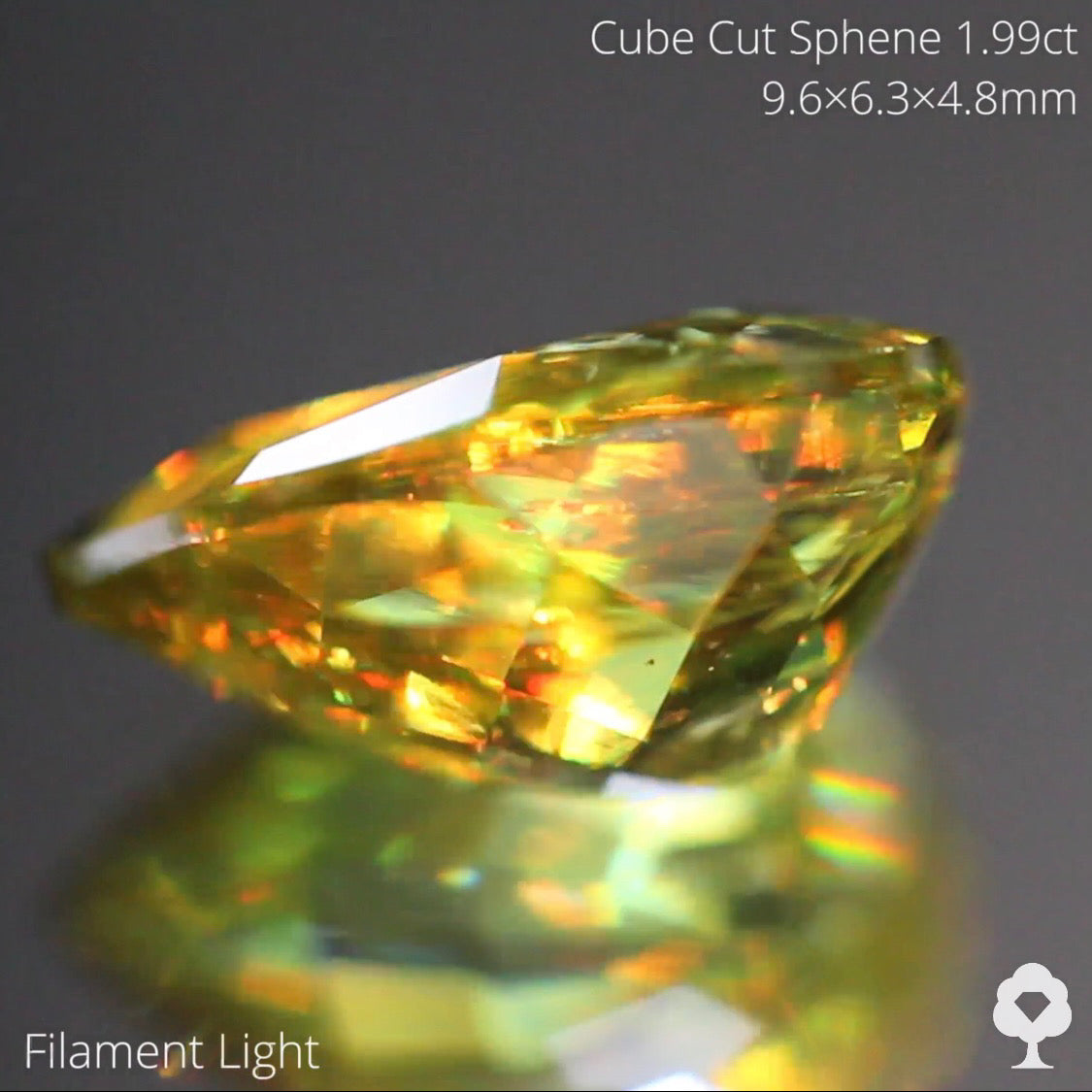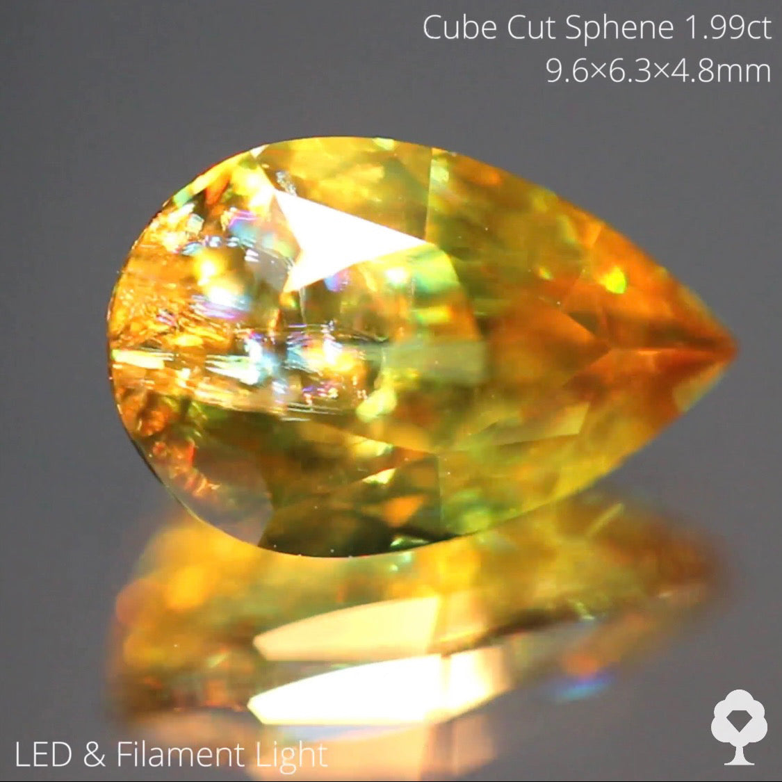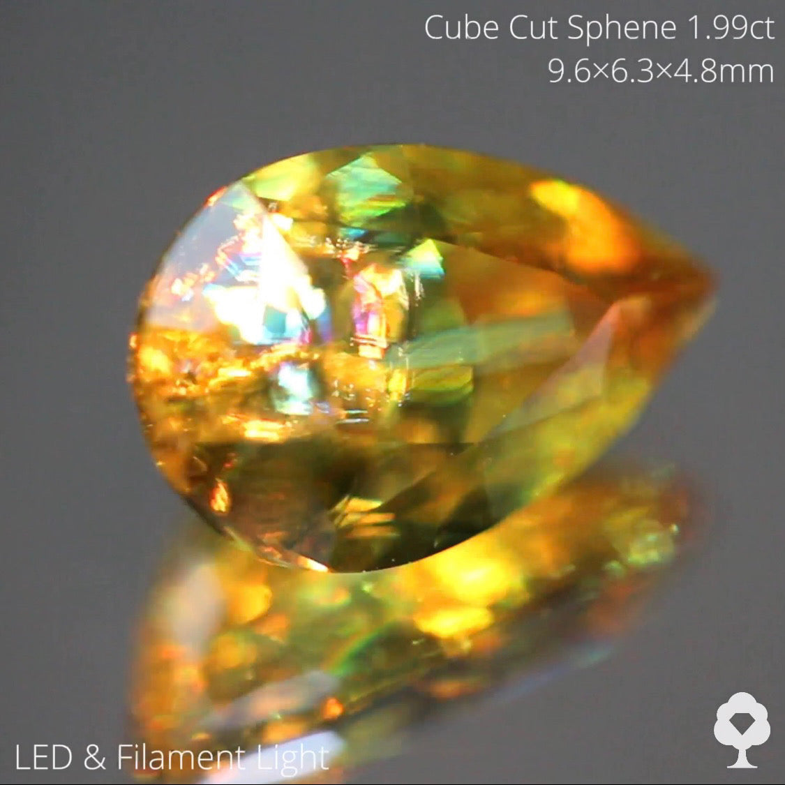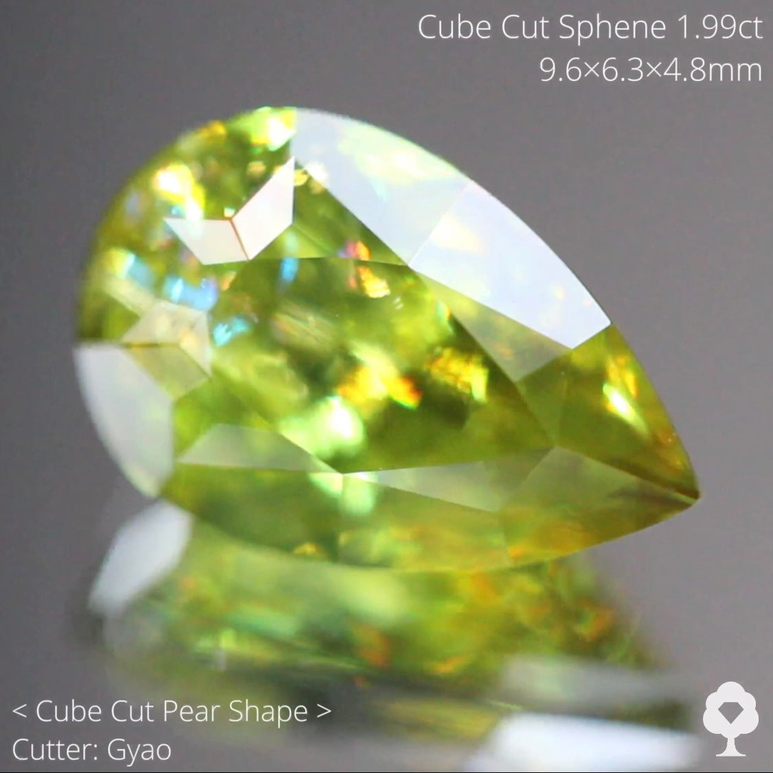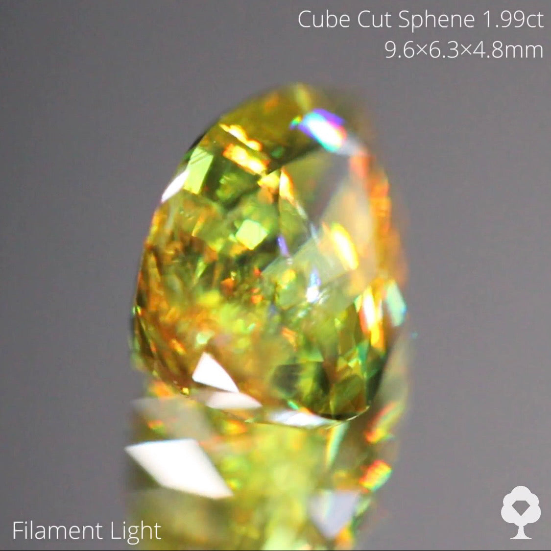【SOLD OUT】★GTJ本店特別価格★【変則キューブカット】と美しすぎる虹インクルのギラギラスフェーン★スフェーン1.99ct ゲオちゃん作品ルース