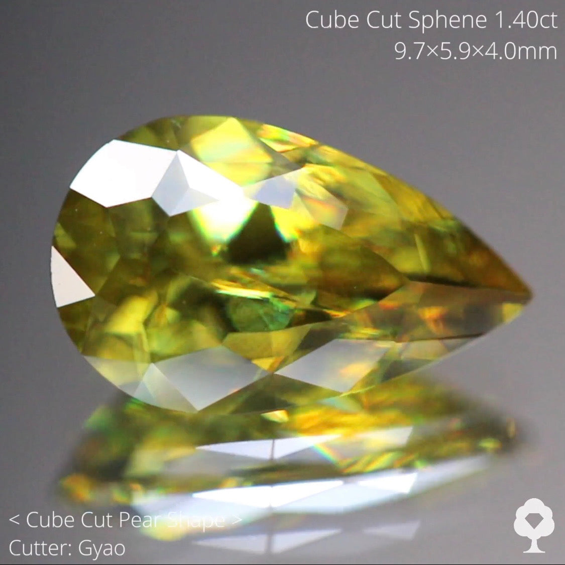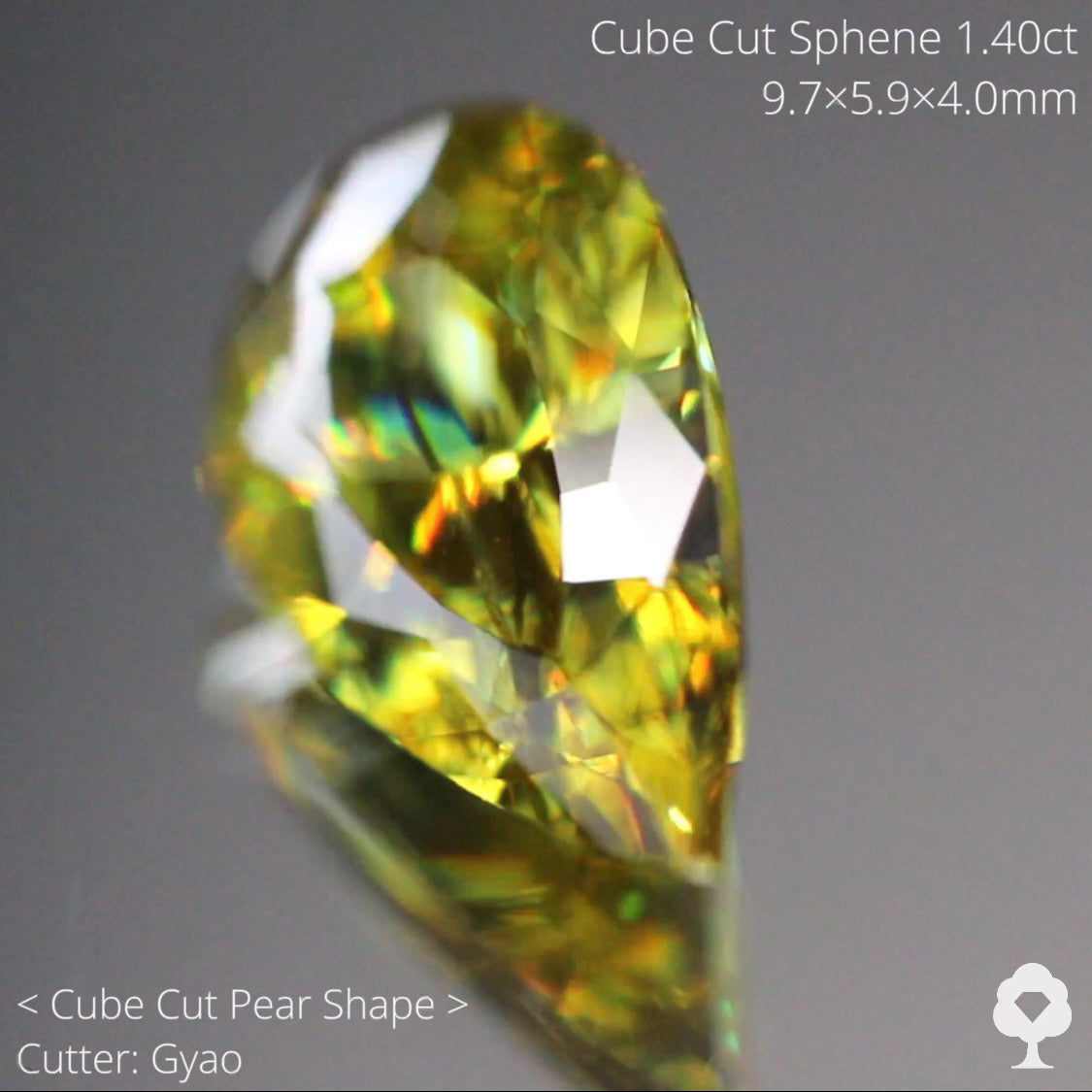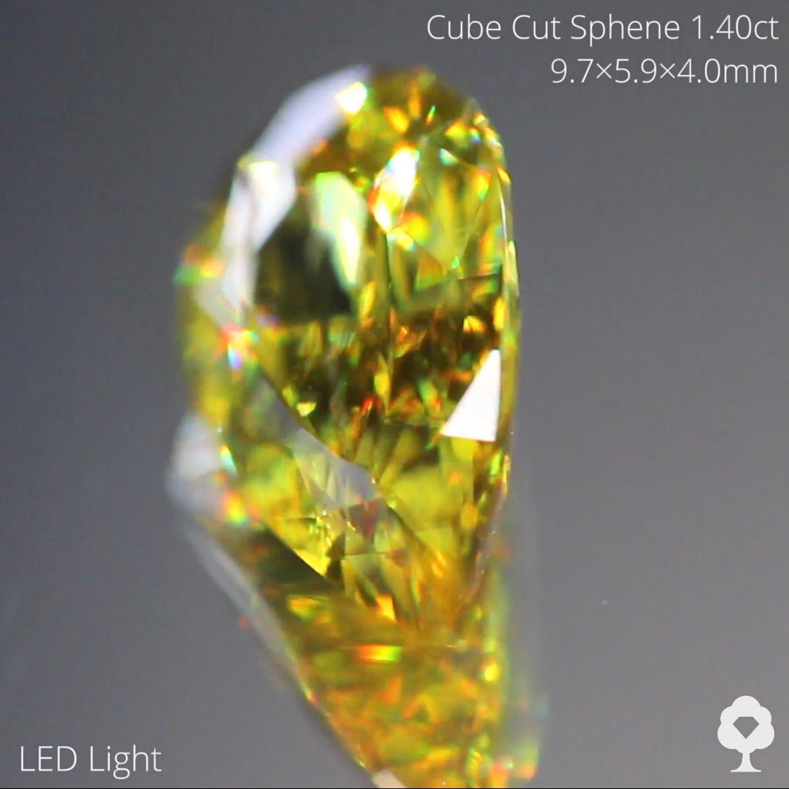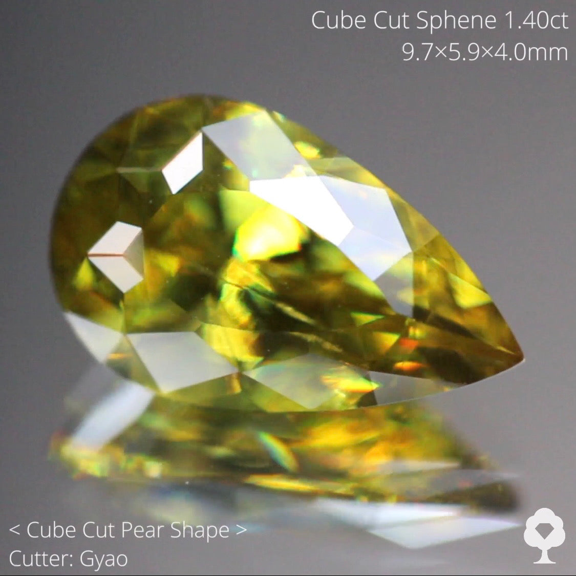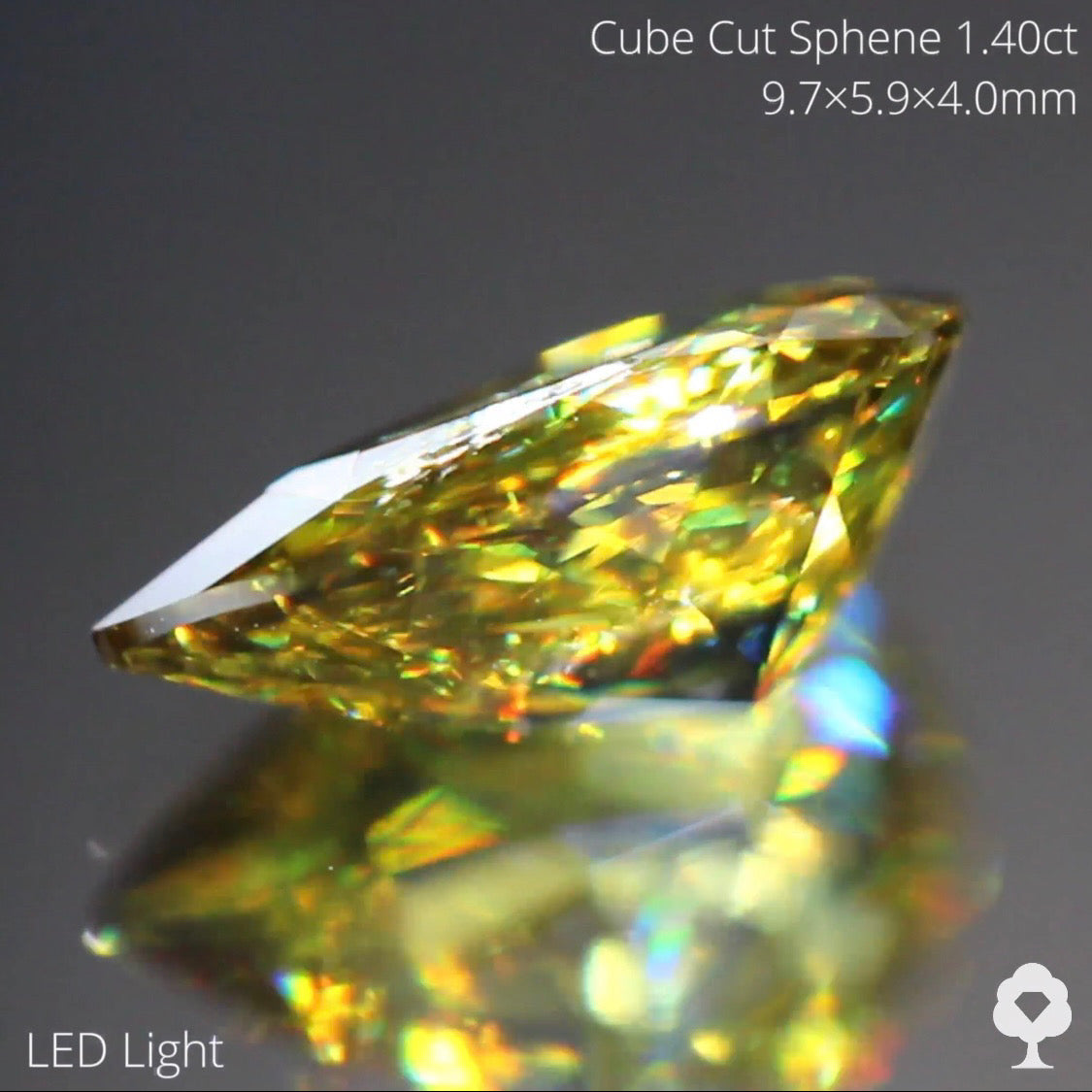 【SOLD OUT】キューブカット進化版【変則キューブ】とGTJの18番ギラギラスフェーンの共演★スフェーン1.40ct ゲオちゃん作品ルース