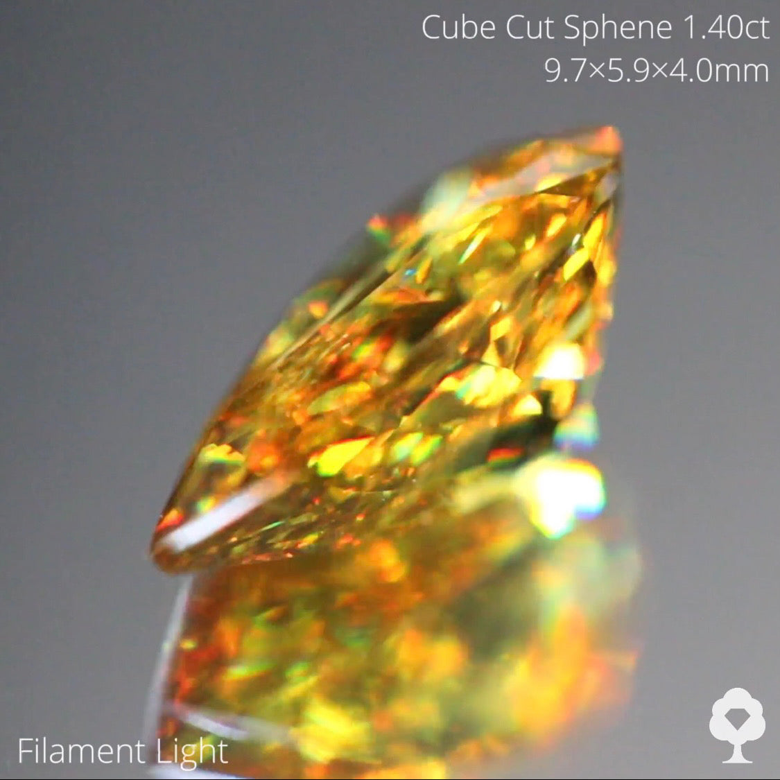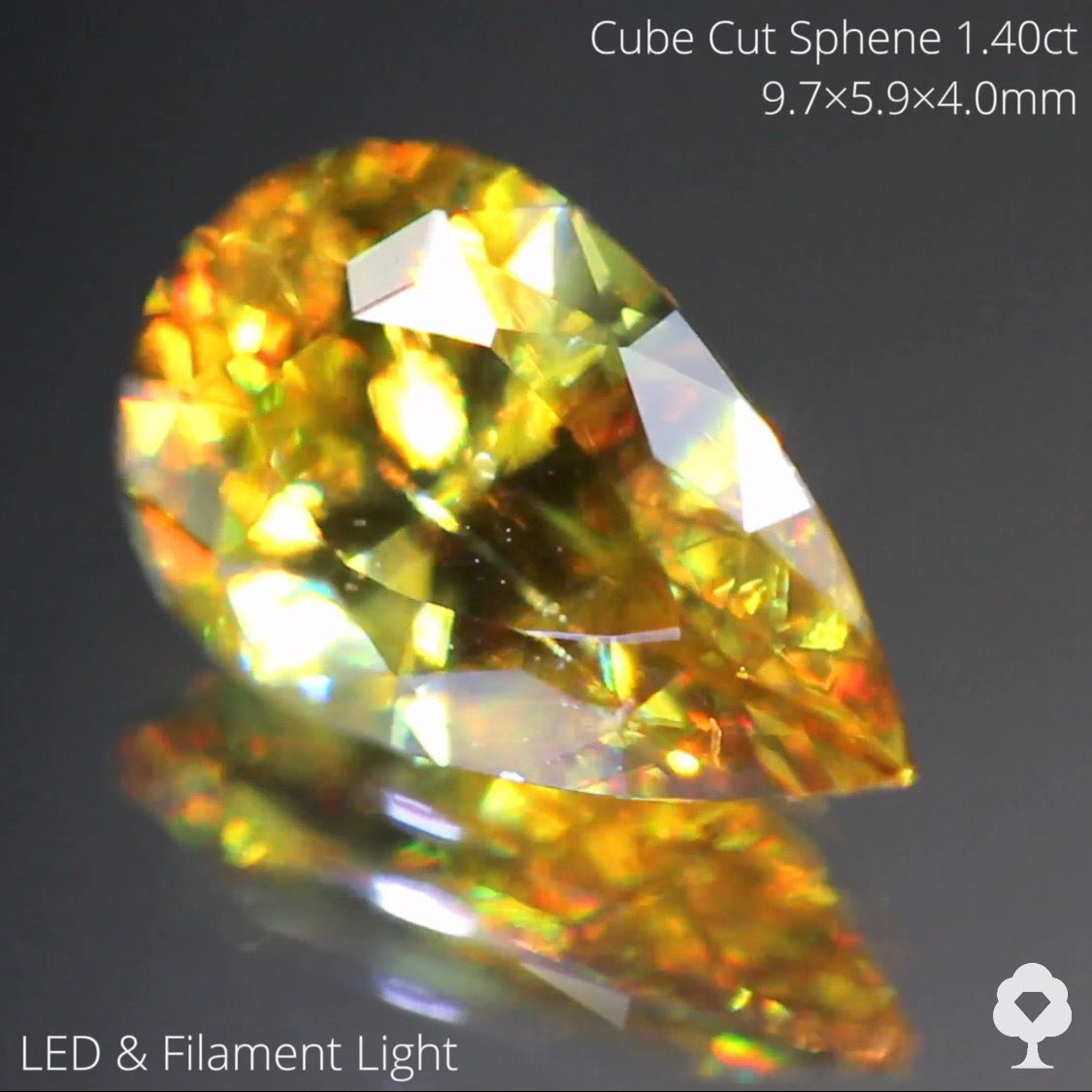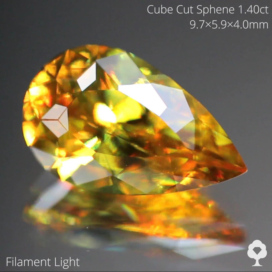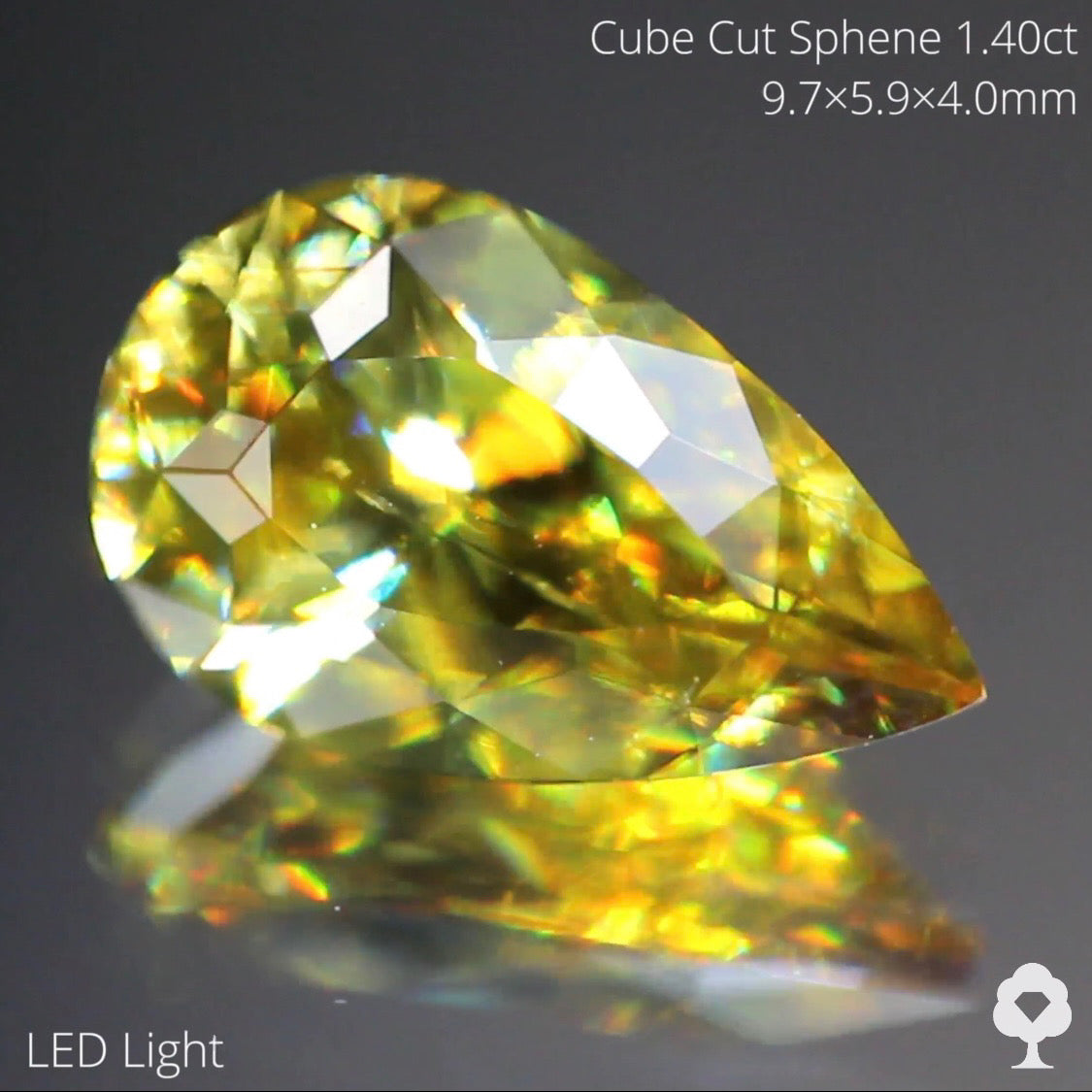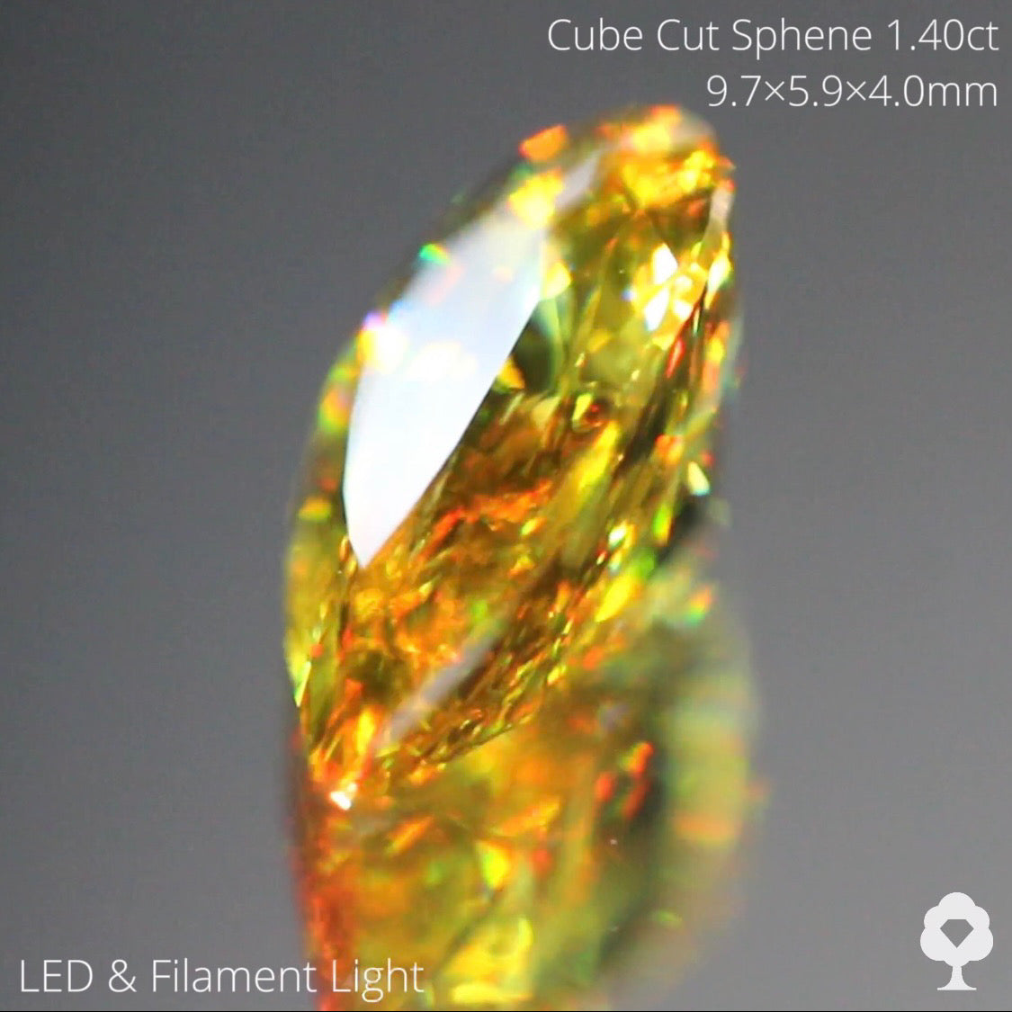 【SOLD OUT】キューブカット進化版【変則キューブ】とGTJの18番ギラギラスフェーンの共演★スフェーン1.40ct ゲオちゃん作品ルース