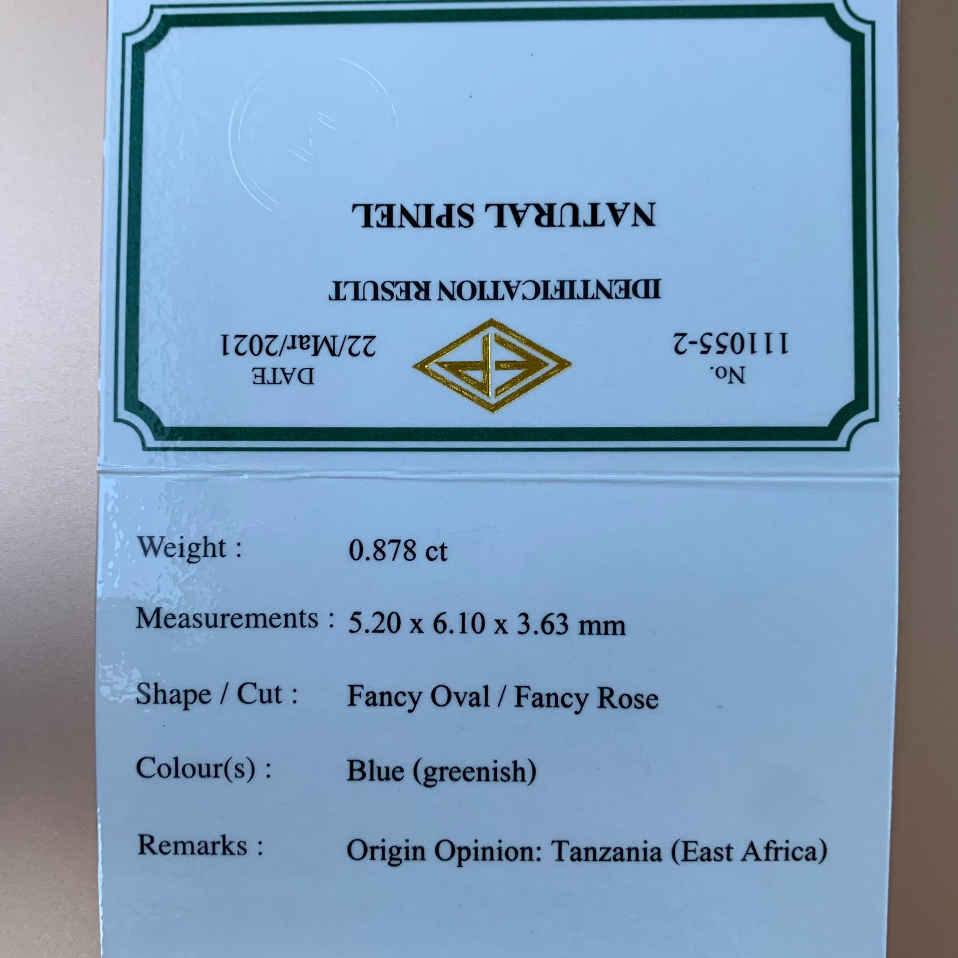 スピネルでは希少な、明るいグリニッシュブルーの美色。光源によってブルーとグリーンの色味の割合・印象が変わる面白い作品です。