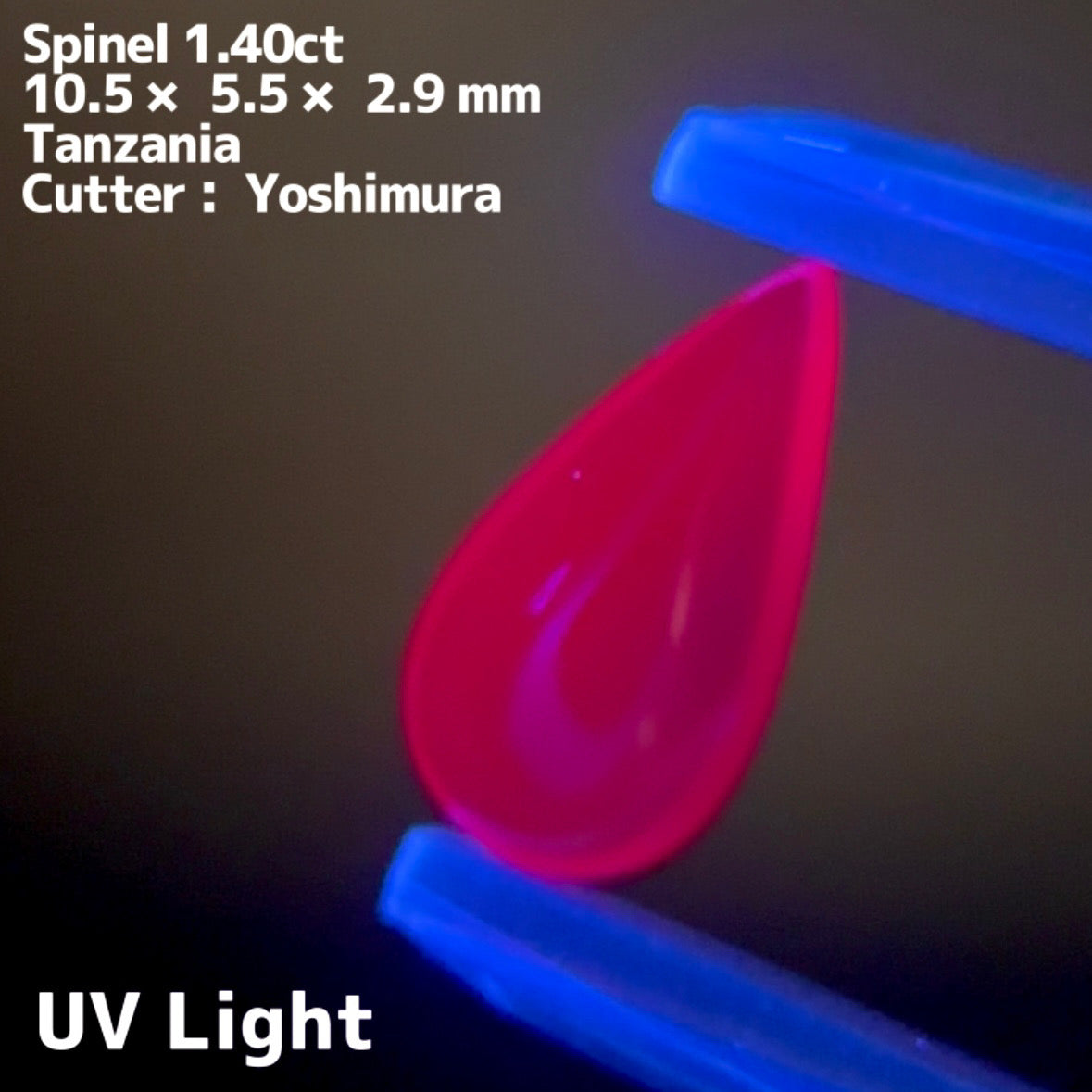 スピネルのカボションというだけでも珍しいですが、こちらはラベルの仕入職人メモに【激UV】と書かれているほど、真っ赤に蛍光します。