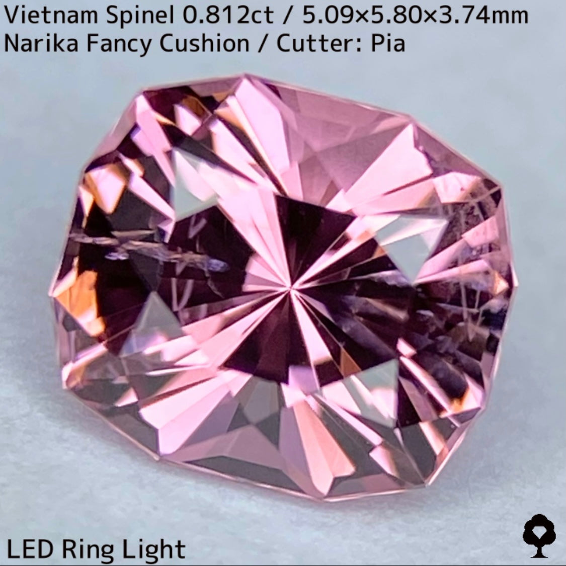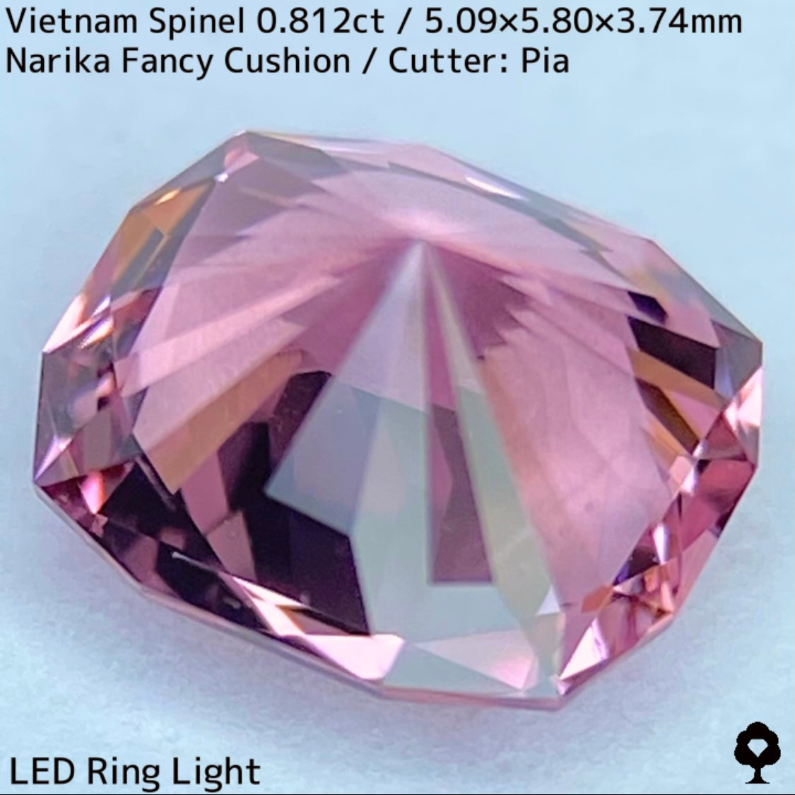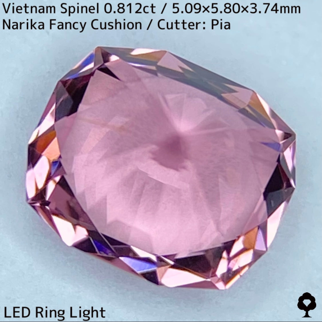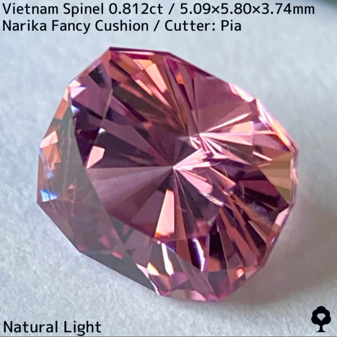 ベトナム産スピネル0.812ct★原石からつくりあげた柔らかなパープリッシュピンクの煌めき抜群ナリカーファンシークッション