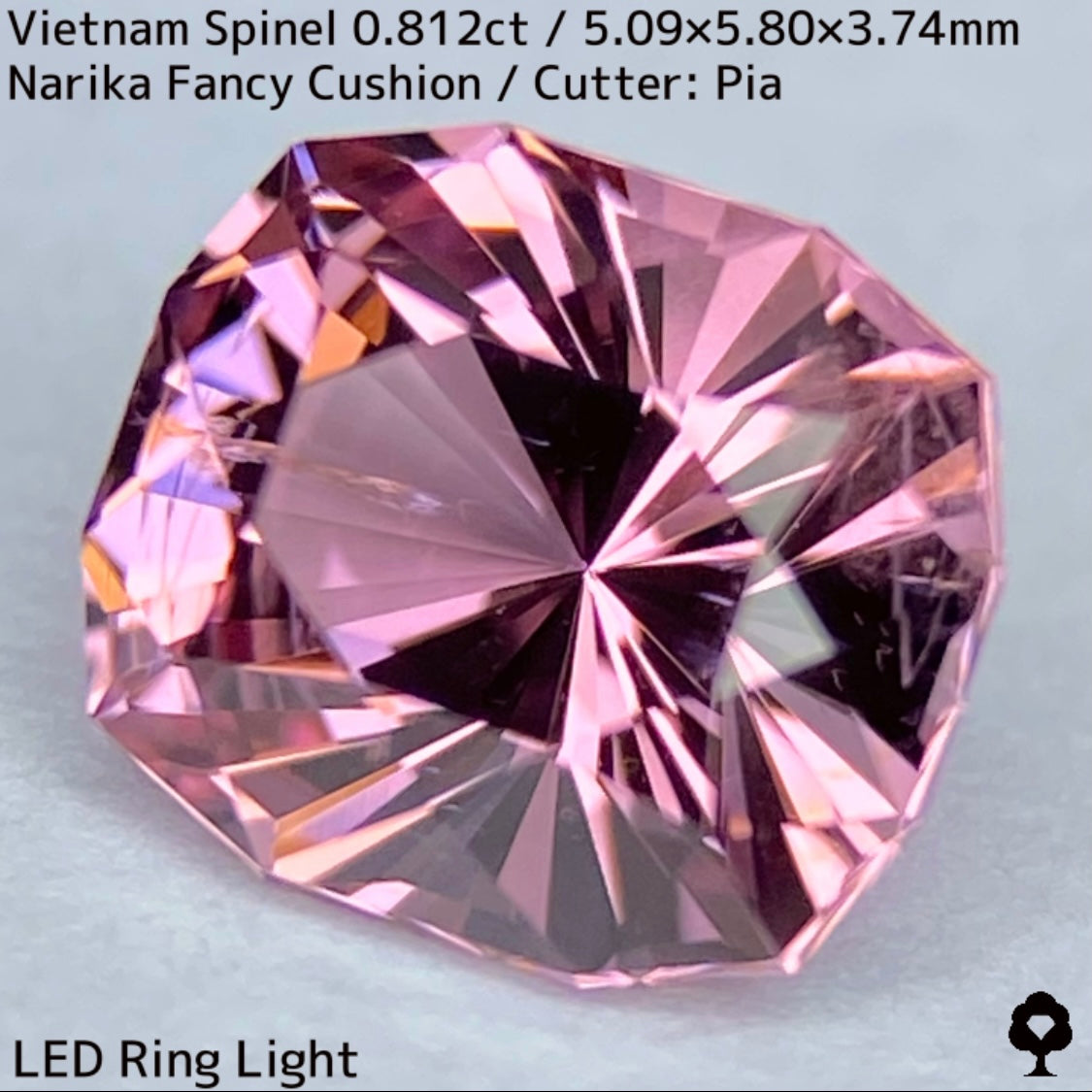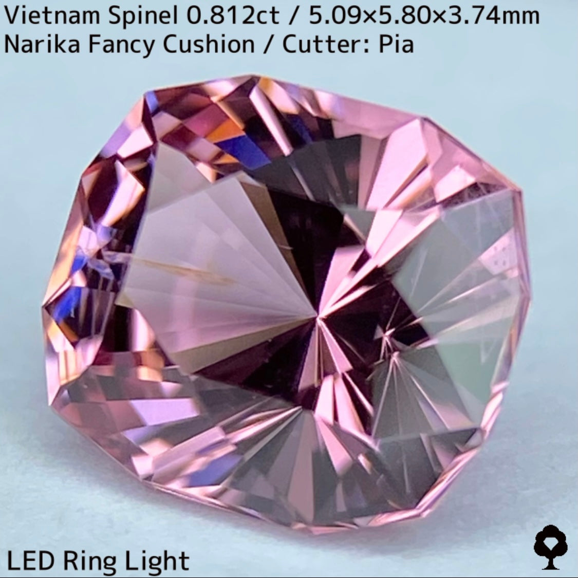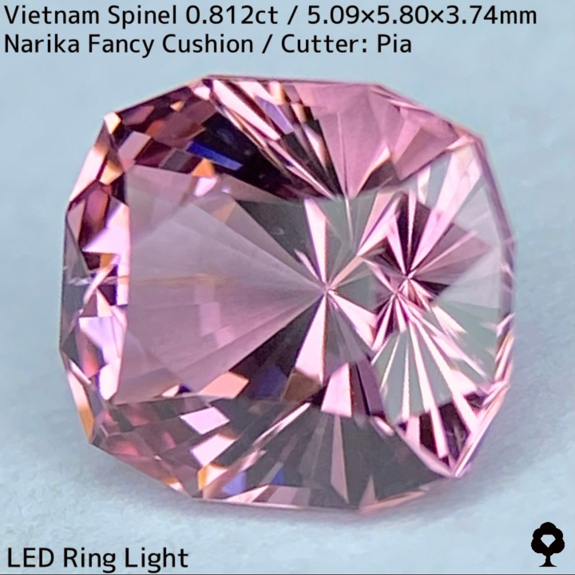 ベトナム産スピネル0.812ct★原石からつくりあげた柔らかなパープリッシュピンクの煌めき抜群ナリカーファンシークッション