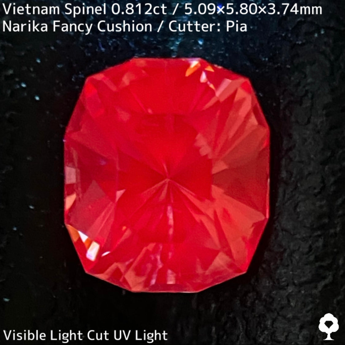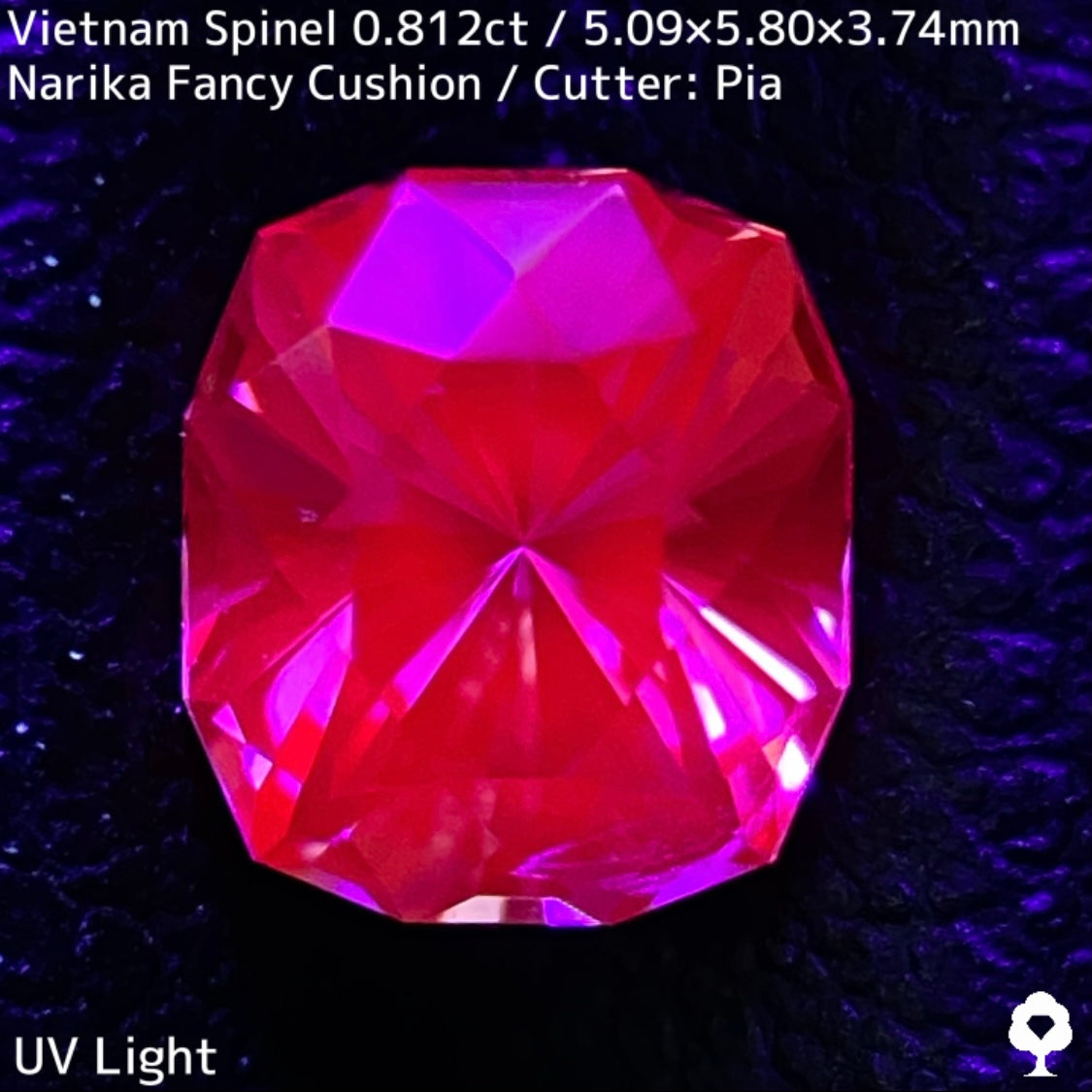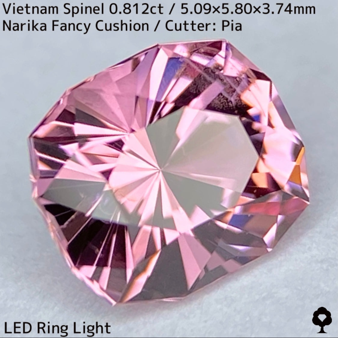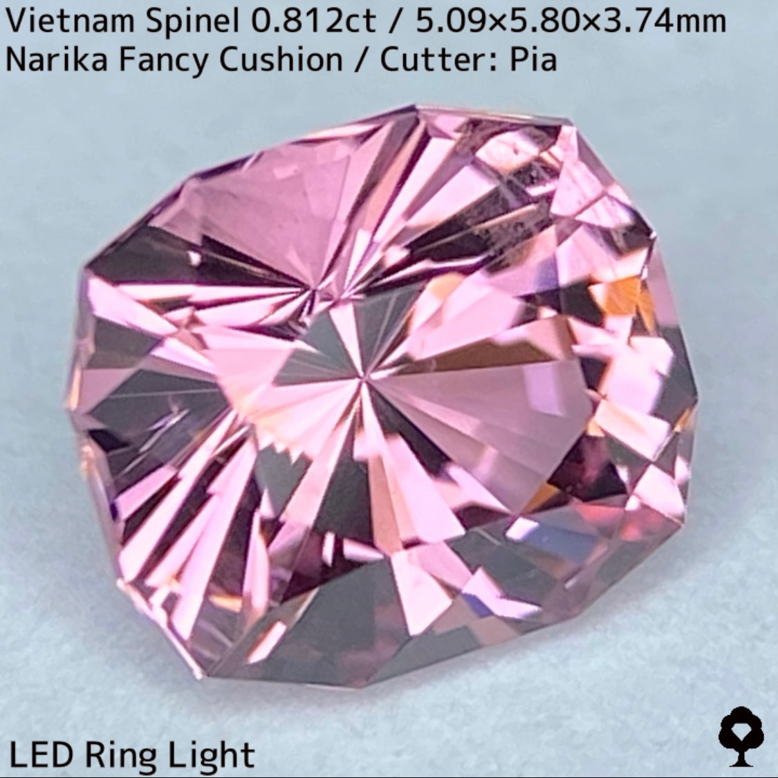 ベトナム産スピネル0.812ct★原石からつくりあげた柔らかなパープリッシュピンクの煌めき抜群ナリカーファンシークッション