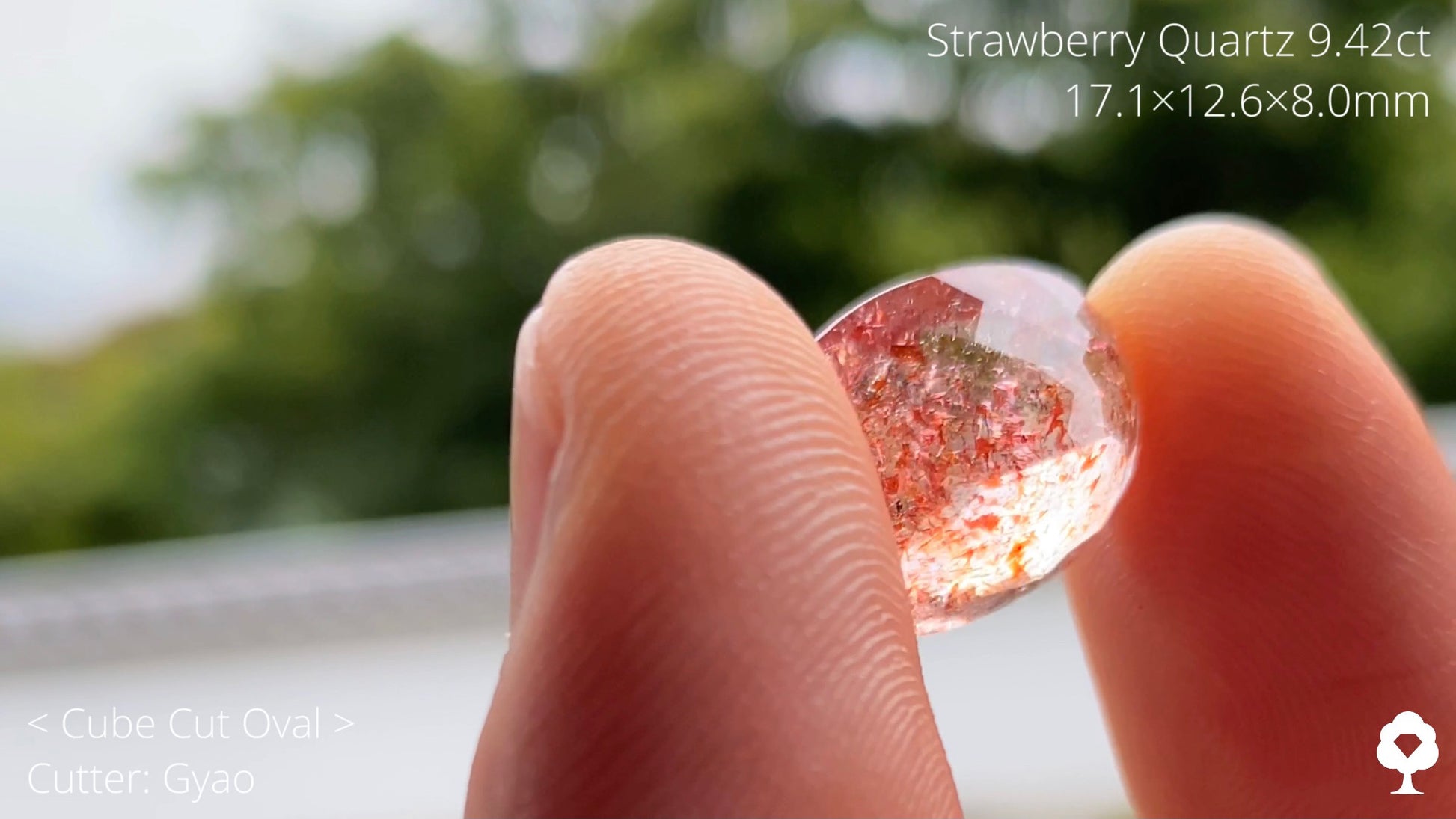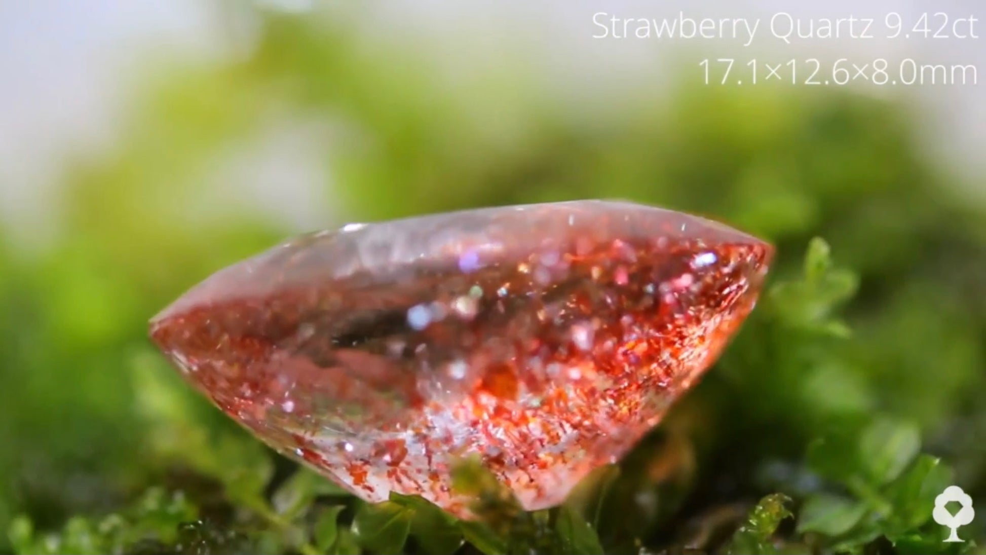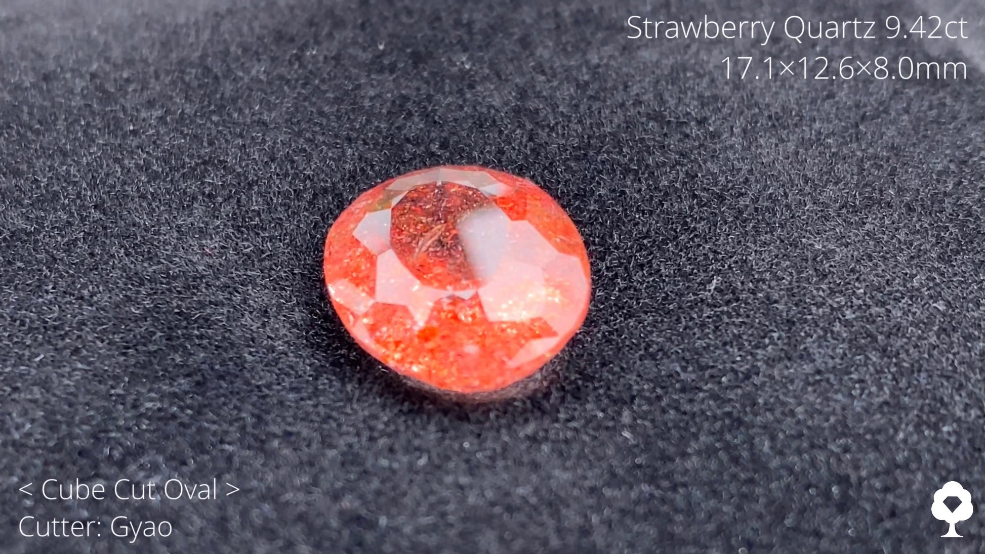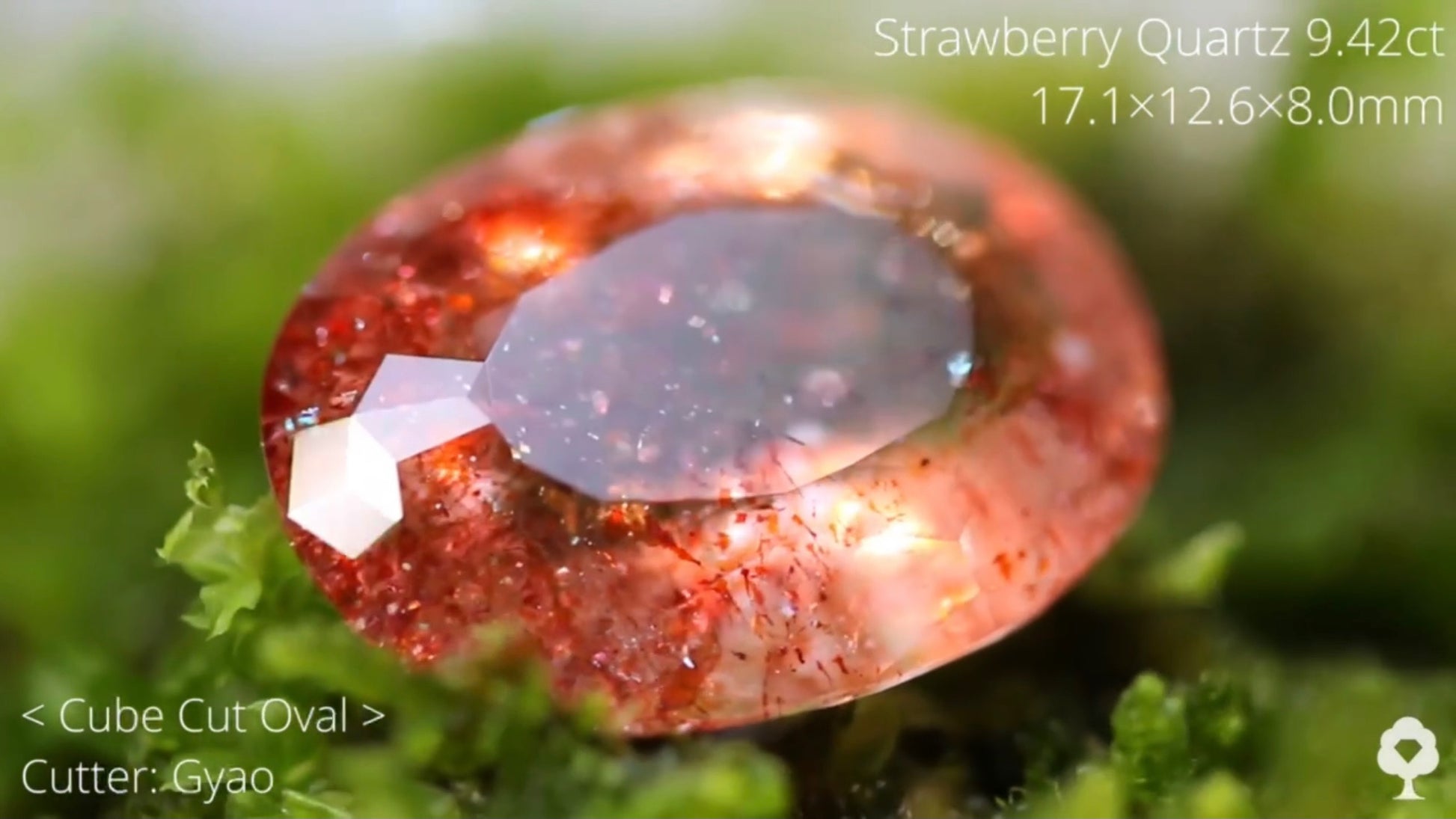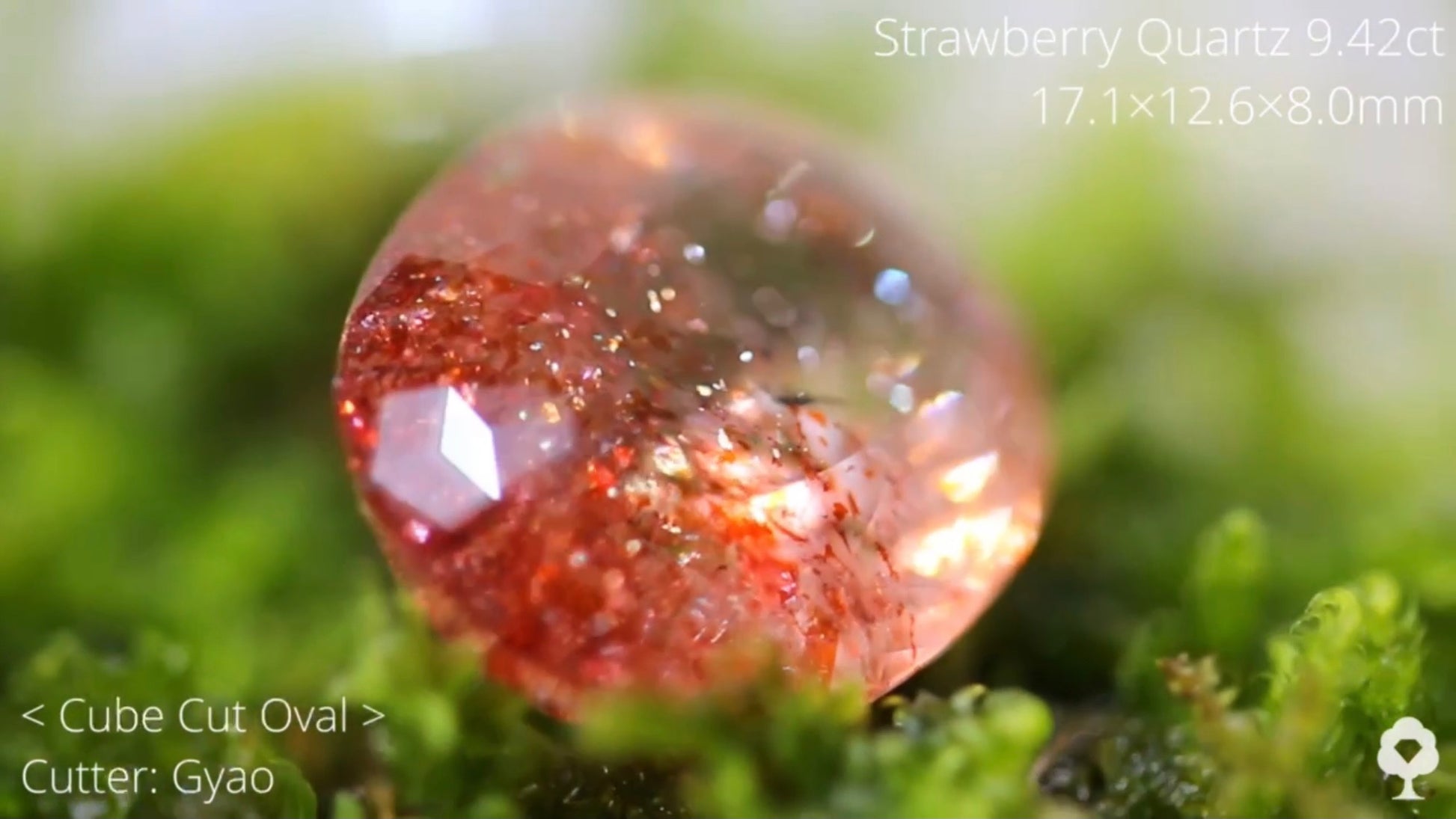 【22:00終了】凄まじいテリ・ツヤの【変則キューブカット】に封じ込まれた可愛らしいイチゴ★ストロベリークオーツ9.42ct