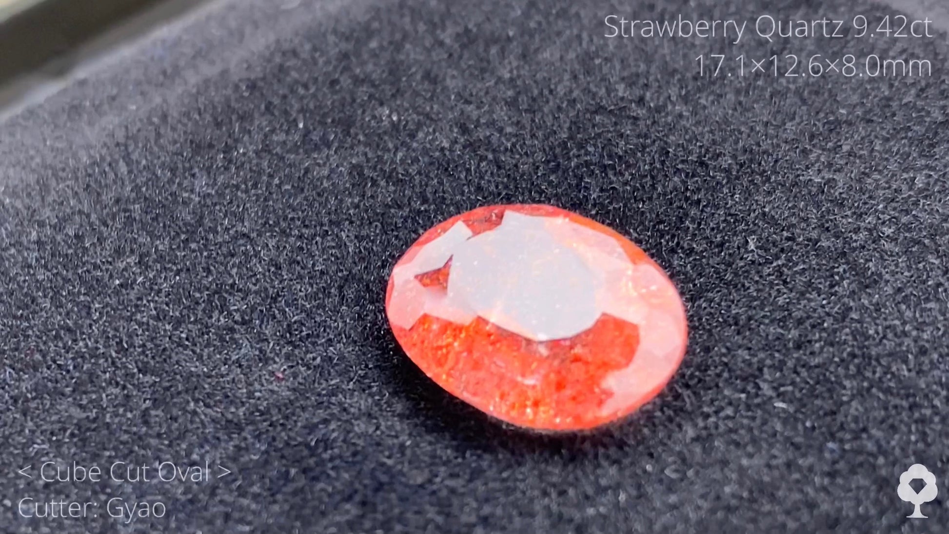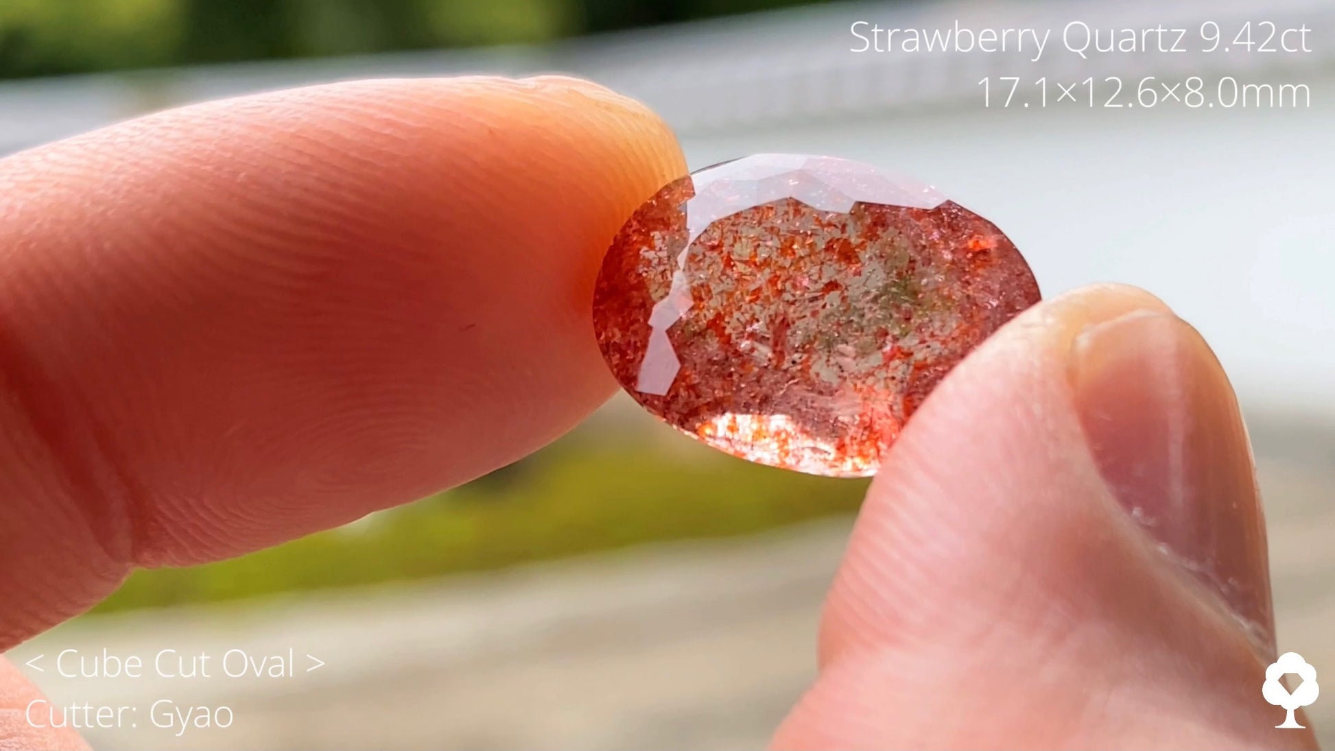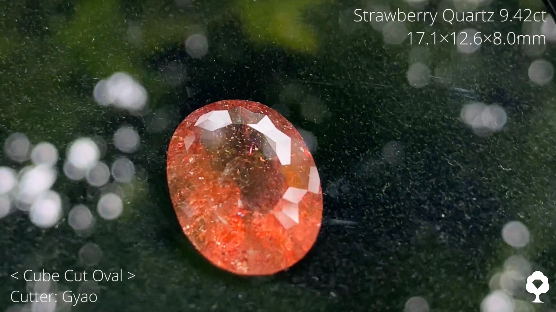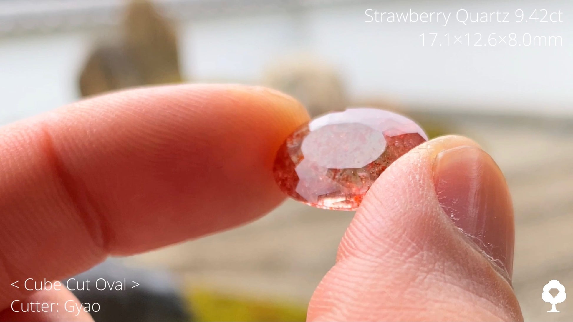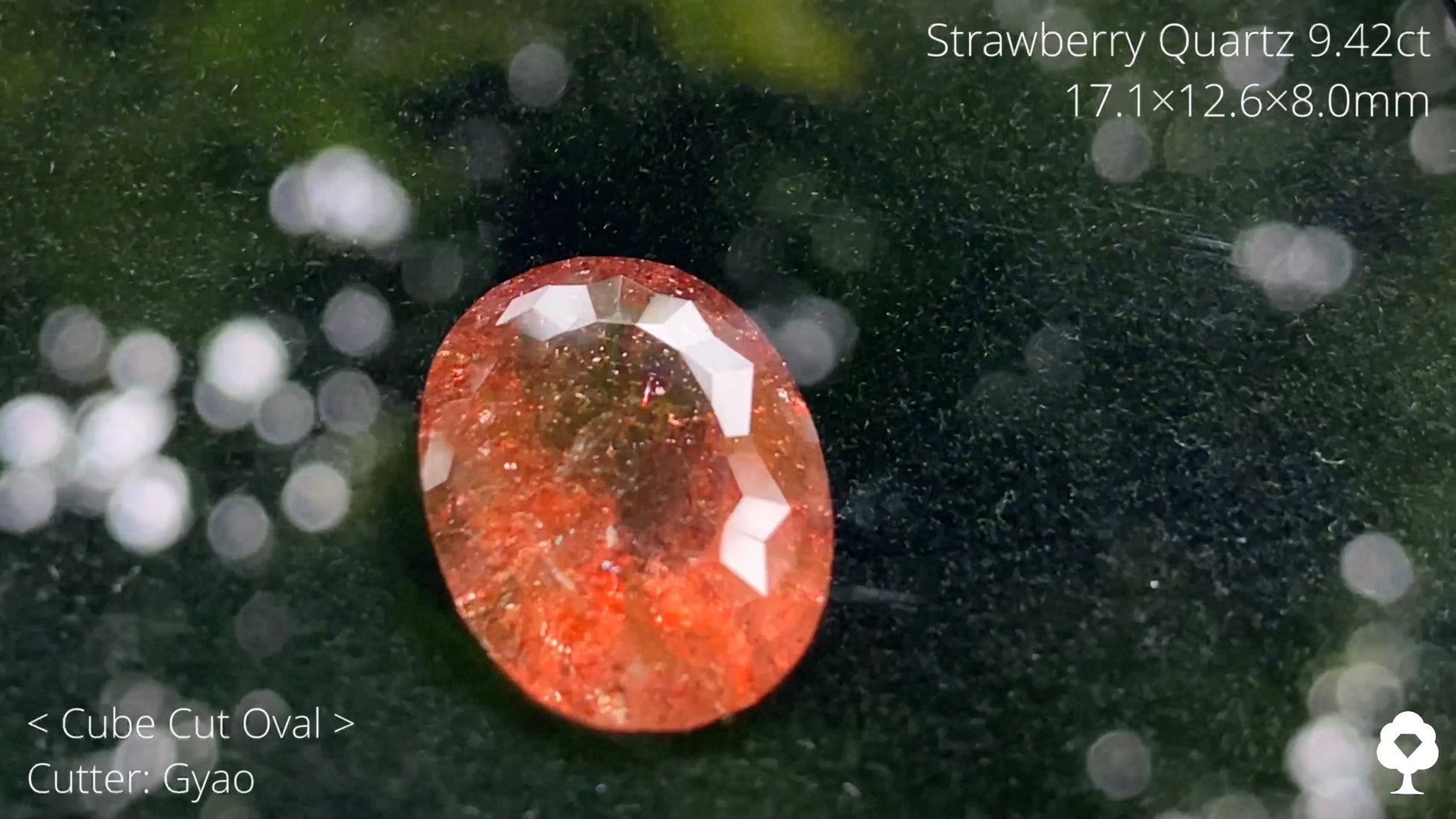 【22:00終了】凄まじいテリ・ツヤの【変則キューブカット】に封じ込まれた可愛らしいイチゴ★ストロベリークオーツ9.42ct