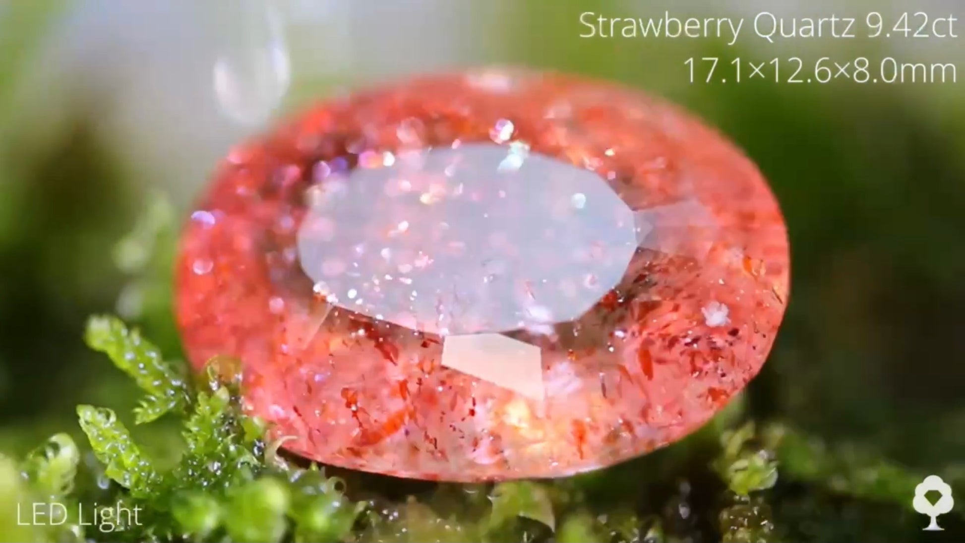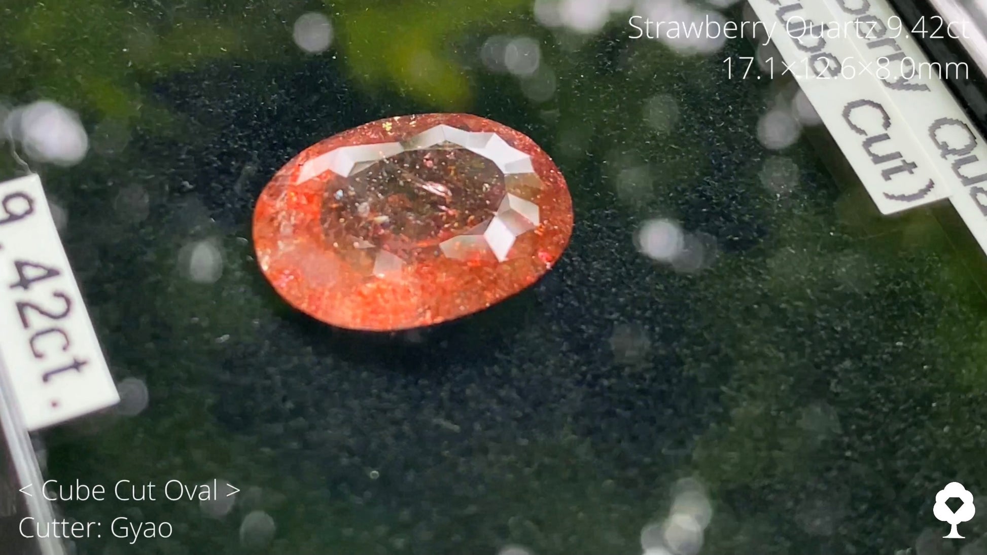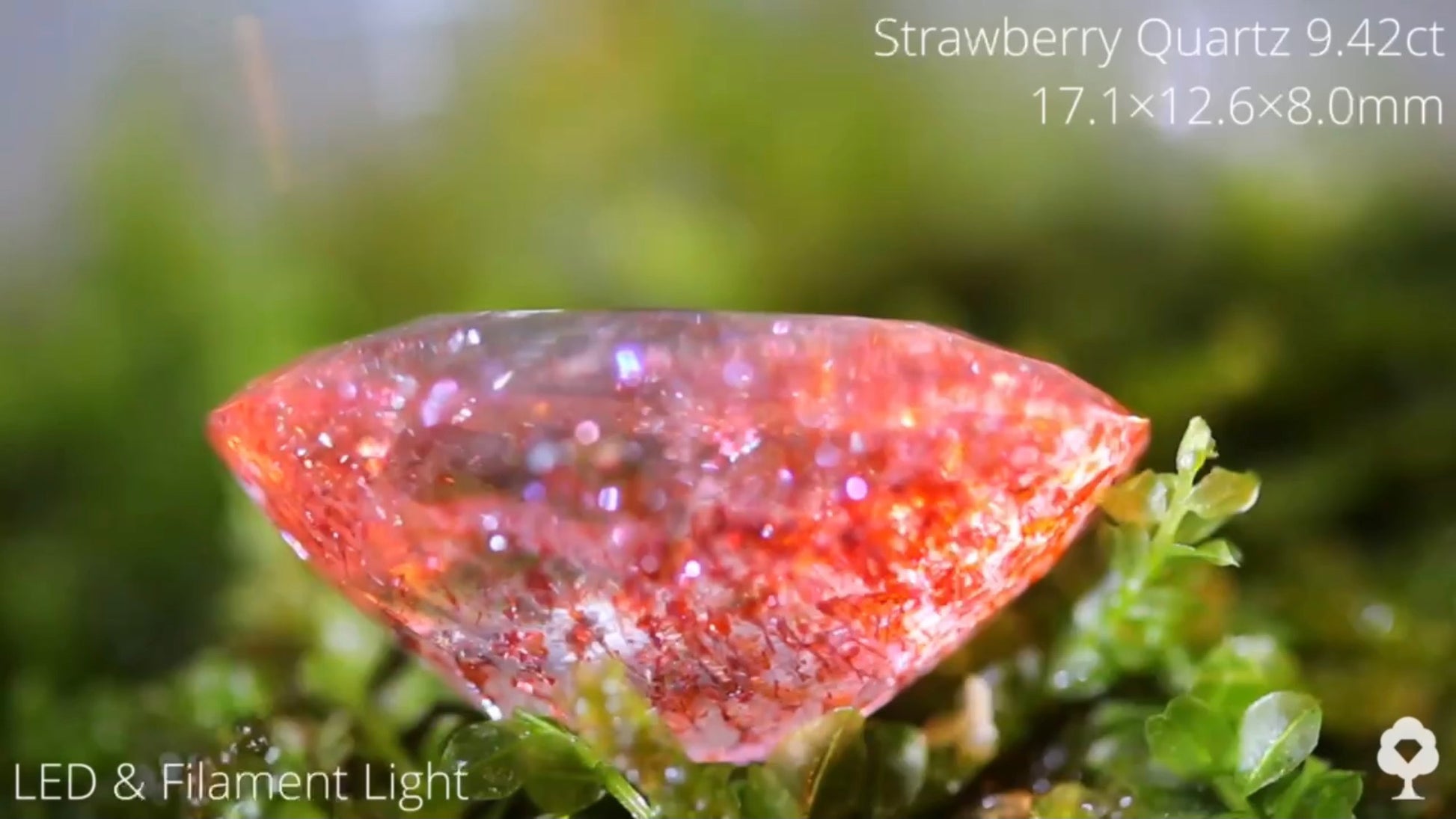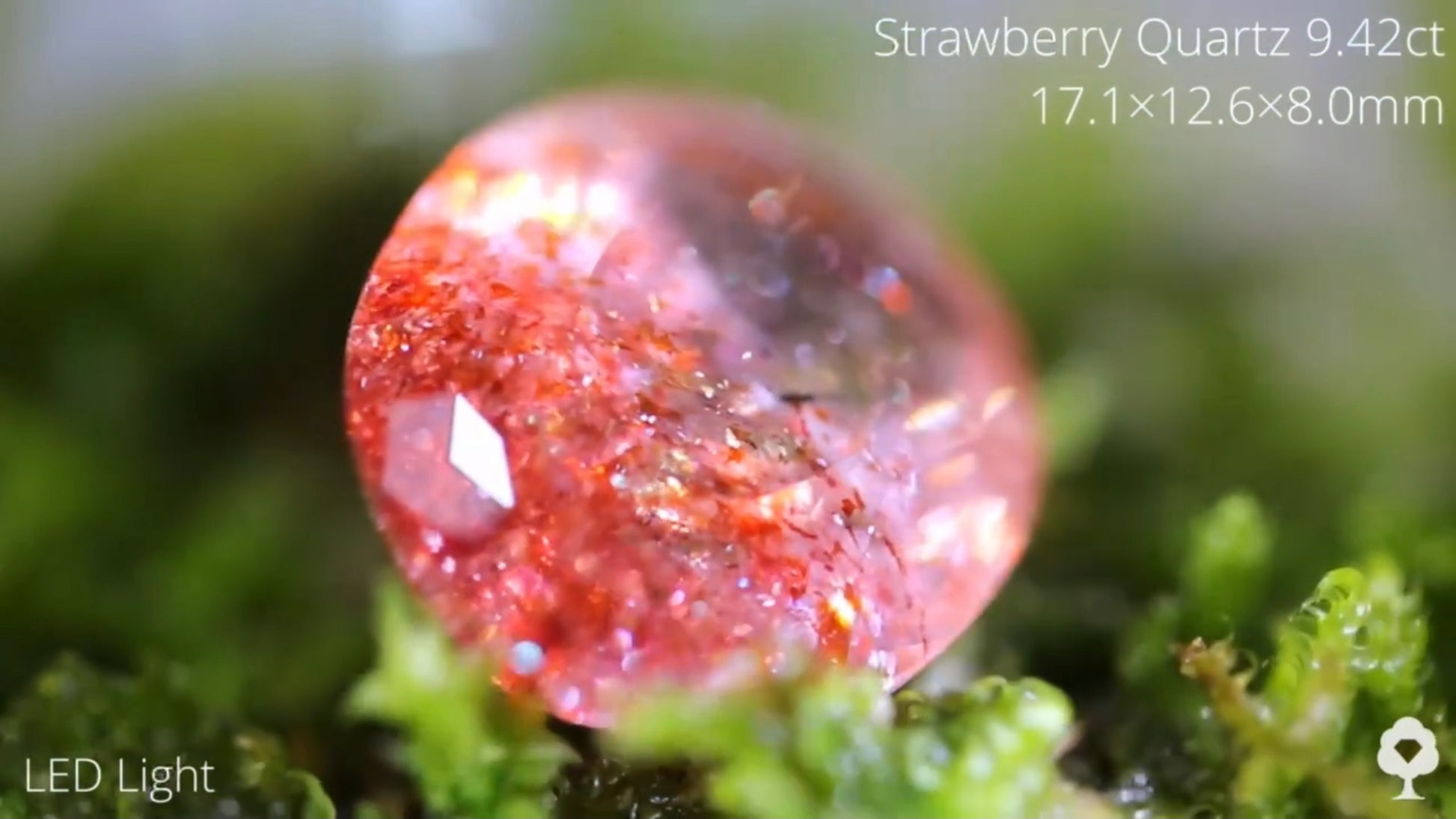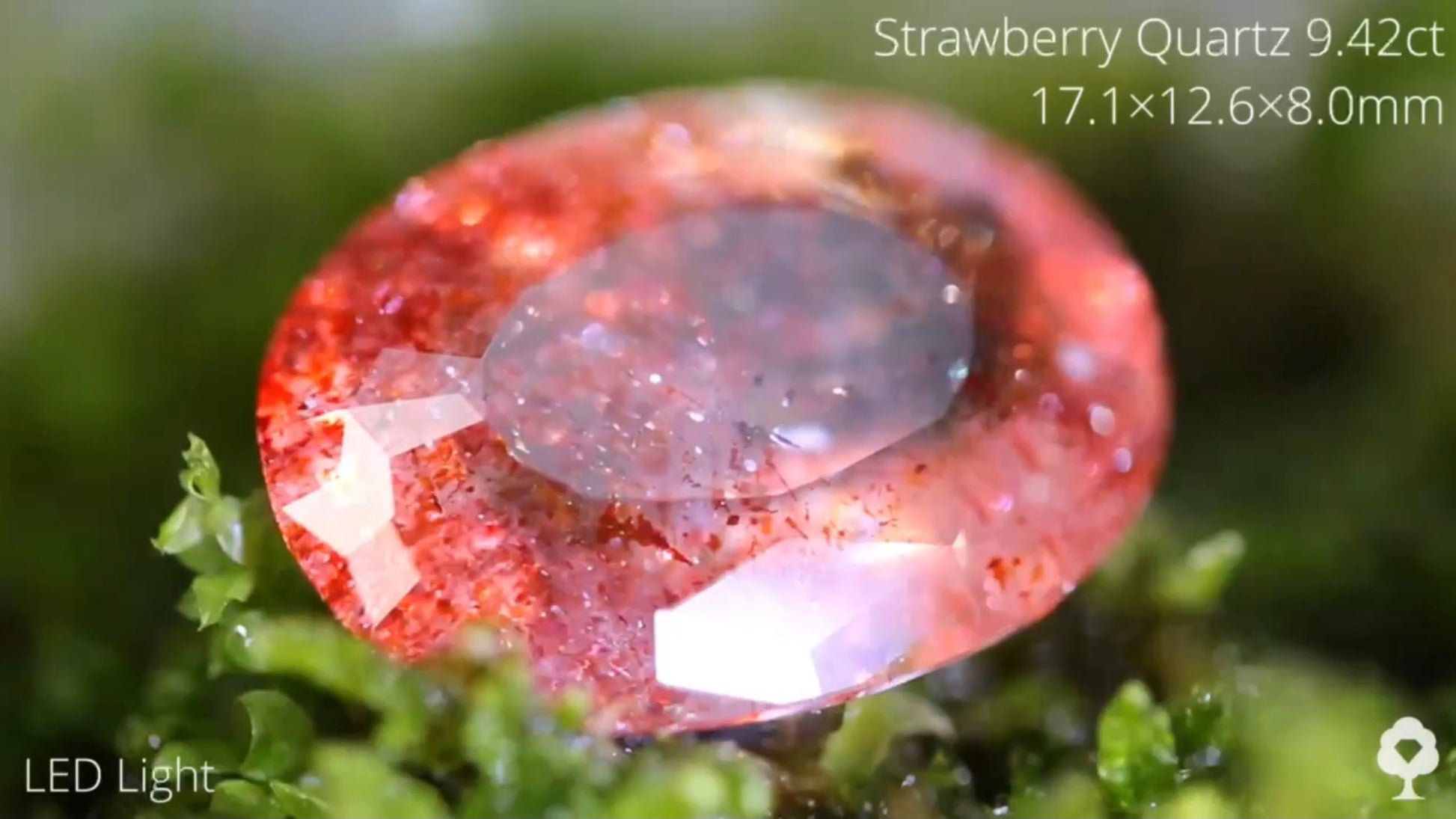 【22:00終了】凄まじいテリ・ツヤの【変則キューブカット】に封じ込まれた可愛らしいイチゴ★ストロベリークオーツ9.42ct