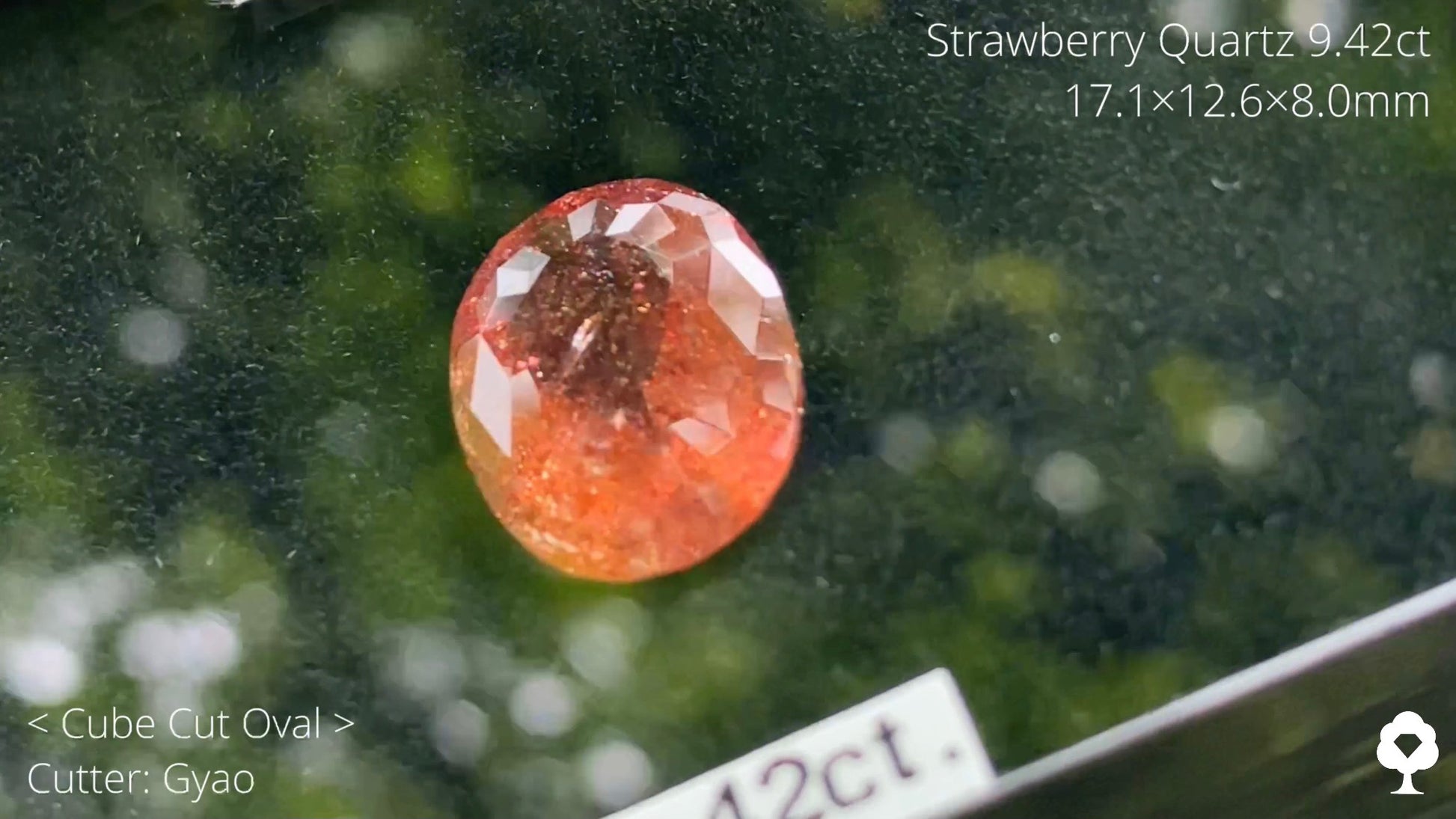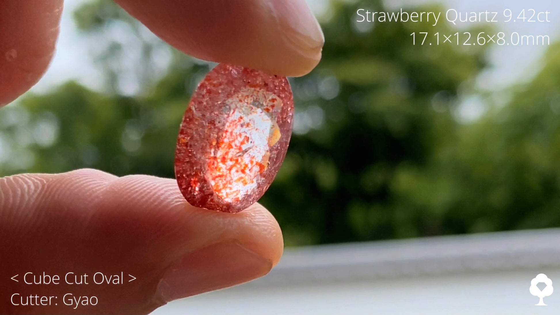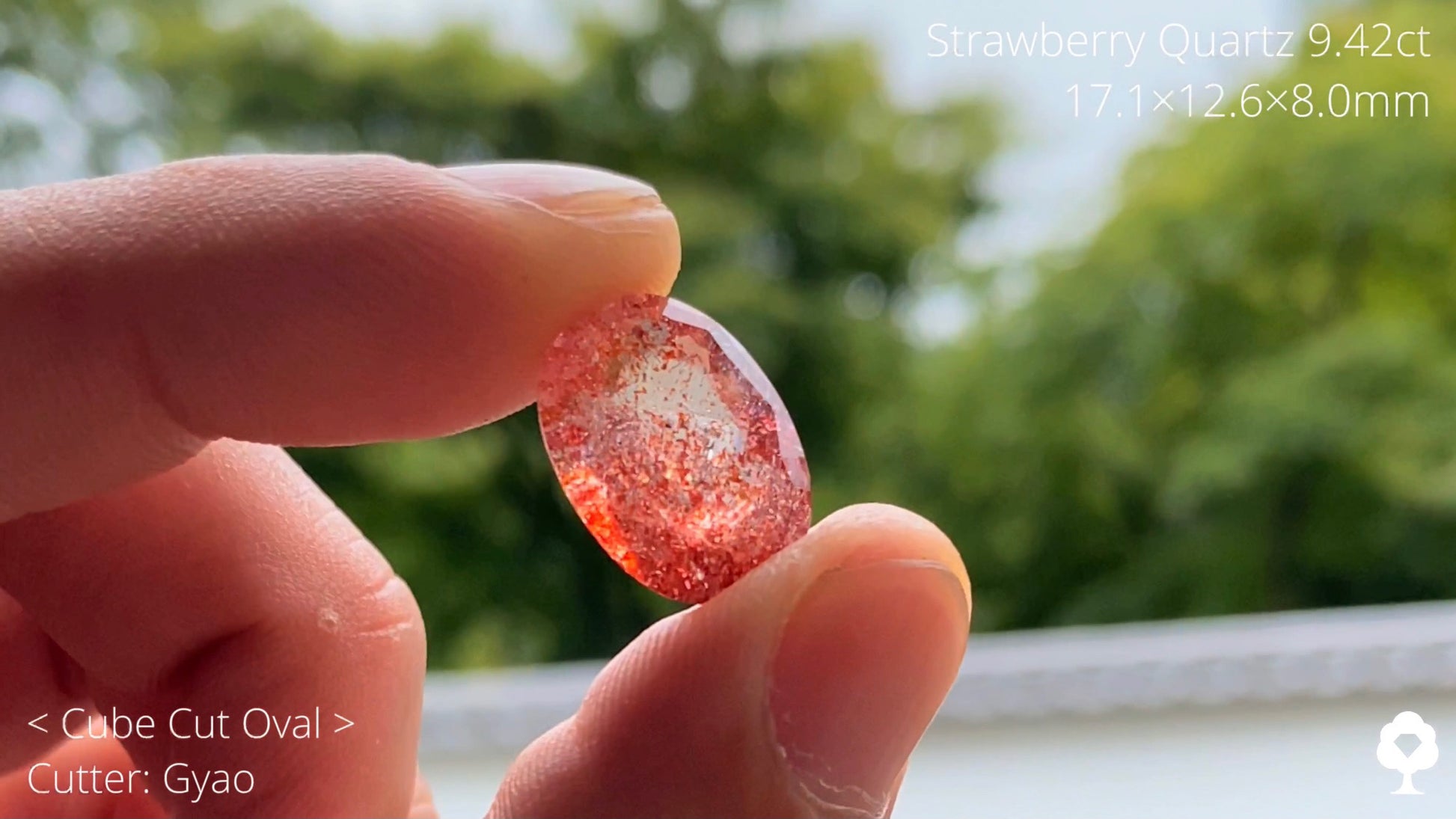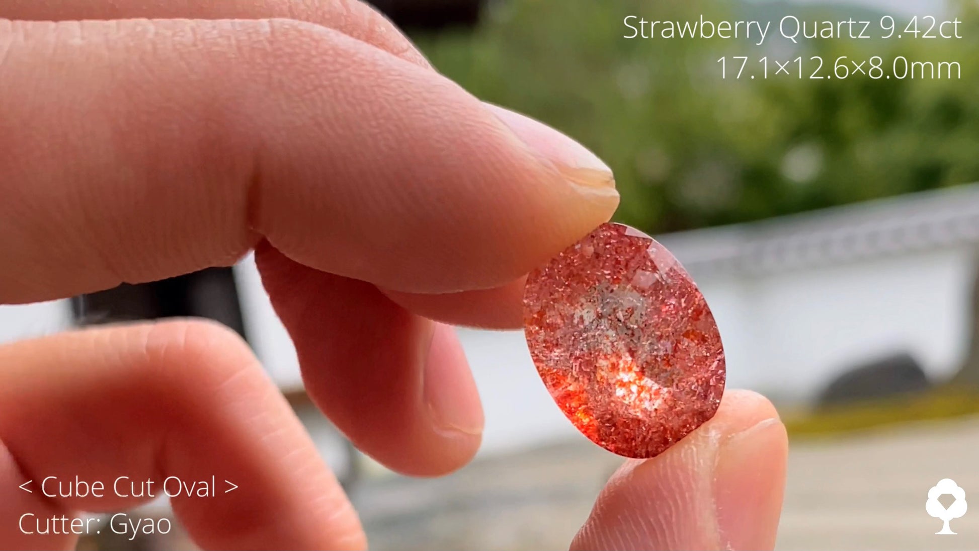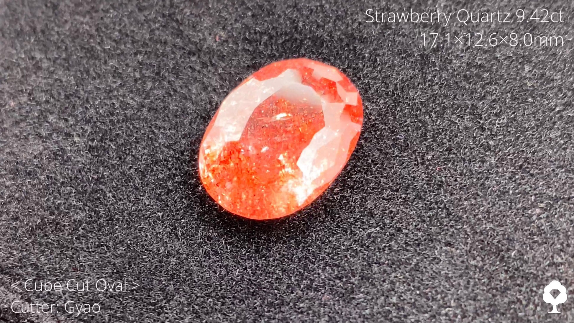 【22:00終了】凄まじいテリ・ツヤの【変則キューブカット】に封じ込まれた可愛らしいイチゴ★ストロベリークオーツ9.42ct