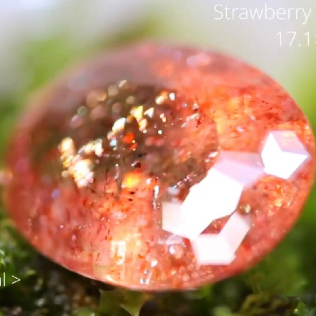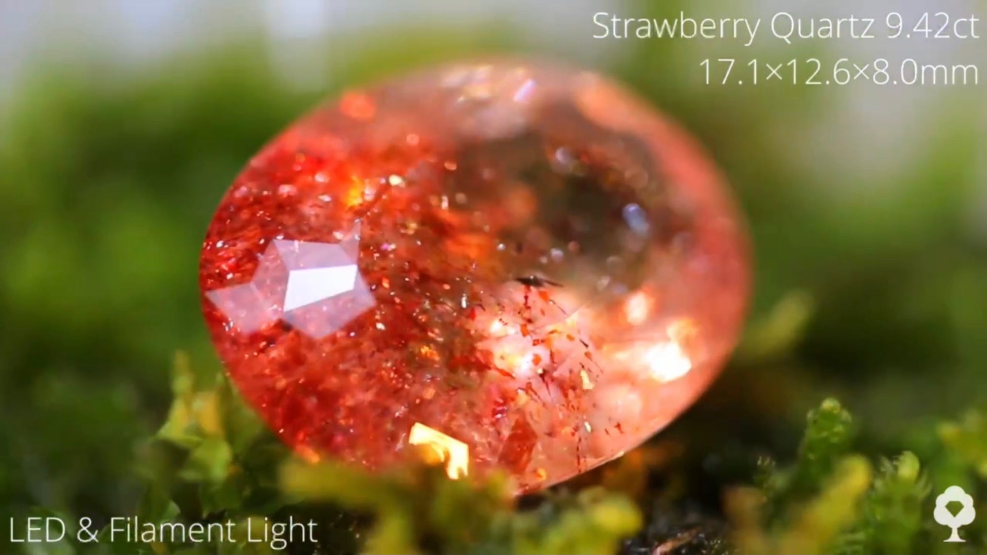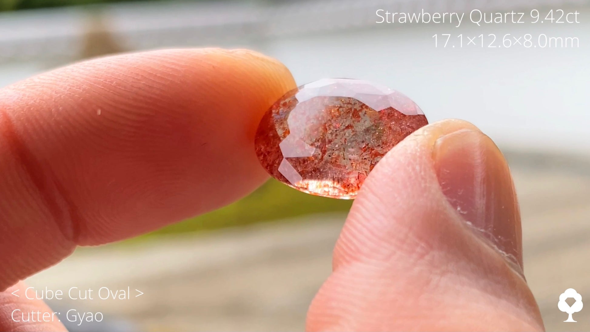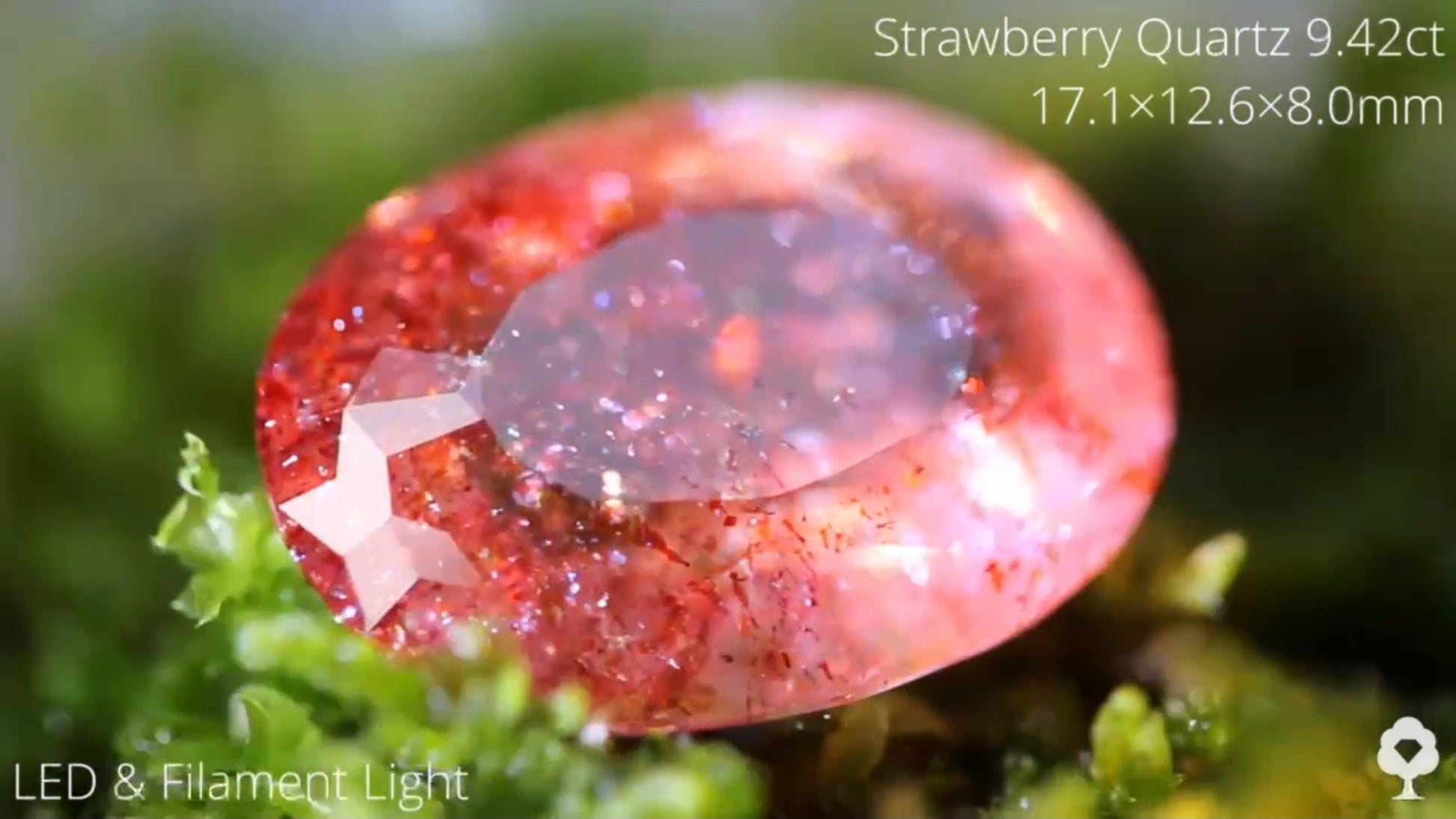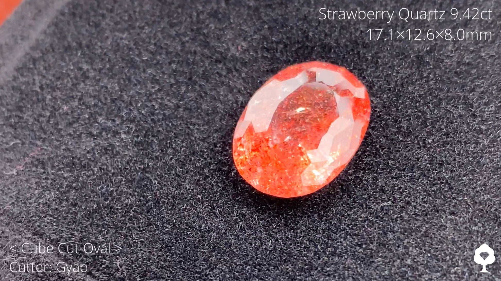 【22:00終了】凄まじいテリ・ツヤの【変則キューブカット】に封じ込まれた可愛らしいイチゴ★ストロベリークオーツ9.42ct