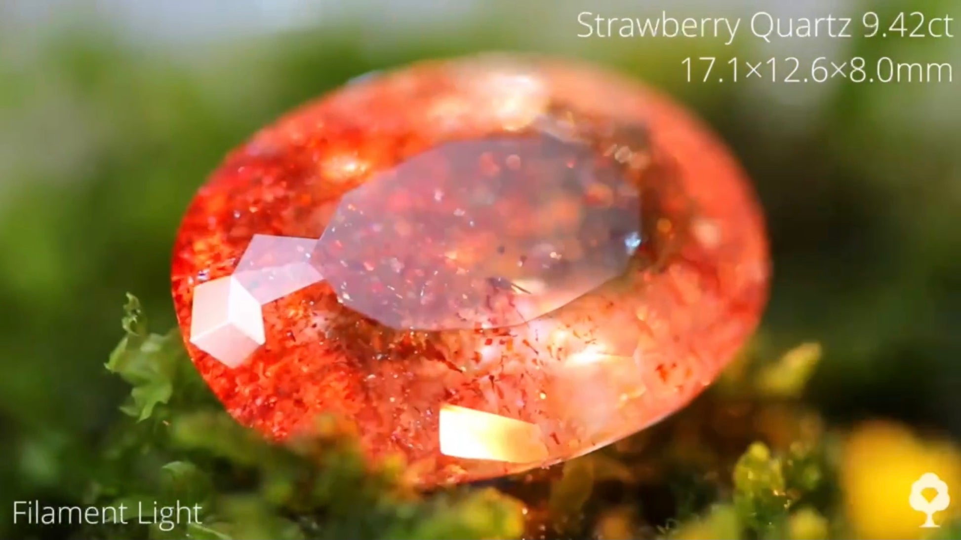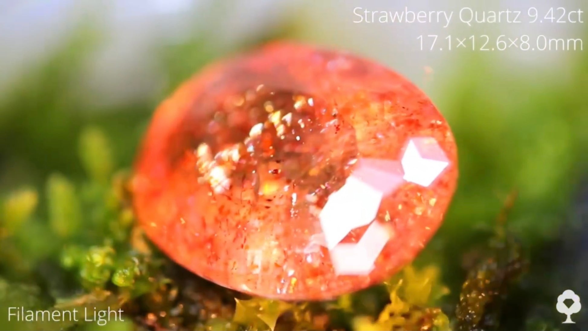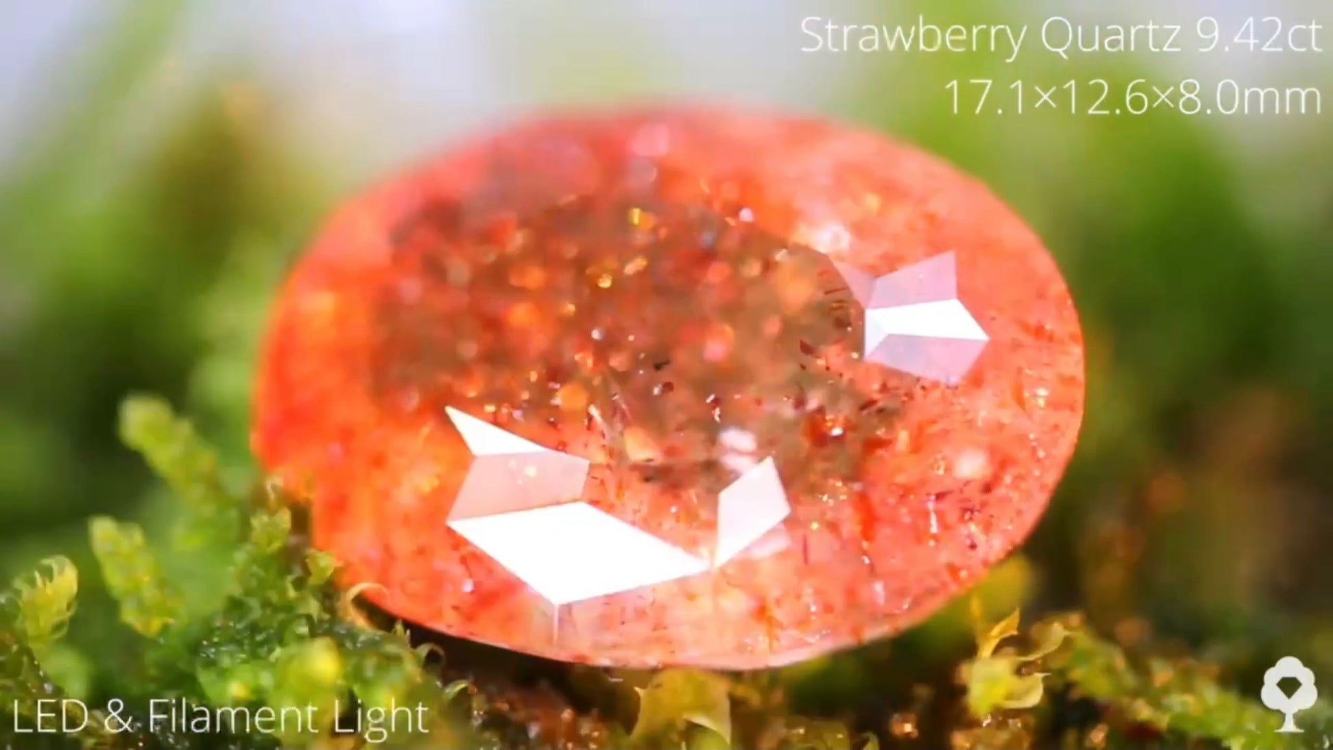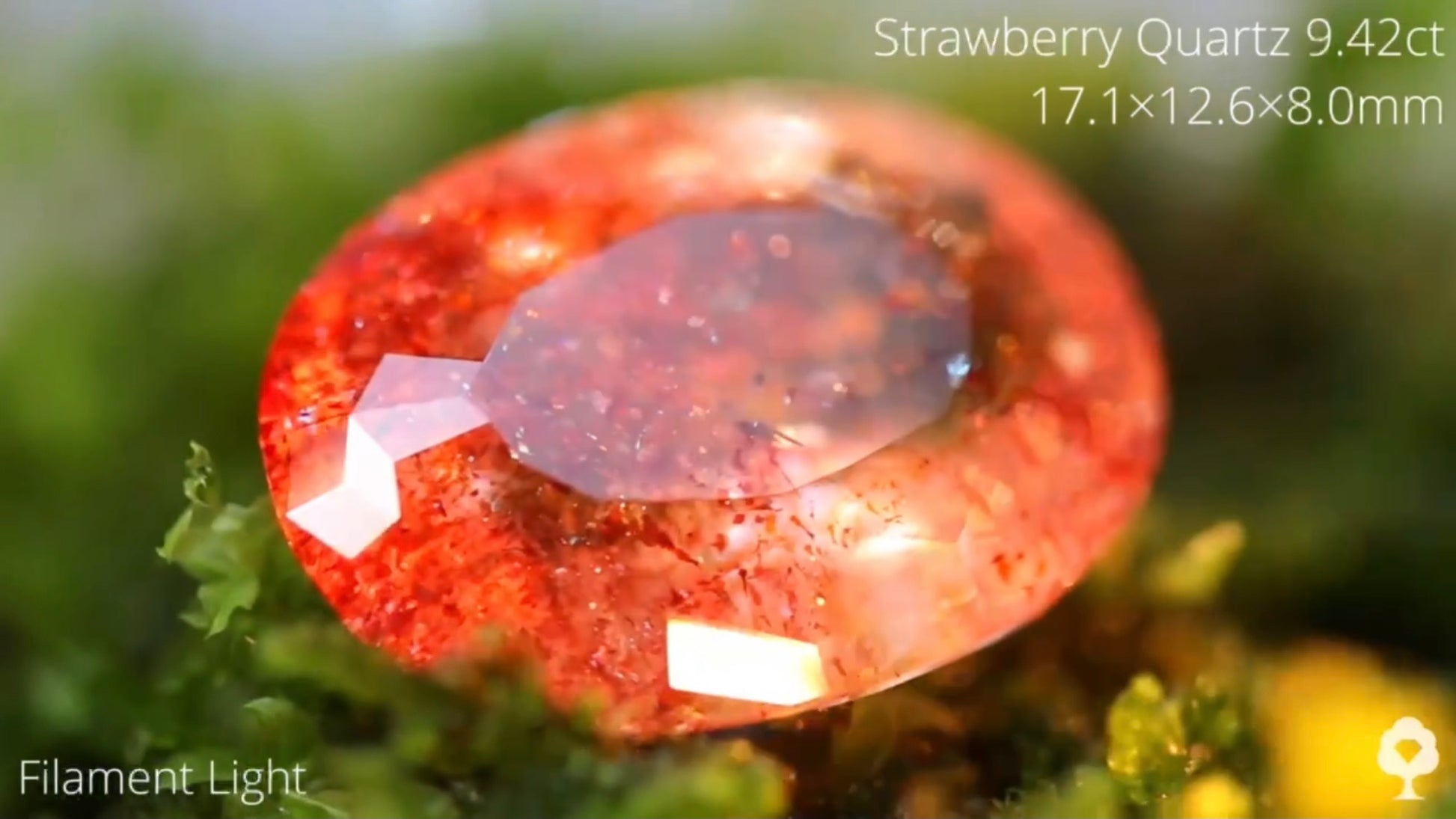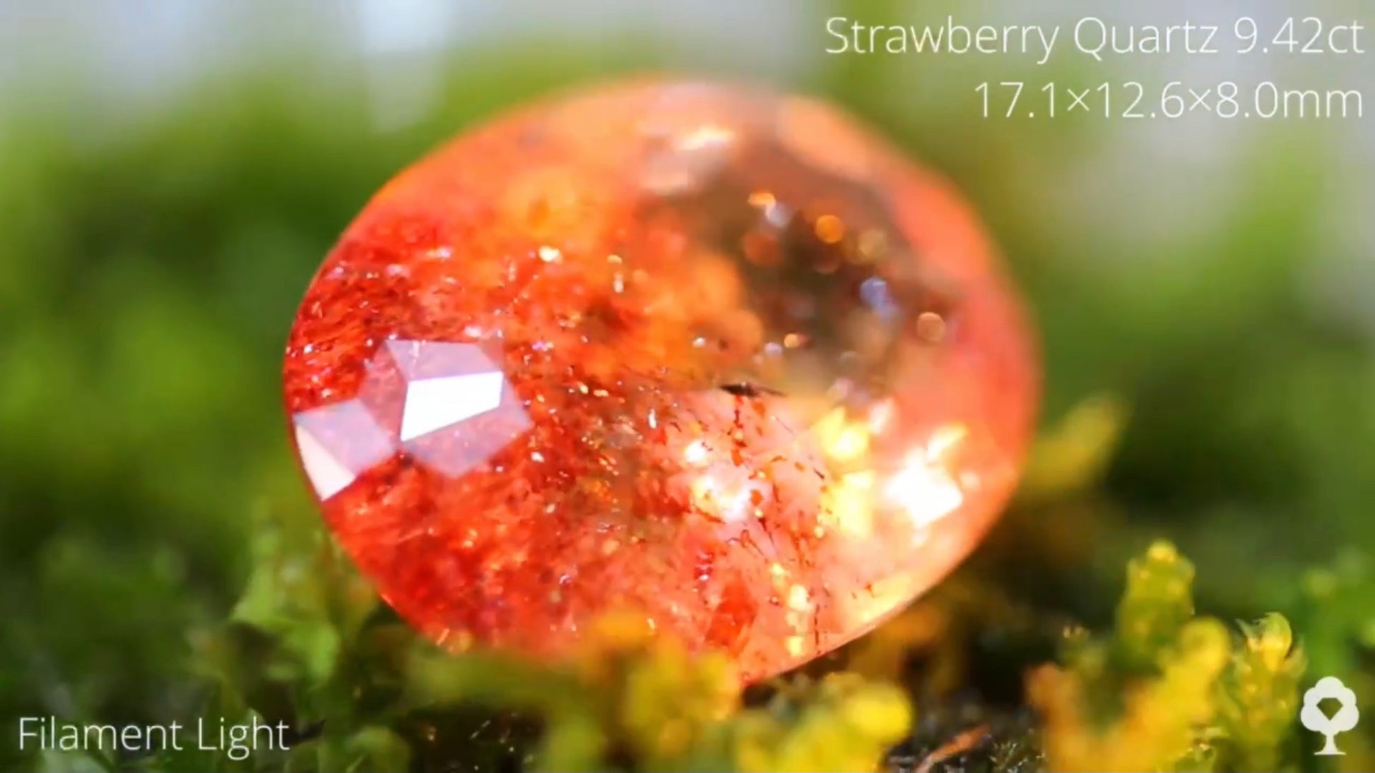 【22:00終了】凄まじいテリ・ツヤの【変則キューブカット】に封じ込まれた可愛らしいイチゴ★ストロベリークオーツ9.42ct