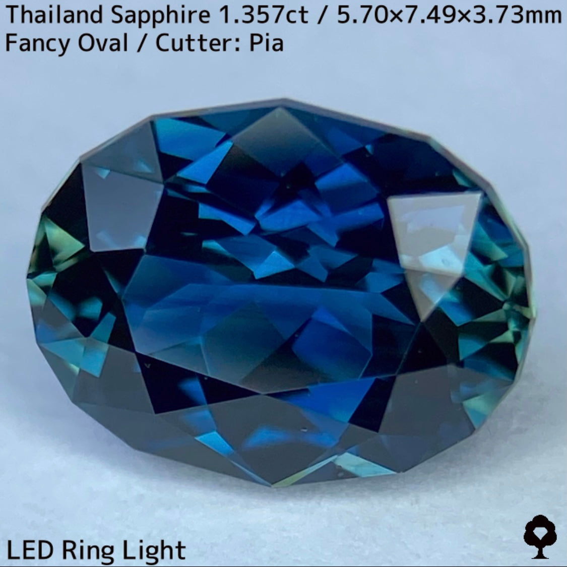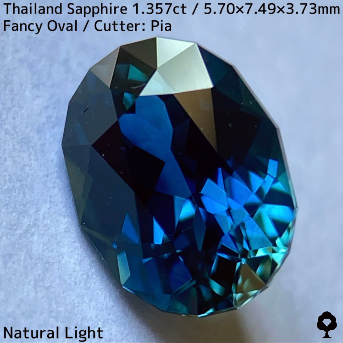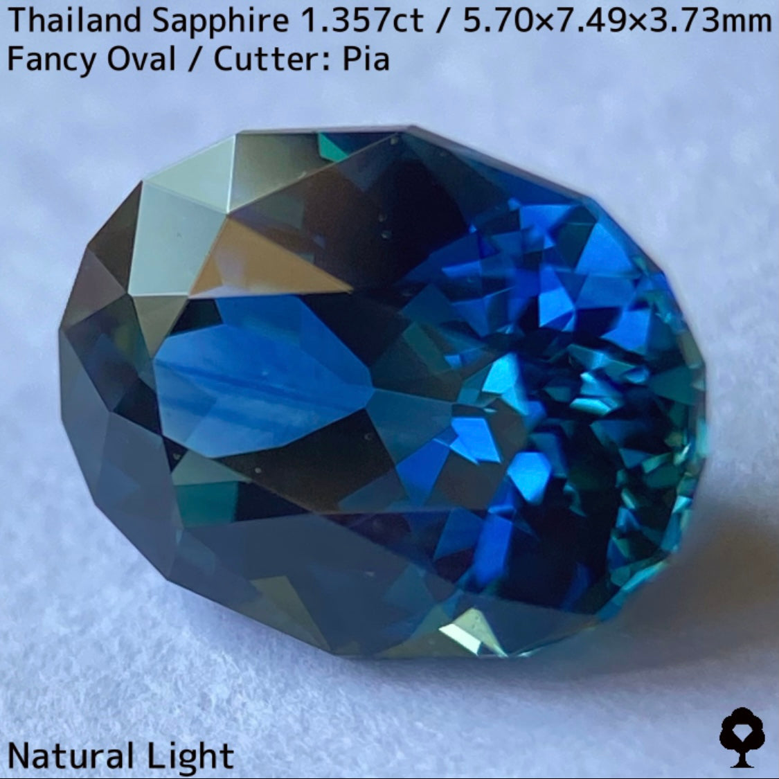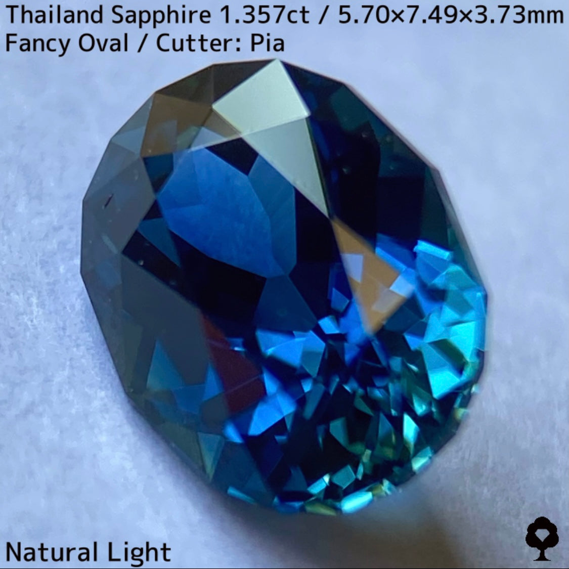 タイ産サファイア1.357ct★チャンタブリー仕入れのティールブルーとグリーンの混ざり合う美色結晶